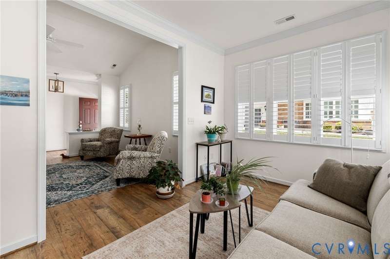 Stunning 3 bedroom home in premier 55+ community of The Villas at Providence. Located in the heart of Chesterfield County, this beautiful, move in ready home is a rare fine! Built by Eagle Construction in 2020, this 3 bedroom, 2 Bath gem is located in a desirable 55+ community just off N Providence Rd. Offering a perfect blend of comfort, convenience, and low maintenance living, this home is the ideal choice for those looking to enjoy a relaxed lifestyle with easy access to all that Richmond has to offer! This home offers a spacious and thoughtful designe-with 3 bedrooms & 2 full baths, this home is designed with open living spaces that are perfect for both relaxation and entertaining. The oversized kitchen boasts a large pantry & ample cabinetry, making meal prep a breeze! The owners retreat is a peaceful sanctuary, featuring two walk in closets & a barrier free master bathroom shower for easy accessibility. The bright & airy sunroom allows you to enjoy your morning coffee or unwind in the evening, offering a peaceful space to relax or entertain. The home features plantation shutters throughout, providing a timeless aesthetic & added privacy. This home is located in a community that offers full yard maintenance, irrigation, trash collection, snow removal & exterior upkeep-giving you more time to enjoy life & less time on chores. The unfinished space above the oversized 2 car garage provides ample storage or the potential for additional living space, whether you need a home office, studio or extra bedroom. Situated in a peaceful, well maintained neighborhood, this home is just minutes from Reams Rd. and provides quick access to all of Richmond's amenities. From shopping & dining to parks & cultural attractions, everything you need is within reach. Plus, with easy access to major roads, you'll enjoy quick commutes while still retreating to a peaceful & serene setting. Don't miss this opportunity to own a beautifully built, low maintenance home in one of Chesterfield's sought after 55+ communities!