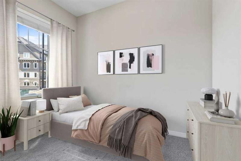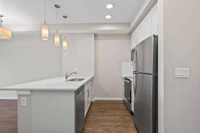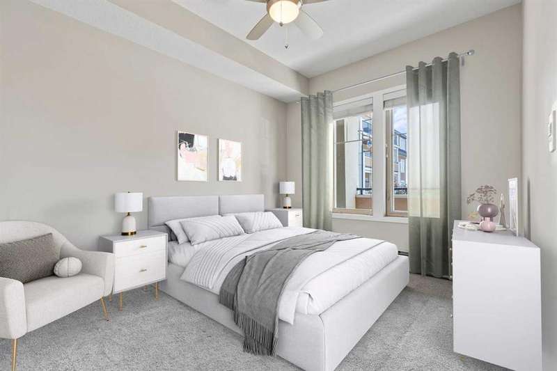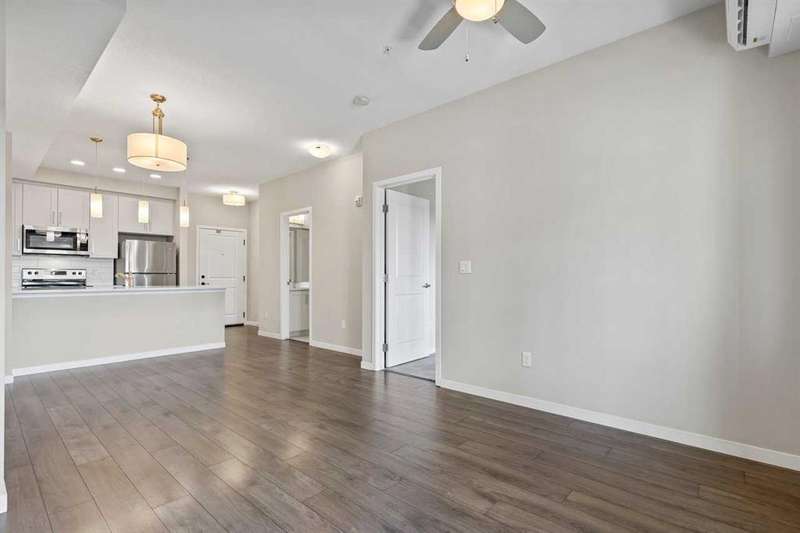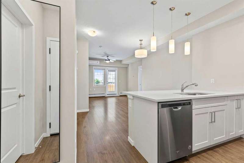 Beautiful Unit in Mahogany! Step into style and comfort with this stunning 2-bedroom,(BOTH BEDROOMS HAVE FULL SIZE WINDOWS) 1-bath condo located in the heart of the award-winning lake community of Mahogany. Whether you're a first-time home buyer or an investor, this beautiful unit offers the lifestyle you've been looking for — just steps from Mahogany’s scenic lake, beaches, and walking paths. Located directly across from Westman Village, you’ll have restaurants, shops, parks, playgrounds, and schools right at your fingertips. This bright and inviting home features 9-foot ceilings, an open-concept layout, and a spacious balcony with a gas line for BBQs, perfect for entertaining or relaxing outdoors. The modern kitchen overlooks the dining and living areas, allowing for effortless everyday living and seamless entertaining. A full 4-piece bathroom, in-suite laundry with extra storage, and central A/C add to the comfort and convenience. Additional highlights include: titled underground heated parking stall, storage unit conveniently located in front of the stall. On-site amenities: a fully equipped gym, cozy library/lounge areas, bike storage, and beautiful outdoor gathering spaces. Enjoy everything Mahogany has to offer — from lakeside living and lush green spaces to nearby shopping, coffee shops, dining, and transit access. Don’t miss your opportunity to own in one of Calgary’s most desirable communities. Book your private showing today!