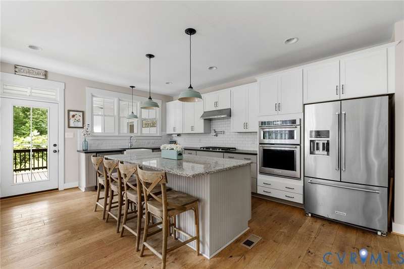 Enjoy the charm of country living in this craftsman-style farmhouse set on just over an acre. A wide front porch provides the perfect spot to relax and take in peaceful views of the surrounding pasture. Inside, the two-story foyer welcomes you with natural light and an open feel. Hardwood floors flow throughout the main level, adding warmth and character. The family room connects seamlessly to the spacious kitchen, complete with an oversized island ideal for gathering. Large windows along the back of the home overlook the saltwater pool, backyard, and protected 50 acres of land that is located behind the property, creating a beautiful backdrop for everyday living. A dining room, laundry area, and half bath are also located on the first floor, along with a private owner's suite featuring a full bath. The second level offers four generously sized bedrooms, each with walk-in closets, as well as a large bonus room over the garage. Two additional baths, including a Jack-and-Jill and a second ensuite, complete this floor. A covered rear porch leads to a private in-law/au-pair suite with its own kitchen, living room, bedroom, and full bath. Other features include a low-maintenance exterior, an in-ground pool, a three-car attached garage, an oversized detached garage, and a whole-house generator.