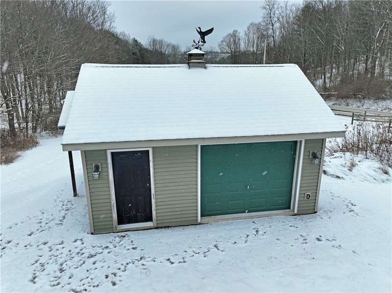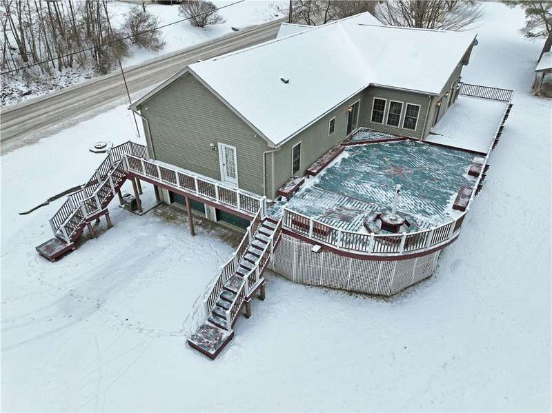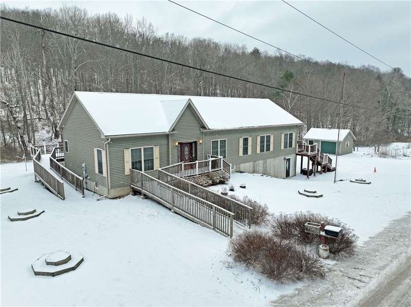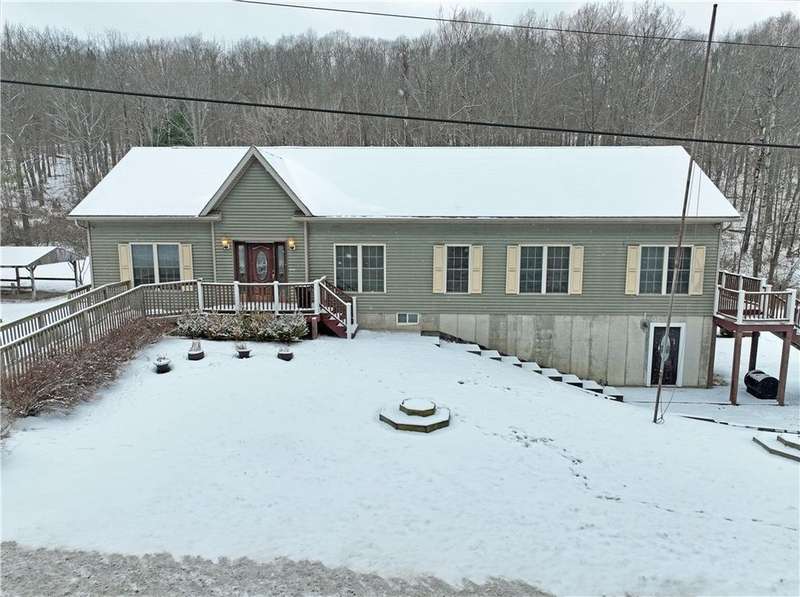 This 2010 Ranch 3 bedroom 2 1/2 Bath is just waiting for its new owner. Beautiful wrap around deck overlooking 15+ acres with a small pond and creek running through. First floor living at its best with a Great Room with vaulted ceilings and large high end fans in every room. Primary bedroom has a garden tub to let you slip into and relax. Handicap accessible equipment with ramps and chairlift from the full basement/garage to main floor. Kitchen is equipment with stainless steel refrigerator, gas stove top, double oven and dishwasher with sliding doors to the wrap around deck. Notice the beautiful unique designed wrap around deck flooring. The pavilion out back would be great for those summer get togethers/parties. The basement is a clean slate with radiant floor heat and let your imagination go wild! The property has 15 acres with the house. An additional 1100sqft in basement/garage. Seller is now giving a $5000 credit at closing for carpet/wallpaper removal! Come take a look!