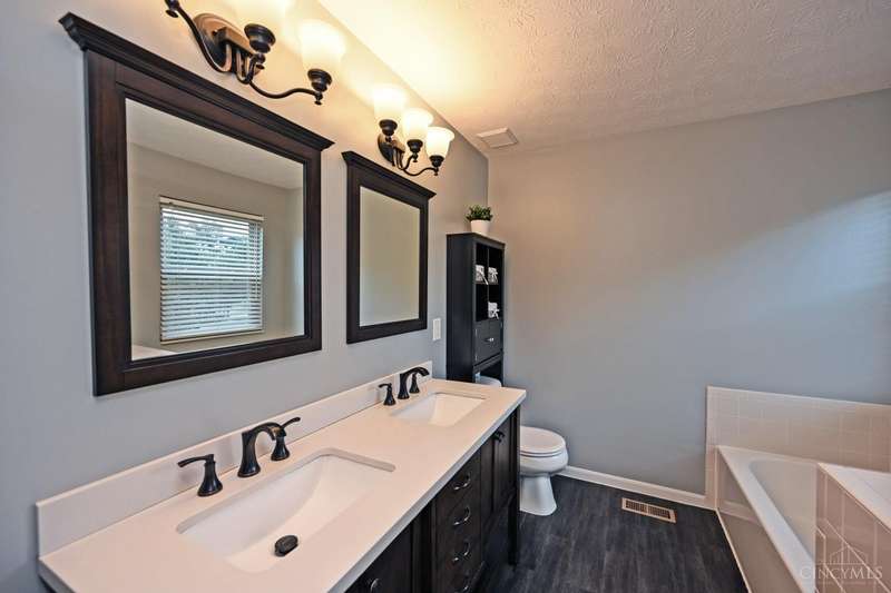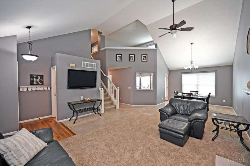 Great transitional home in The Woods at Shayler Creek! Open living room with cathedral ceiling and gas fireplace. The first floor primary has a large walk in closet and adjoining bath with tub, a shower and double vanity. Newly refinished hardwood floors in kitchen, powder room and entryway. Second floor has two bedrooms, a full bath and large loft that could be a family room, play area or home office. Spacious fenced in backyard also features a smaller private fenced in area. This home has laundry hookups on the 1st floor and lower level, attic storage above garage, on demand hot water and new siding.