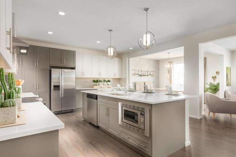 LOOKING FOR THAT 4 BEDROOMS UP HOME THAT GIVES A LITTLE MORE? THAT SEPARATE KIDS WING WHERE YOUR PRIMARY BEDROOM IS STILL YOUR OWN? A WIDER HOME ON A CONVENTIONAL LOT WITH A 3-CAR TANDEM GARAGE ??—almost like it knows exactly what every other floor plan in the neighbourhood is missing. It’s long, it’s wide, and IT FINALLY SOLVES THE STORAGE-VERSUS-PARKING BATTLE most families lose. Bikes, tools, sports gear, camping bins, the third vehicle—there’s space for all of it without turning the garage into a negotiation. Inside, the main floor opens into a kitchen designed around actual living, not staged perfection. The WATERFALL QUARTZ ISLAND earns its status as the daily command centre, while the UPGRADED GAS COOKTOP AND CHIMNEY HOOD handle the heavy lifting. A BUILT-IN MICROWAVE sits directly above the BUILT-IN WALL OVEN in a clean, integrated stack that keeps the whole space intuitive. Tall cabinetry stretches upward, with TWO CABINET PANTRIES anchoring each end of the oven wall—quietly eliminating countertop clutter. The expanded 3-PANEL PATIO DOOR pulls natural light across the dining area and connects to the rear deck, making both weeknight dinners and weekend hosting feel effortless. Upstairs, the layout finally answers the question of how a busy household is supposed to function without stepping on each other’s toes. FOUR BEDROOMS cluster around a CENTRAL BONUS ROOM, creating a floor that feels connected but never cramped. Two of the secondary bedrooms feature walk-in closets, and the UPPER LAUNDRY ADDS A CABINET AND SINK—small details that make busy mornings far less chaotic. The master gives you actual breathing room—space for a king bed, real nightstands, and still enough floor area to move comfortably. In the 5-PIECE ENSUITE, the SOAKER TUB sits under the window, dual sinks keep your mornings civilized, and the UPGRADED TILE SHOWER with a built-in bench makes the space feel intentional, not just large. And then there’s the setting. SIROCCO AT PINE CREEK LEANS INTO THE NATURAL LANDSCAPE INSTEAD OF COMPETING WITH IT. Pathways wind into the coulee system, the Sirocco Golf Club edges the community, and future commercial amenities will bring daily convenience closer than ever. ACCESS TO MACLEOD, STONEY, AND 22X keeps the rest of the city within easy reach, while the neighbourhood itself stays remarkably quiet. Construction is in its final stretch. With completion estimated for mid-December, you can spend the holidays settling in rather than waiting out a possession date. What you get here isn’t just a big house—it’s a floor plan that protects your sanity, storage that finally keeps up, and a community that rewards stepping outside. Book a showing and feel how naturally it all fits together. • PLEASE NOTE: Photos are of a finished Showhome of the same model – fit and finish may differ on finished spec home. Interior selections and floorplans shown in photos. Construction photos of home are last few photos.