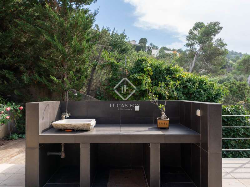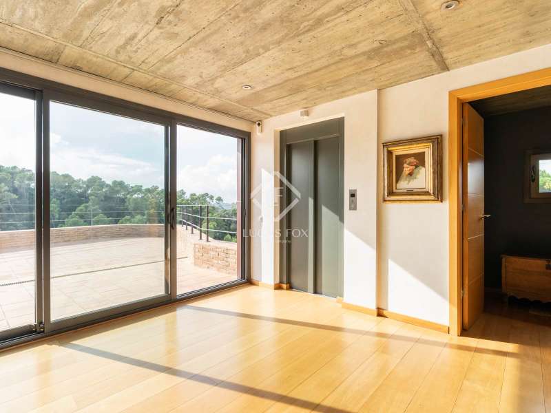 Lucas Fox is pleased to present this wonderful 454 m² modern design house on a 1,150 m² plot , located in the residential area of La Floresta, Sant Cugat del Vallès. It is characterized by its natural surroundings, light, and natural surroundings. This beautiful villa is spread over three floors, providing comfort and well-being. We enter on the ground floor, where we find a separate suite with a bathroom and study area, offering panoramic mountain views and allowing us to wake up every day in contact with nature. From the main entrance, an elegant entrance hall leads to a spacious terrace overlooking Collserola, perfect for enjoying quiet moments and sunsets. On the main floor we have the day area, with a large panoramic living-dining room with large windows that frame the views of nature. Modern kitchen with access to a private terrace and connected to the central courtyard, which includes a barbecue area, ideal for outdoor gatherings. A heated indoor pool with a Jacuzzi and waterfall blends seamlessly with the exterior to create an incomparable relaxation space. And finally, there's the charming master suite with a fireplace, TV room, double bathroom , and private terrace. Second independent suite with bathroom and study area. Guest toilet. Lower floor -2, we have a versatile room ideal as a study room or living room, for wine lovers we have a large wine cellar. From this floor, the double volume of the lower studio can be appreciated, providing a feeling of spaciousness, light, and elegance. Finally, on the -3 floor , we have a large living room living room bathed in natural light with a fireplace, a study area, a bar area, and access to a sun terrace with spectacular views of the forest. From this floor you can access the private forest-like garden , which gently slopes down to merge with the vegetation of Collserola. Don't hesitate to visit it!