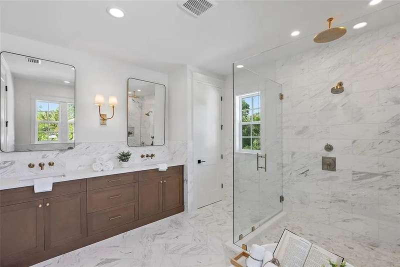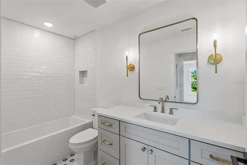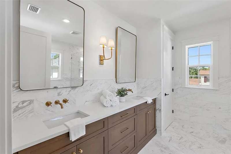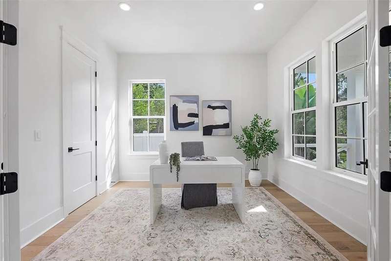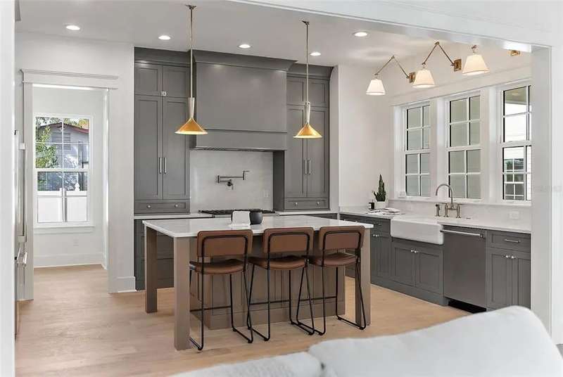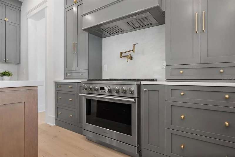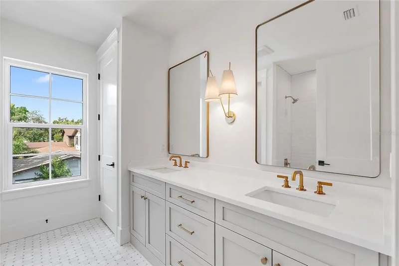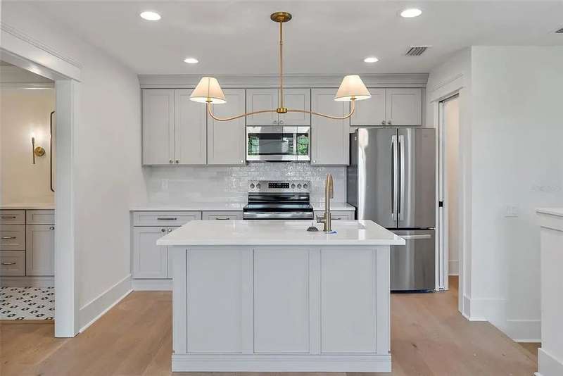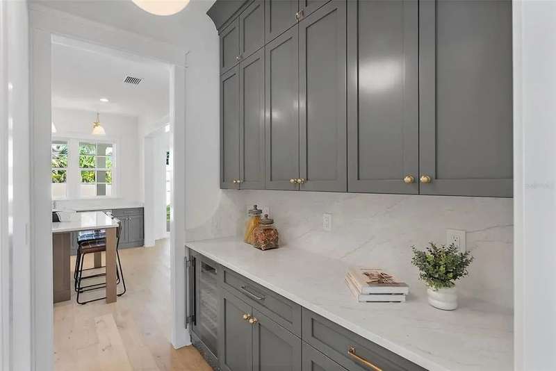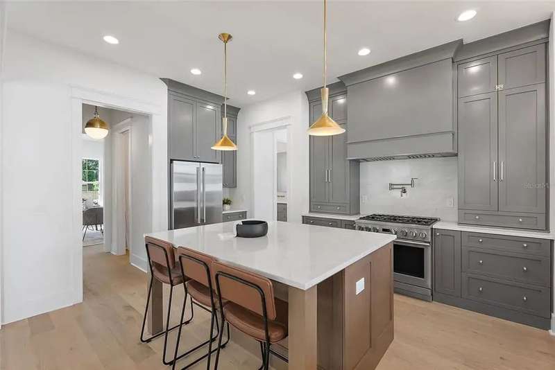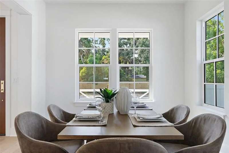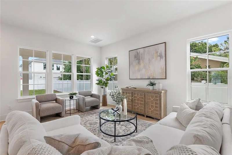 Ready to move into your new construction home? This 2025 Canopy build is now completed! Don't miss this exceptional opportunity with Canopy Builders – St. Petersburg's most TRUSTED name in luxury home construction. The Folk Vernacular represents timeless design and elevated living on a premium oversized cul-de-sac lot in the highly sought-after Old Southeast neighborhood. This meticulously planned residence offers 5 bedrooms and 3.5 bathrooms across 3,460 sq ft of thoughtfully designed living space, plus a fully equipped Accessory Dwelling Unit above the detached two-car garage—perfect for guests, home office, or additional rental income. A charming front porch with gas sconce lighting welcomes you into a light-filled foyer showcasing the home's open-concept design and elegant architectural details. The gourmet kitchen stands as the heart of the home, featuring a professional gas range, custom wood range hood, GE Café stainless steel appliances, solid Maple shaker cabinetry with soft-close drawers and 42" uppers, upgraded quartz countertops, distinctive Kohler farmhouse sink, and stylish brass fixtures throughout. The adjacent butler's pantry includes wine refrigeration and connects seamlessly to the formal dining room for effortless entertaining. The intelligently designed main floor includes a practical mudroom entry, powder room with floating vanity, convenient laundry room, and pool bath with exterior access. Living spaces flow naturally to the expansive covered patio featuring a built-in outdoor kitchen, overlooking the generous side yard with ample room for a future pool. Retreat upstairs to discover the luxurious primary suite offering dual walk-in closets and a spa-inspired bathroom with marble tile finishes, dual vanities, frameless glass shower, and freestanding soaking tub. Three additional bedrooms and a versatile loft space complete the second floor, providing abundant room for family, guests, or home offices. Every detail reflects Canopy's commitment to excellence: engineered hardwood flooring, impact-resistant windows, Hardie Board exterior siding, Sherwin-Williams paint, Owens Corning 30-year architectural shingles, Emtek entry hardware, tankless gas water heater, 16 SEER HVAC system with dual-zone thermostats, 10' ceilings, 8' interior doors, and open-cell spray foam attic insulation ensuring year-round comfort and efficiency. Experience Canopy's signature Design Review Meeting at their St. Pete office to personally touch and feel the curated finish selections. Backed by Canopy's comprehensive warranty program with a dedicated specialist for your entire first year—unmatched peace of mind. Located steps from Lassing Park, 5 minutes to vibrant Downtown St. Pete, 15 minutes to pristine St. Pete Beach, and 20 minutes to Tampa—the perfect blend of historic charm and modern convenience. This extraordinary home is nearing completion—schedule your private tour today to experience the exceptional layout, finishes, and craftsmanship firsthand. Your dream home awaits.