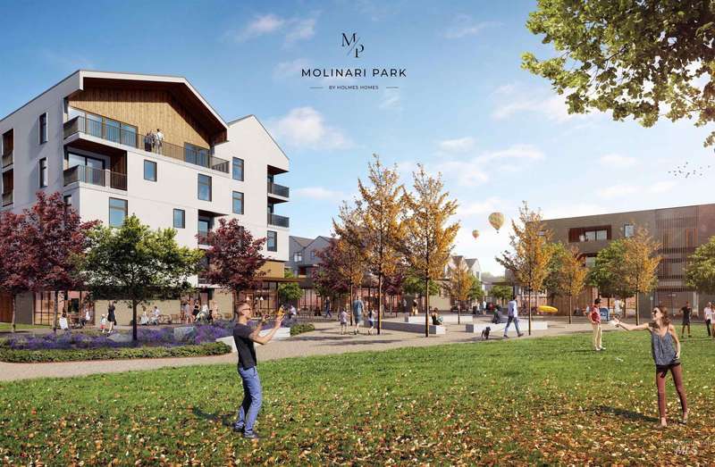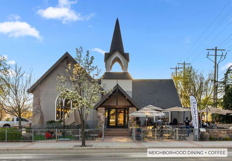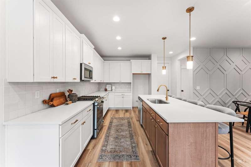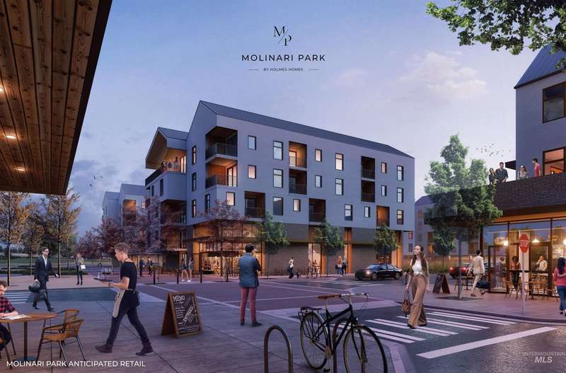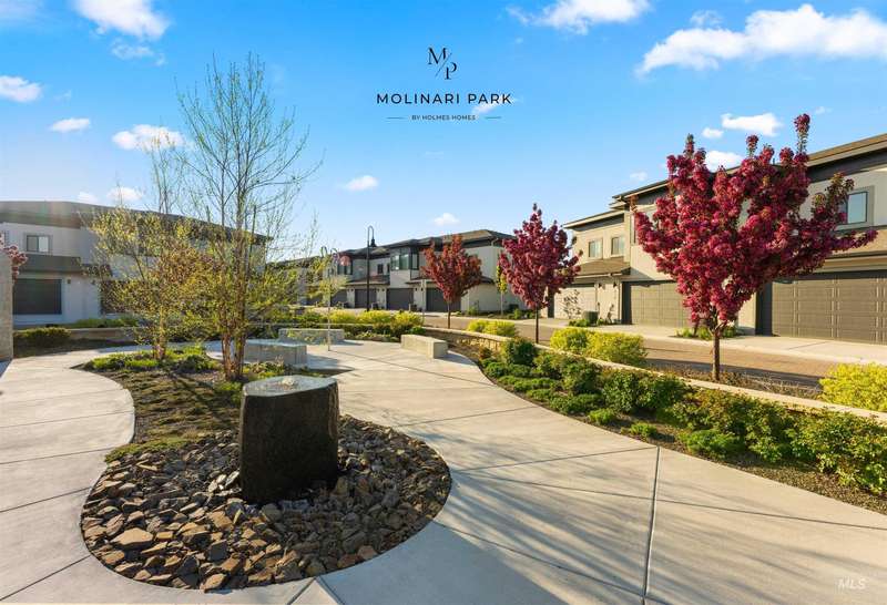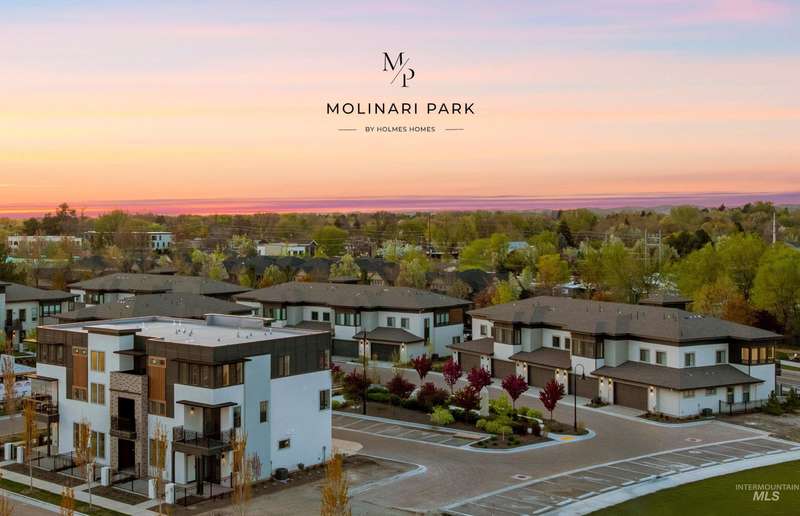 The Naples plan, featuring main level living set in the heart of downtown Eagle! Enjoy the ultimate walkable lifestyle just steps from Eagle’s premier dining, shopping, coffee shops, and nightlife. Thoughtfully designed with livability in mind, this home features 10-foot ceilings, wide-plank LVP flooring, and a spacious open-concept layout complimented with a warm, neutral palette. The kitchen features crisp white cabinetry, artisan square zellige tile backsplash, sparkling quartz countertops, and stainless steel appliances including a gas range. Upstairs, retreat to the private bedroom level. The master includes a private balcony, walk-in closet, and a beautifully finished en suite bath with a dual-sink vanity and frameless glass walk-in shower. Dedicated back entry 2-car garage. Live effortlessly at Molinari Park, where future on-site dining and coffee shops, lush landscaping, walking paths, a dog park, and an unbeatable location. PHOTOS SIMILAR.