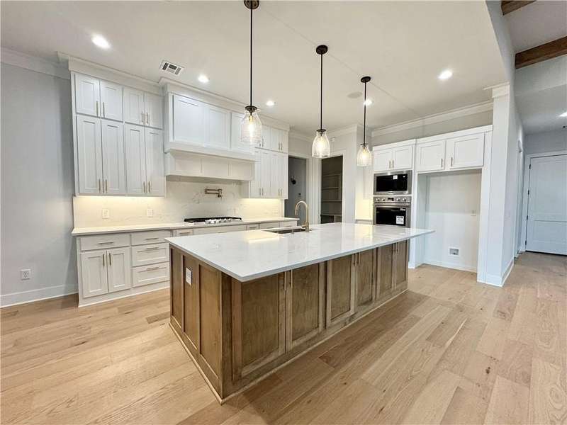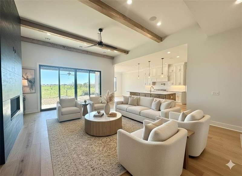 Up to $8,000 INCENTIVE- $5k from Builder and $3k from preferred lender for closing cost etc. Luxury residence, ideally situated in the highly sought-after Big Sky neighborhood. Exceptional high-end finishes that define every room. Main living area is a showcase of design, featuring beautiful wood flooring, crown molding, and striking wood beams. It centers around a sleek, linear tile fireplace that is perfectly complemented by custom built-ins. The kitchen is truly a chef's ultimate dream: it boasts a massive, custom-stained island, ceiling-height cabinetry, top-tier double ovens, gas cooktop complete with a convenient pot filler. All surfaces, including the expansive backsplash, are finished in pristine quartz. The primary suite is a retreat, featuring warm wood flooring, a stylish accent wall, and a spa-like ensuite. Private bath with a deep soaking tub, a large walk-in rain shower, and a generously sized walk-in closet with extra storage. Stylish study with accent wall, bonus room and a private, fenced backyard.