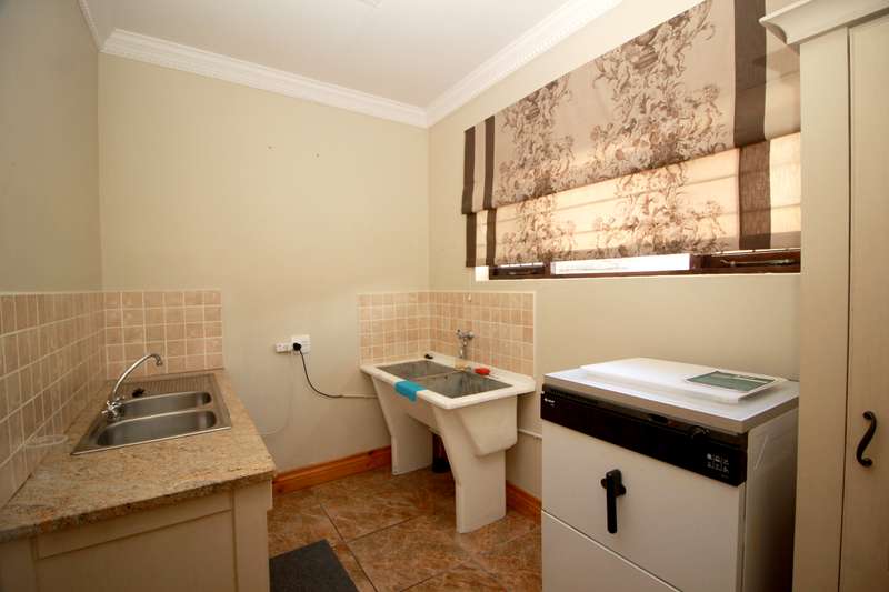Charming and Spacious Home with Timeless Elegance. This exceptional property truly has it all! Step into a home where spacious, sun-drenched rooms with warm wooden floors and high ceilings create an inviting atmosphere. The cozy lounge, complete with a fireplace, is perfect for relaxed evenings. A beautifully designed country-style kitchen, equipped with a scullery and pantry, adds both charm and functionality. Double garage and shaded net, well-maintained garden. For those who love to entertain, the standout feature is the braai room—complete with a built-in braai and a classic coal stove, ensuring year-round enjoyment. This home effortlessly blends comfort, character, and practicality, making it an absolute must-see! This property absolutely ticks all the boxes - act soon!