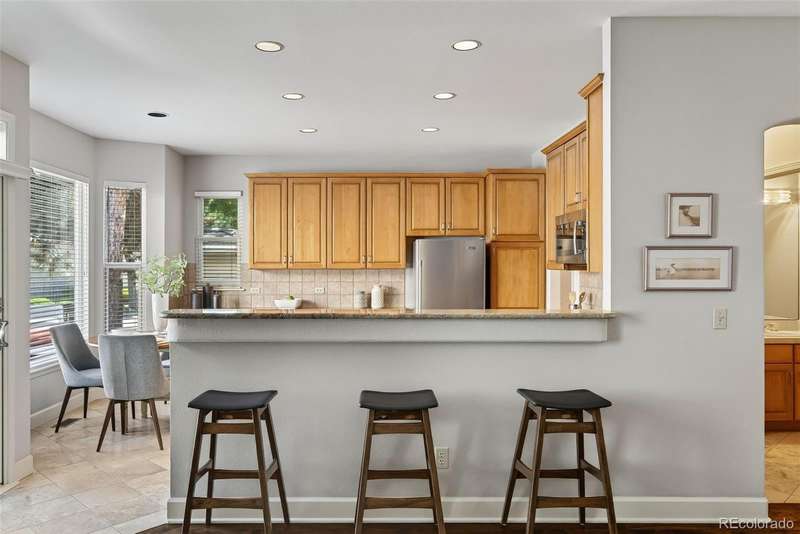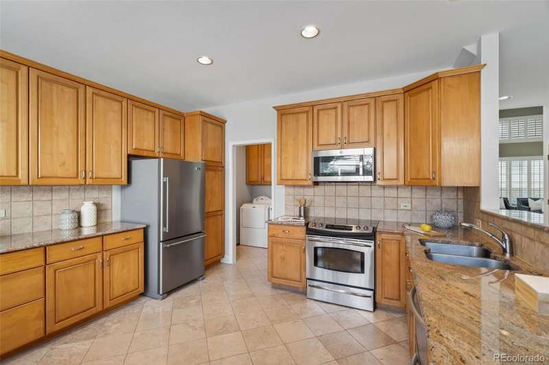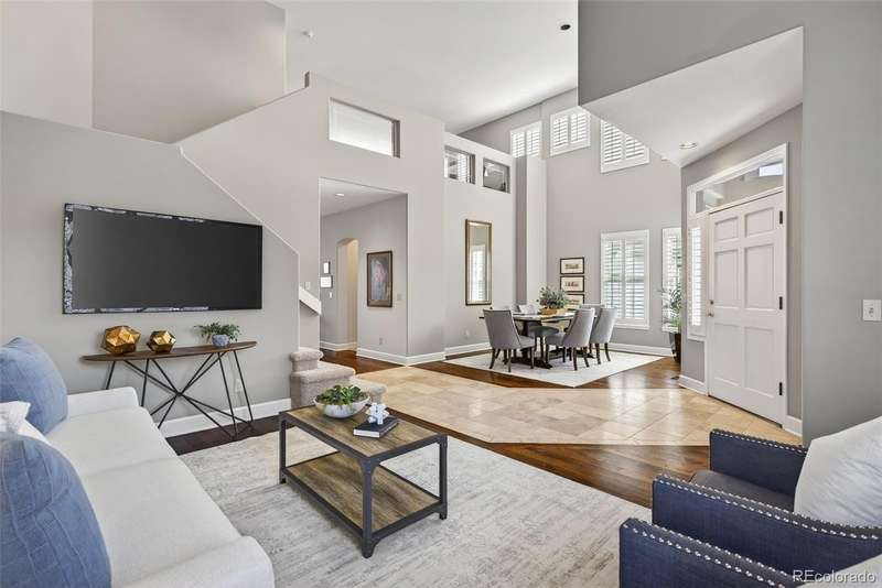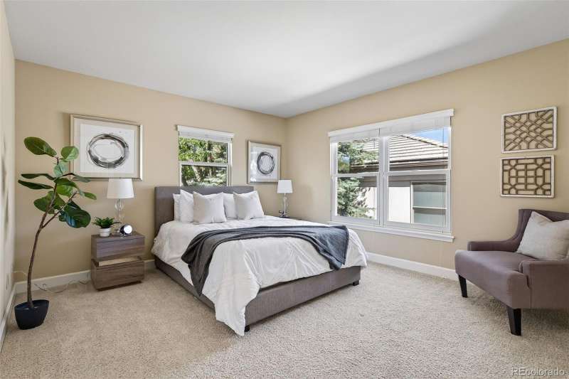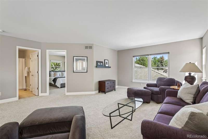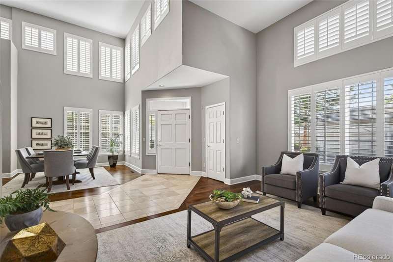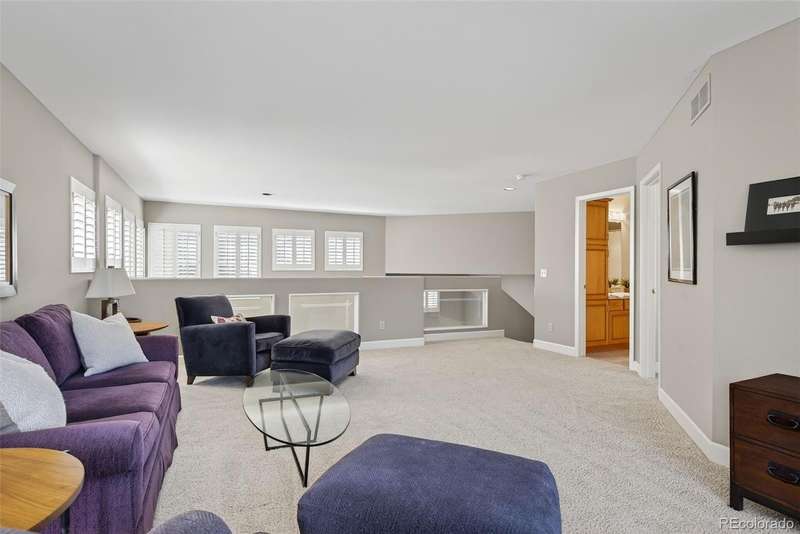 Easy living in this beautifully maintained patio-style home in the heart of the Denver Tech Center offers one of the most spacious and well-designed floor plans in the Saxony development. Quick access to shopping, I25, Light Rail, and miles of walking paths and parks in the highly-rated Cherry Creek school district. Low-maintenance carefree living with complete ground maintenance and snow removal. Whether your single, a couple, or a growing family, this home offers versatility, flexibility, with opportunities to fit your lifestyle. The open and inviting layout features soaring ceilings, sun-filled living and dining rooms, and a thoughtfully designed kitchen with granite countertops, maple cabinetry, and newer stainless-steel appliances. A family room with a cozy gas fireplace and sliding patio door opens to the private deck. The main-level primary suite offers vaulted ceilings, a walk-in closet with custom built-ins, an additional closet, and a 5-piece bath, while a main floor laundry adds convenience. Upstairs, a versatile loft provides space for an office, media area, or workout room, alongside a private guest suite with full bath. Large unfinished basement holds unlimited possibilities to make it your own. Recent updates include a new furnace, A/C, water heater, wide-plank hardwood flooring, main-level carpet, and multiple Anderson window replacements. A 2-car attached garage, stucco exterior, and durable concrete tile roof complete this home, offering the perfect blend of comfort, convenience, and true lock-and-leave living in one of Denvers most desirable locations.