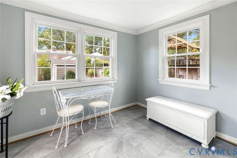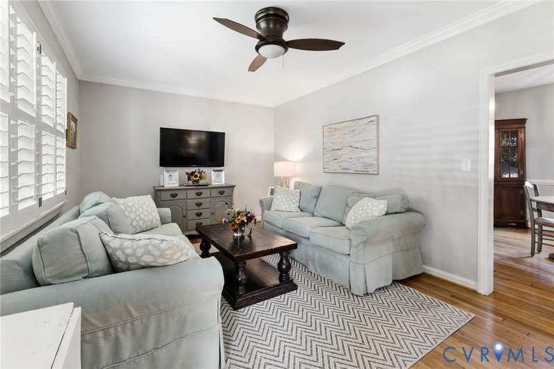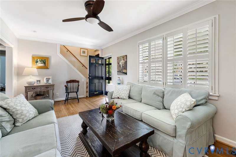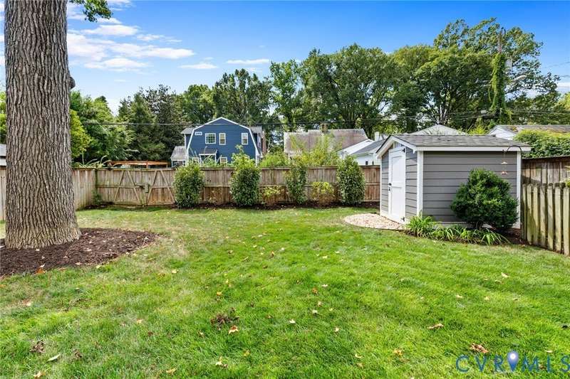 Welcome to 4509 W Franklin Street in the sought-after Colonial Place neighborhood! This charming 3-bedroom, 2.5-bath home offers over 1,650 sqft of beautifully maintained living space with timeless character and modern updates. Step inside to find a spacious living room with gleaming hardwood floors, crown molding, a large picture window that floods the space with natural light, and a ceiling fan/light. The dining room features hardwoods and chair rail molding, creating a warm and inviting setting for meals and gatherings. The updated kitchen boasts granite countertops, stainless steel appliances, ample cabinetry, and recessed lighting. Just off the kitchen, the step-down laundry room provides extra storage, washer/dryer, a convenient half bath, and direct access to the backyard. Two first-floor bedrooms both feature hardwood floors, generous closet space, and ceiling fan/lights. The full hall bath showcases classic black-and-white tile with a tub/shower combo. A pass-through from one bedroom leads to a sun-filled Florida room-perfect for an office-with tile flooring, crown molding, and access to the outdoors. Upstairs, you'll find the spacious primary suite, complete with hardwood floors, a walk-in closet, and a private en suite bath with double vanity, soaking tub, and separate shower. Additional highlights include vinyl replacement windows, plantation shutters across the front of the home, mature landscaping, a privacy-fenced backyard with patio, and a large detached storage shed. Major systems have been updated in recent years, including a heat pump, upstairs mini split, water heater, vapor barrier, and sump pump. Centrally located in the heart of RVA, this home makes everyday living a breeze-walk the Avenues, shop at Willow Lawn, bike to Carytown or the Fan, meet friends at local favorites like The Continental or The Grill, or take the dog to Mary Munford. Convenient to interstates, museums, restaurants, and more-this one truly checks every box. Do not miss your chance to call 4509 W Franklin Street home!