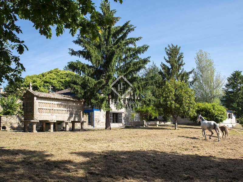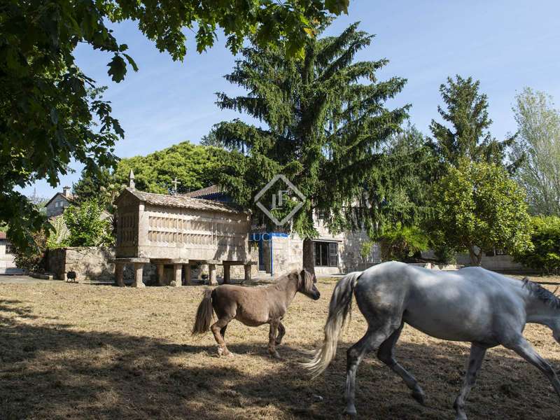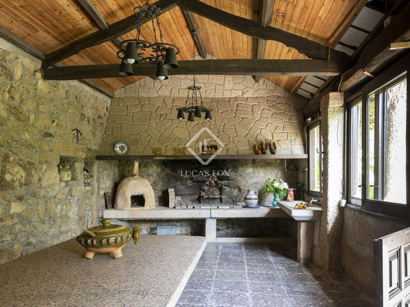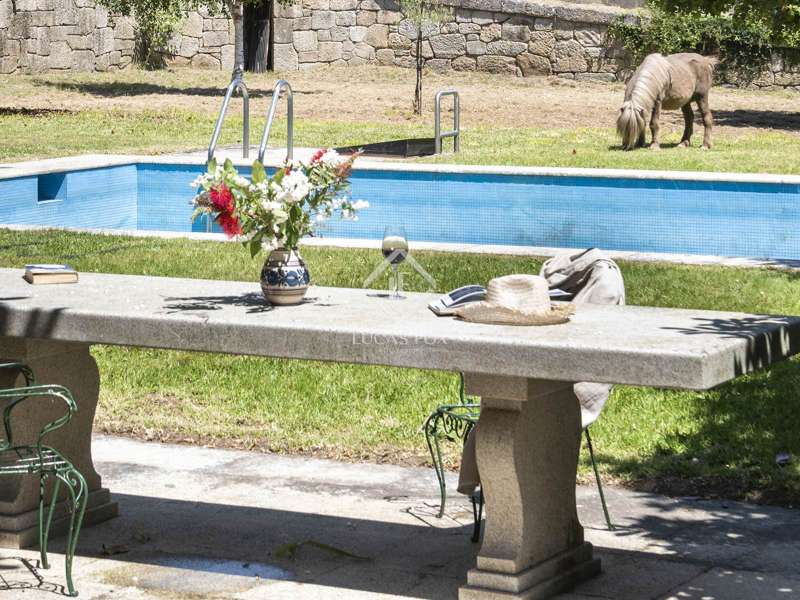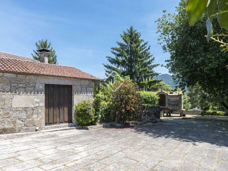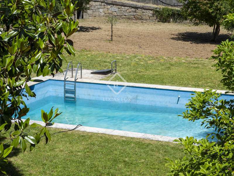In Nigran, we find this beautiful, charming villa for sale, the first stones of which date back to 1880. Located on a large plot of 6.750 m², it is a unique property, located in a quiet environment and close to all services needed. The property is surrounded by farmland and completely enclosed by a perimeter stone wall. We access the property through a beautiful and sizeable paved entrance into a landscaped courtyard, with a large parking area and a garage for up to 4 cars. A nice interior patio separates the gazebo from the main house and is a beautiful space, ideal for relaxing, breakfast and outdoor summer dinners, surrounded by beautiful plants and trees. The main entrance to this house is through a beautifully landscaped courtyard and a covered porch, once inside we access the entrance hall that distributes the whole ground floor area. Towards the left, we find the eat-in kitchen area and a complete bathroom. Towards the right, we find a spacious and bright living room with a wood-burning fireplace and access to another small lounge area with access to the back garden area of the house that leads directly to the pool area and large garden. On the first floor, there are three bedrooms, two with access to the large front balcony, with nice views and a bathroom. On the second floor, we find the main bedroom suite and a study area. Outside, we find a garden area with a large swimming pool, and a plot measuring 6,750 m². The plot offers a small children's playhouse, an annex building previously used for stables and an animal shelter. Underneath the building, we find a storage area and the bodega. The plot offers areas with finished stone benches and tables to enjoy with family and friends. The property would be ideal for a large family or an investor looking for a large plot and a historic-type farmhouse to renovate and update for today's needs. The property is located in a precise location, near nice beaches, the city of Vigo and close to the town centre.