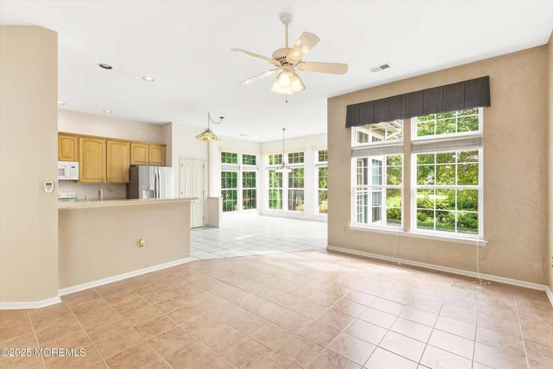 This extended Danbury model overlooks the 7th hole of the golf course in beautiful Four Seasons! With over 2000 sf of living space, this grand home features 10' ceilings, 3 spacious bedrooms, 2 full baths, & an expanded sunroom. Large living room & dining room for entertaining or relaxing. The primary bedroom has a huge walk-in closet & a spa-like bathroom with jetted tub. Outside you'll find a gorgeous patio paver, perfect for enjoying those golf course views. Updates include newer roof, HVAC, & hot water heater. This sought-after, gated community offers amenities such as indoor and outdoor pools, golf, clubs, clubhouse, social events, fitness center, billiards, tennis, bocce, shuffleboard, & more. Carefree lifestyle conveniently located near shopping, restaurants, & beaches.