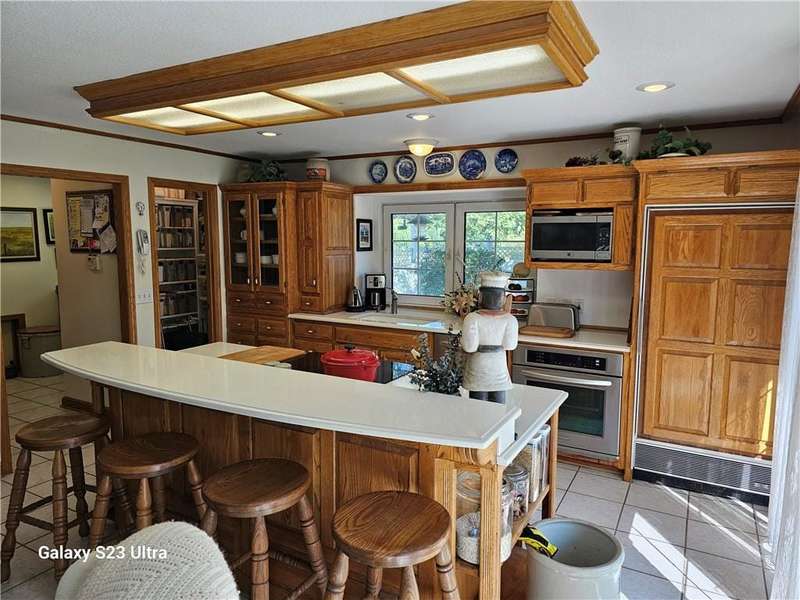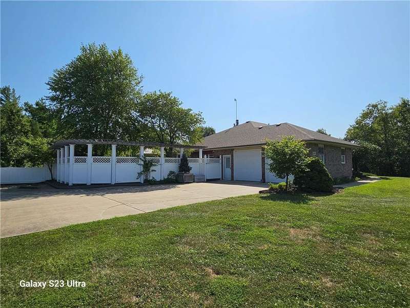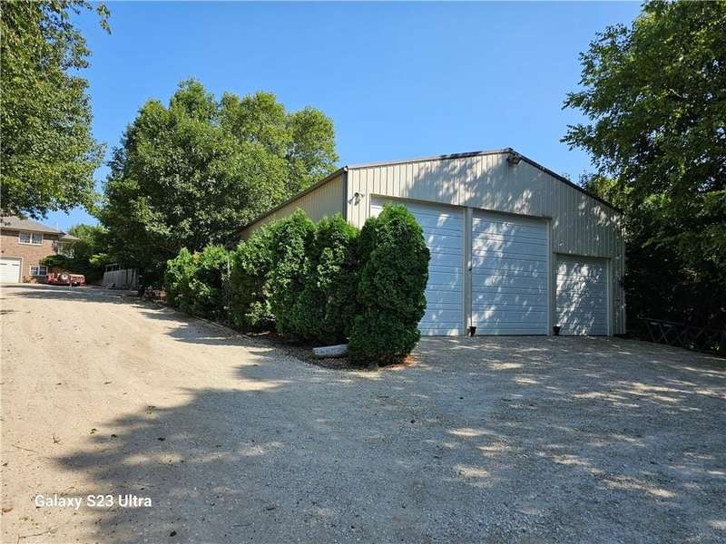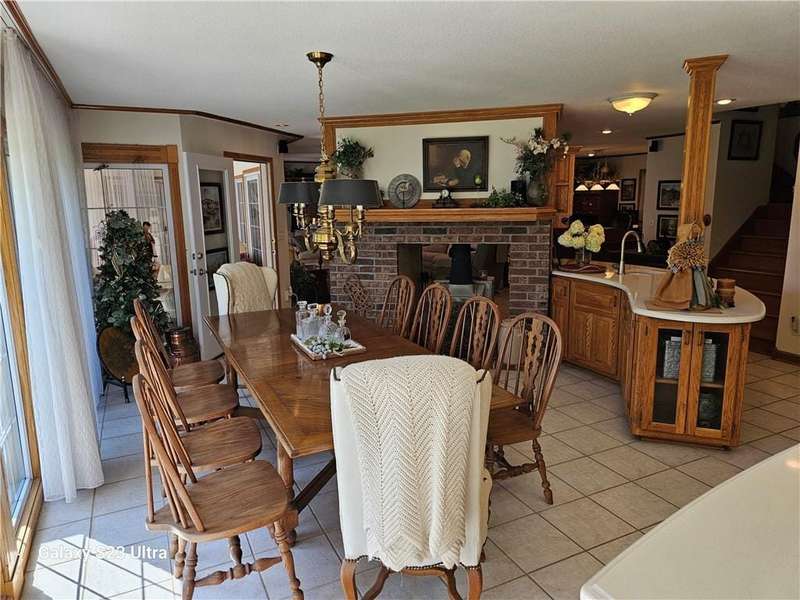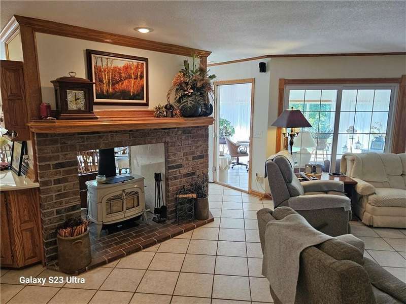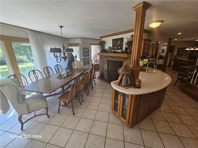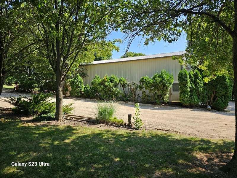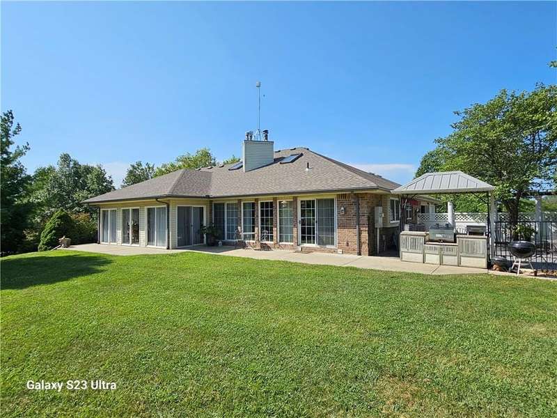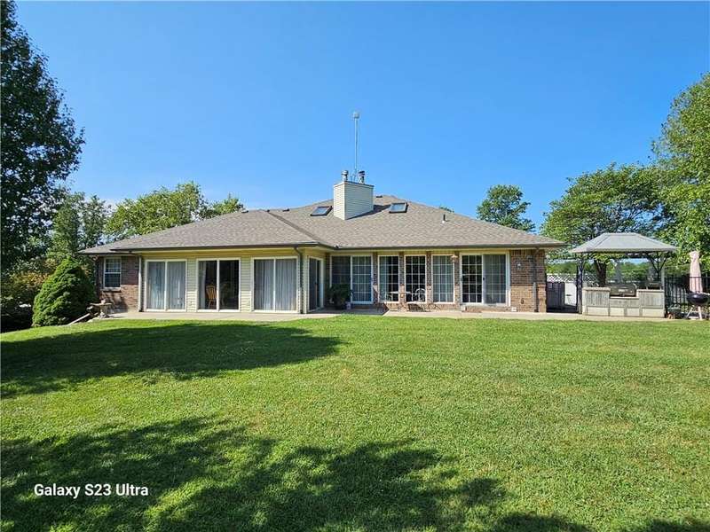 All custom brick 1.5 Story home on picturesque 4.5 acre lot. Large concrete driveway with plenty of parking for multiple cars. A 2 car garage with immediate access to the kitchen and laundry room. Large open kitchen with all custom built cabinets. Giant island with breakfast bar. Double drawer dishwasher, SubZero refrigerator, quartz countertops, microwave and smooth top range. Lots of light from sliding glass door entry. The kitchen looks into a massive dining area with buffet counter top. A built in ice machine is handy for those hot days. A see through hearth/fireplace has a wood burning stove which can heat the entire home. Large living room with a wall of sliding glass doors. And office area is off the LR area or it could be used as a craft area or whatever you need. Tile floors through out these areas. The Sunroom is just outside the LR and has a vaulted ceiling with space above to put flowers, art or personal nick nacks. The master bedroom has hardwood floors and a ceiling fan. The master bath has a double vanity with jetted tub, shower and walkin closet. Upstairs you will find 2 bedrooms with skylights that also open to allow for fire escape. The basement has a large room with kitchenette that could be used as non-conforming bedroom, game room, family room or however you need. There is a full bathroom in the basement as well. There is another large garage in the basement that has lines in place for air tools if you like. The large 40x60 shed/workshop has 100 amp service with concrete floor and a room upstairs for office or more storage. There a large portions of the acreage that have electricity and water running to different areas. Ask for more details. An extra wide bridge spans the creek to get to the back side of the acreage.