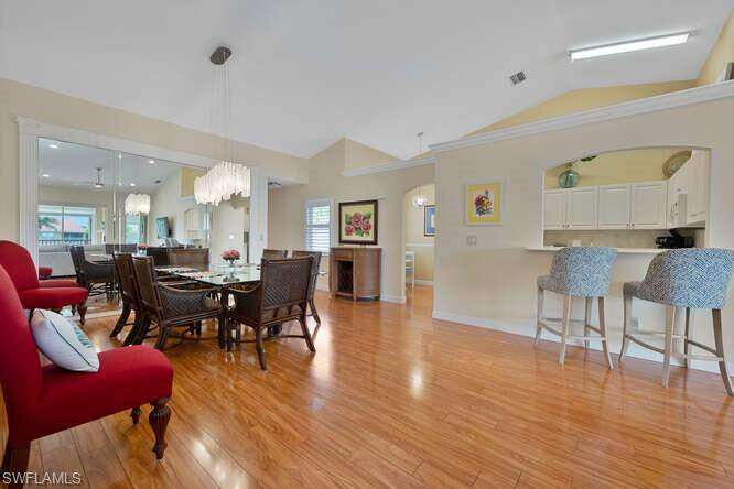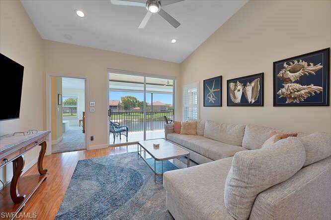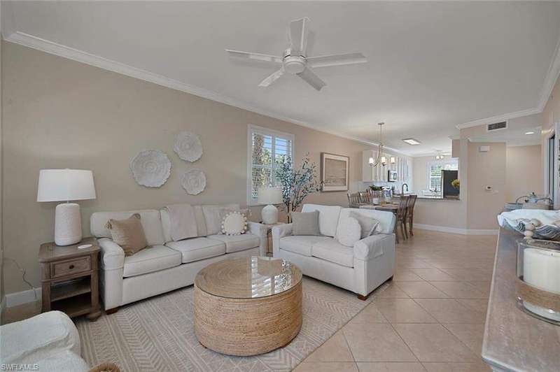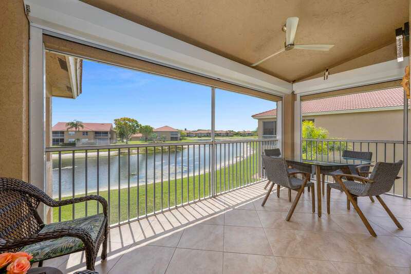 Gorgeous lake view in the heart of North Naples! This 2 bed plus den, 2 bath garage coach home in Huntington Lakes is being sold TURNKEY FURNISHED with upgraded furniture, textiles and artwork! The property boasts a spacious open-concept floorplan with plenty of space for visitors! The den has its own access to the expansive screened-in balcony overlooking the lake. Vaulted ceilings, oversized bedrooms, eat-in kitchen plus formal dining space have this coach home living like a single-family property. Huntington Lakes is located just 10 minutes from the Gulf Beaches, 20 minutes to RSW, 20 minutes to Downtown Naples and less than 5 minutes to Seed to Table! The community has tennis, clubhouse, pool and more!