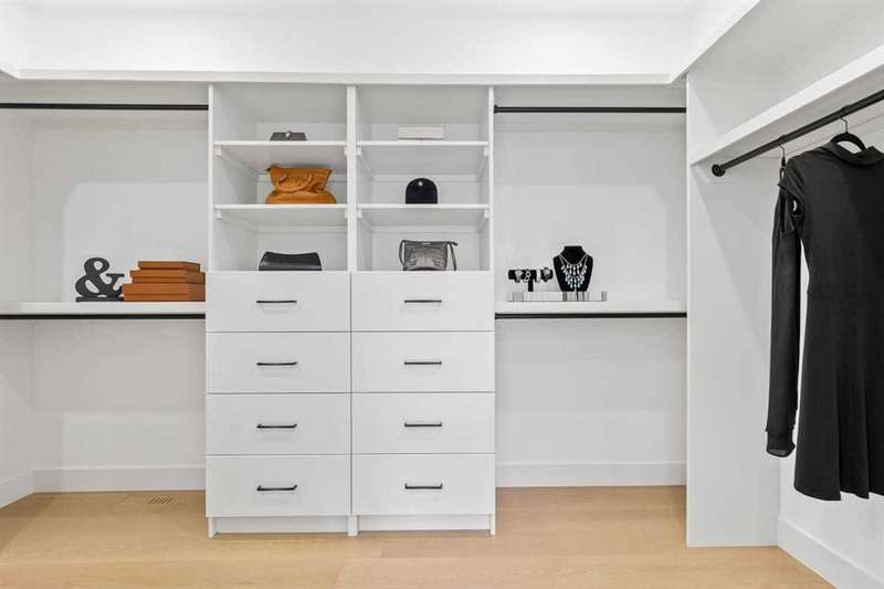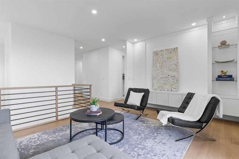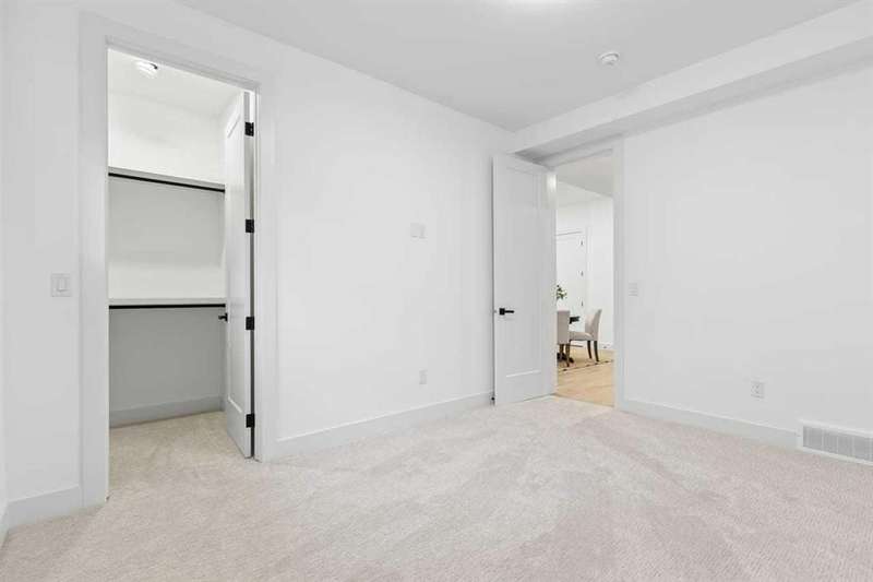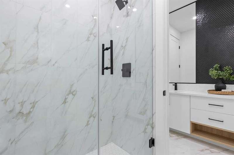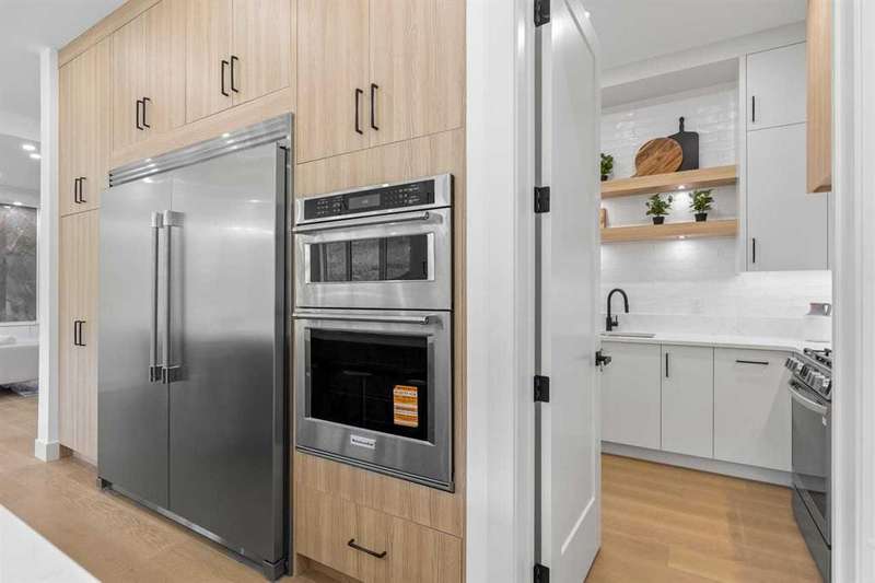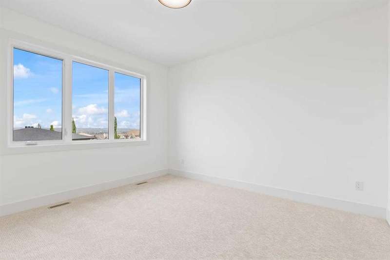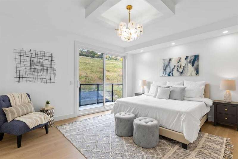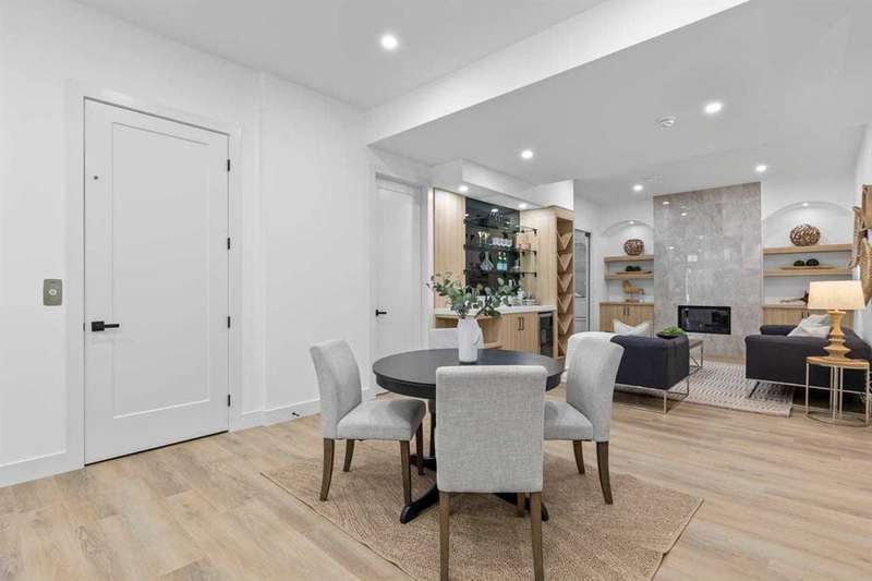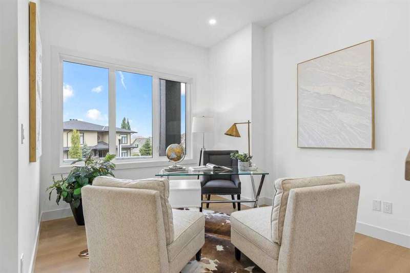 Open house Sat. Nov. 29 (1-4 pm) and Sun. Nov 30 (2-4:30 pm) Luxury residence in prestigious Patterson Heights-The Point- with over 5,000 sqft of living space, where thoughtful design and upscale finishes define every detail. As you enter, you're greeted by a grand entrance, boasting a floor to ceiling custom built closet. To your right is a beautifully appointed mudroom featuring a walk-in closet and impressive floor to ceiling wall unit, with direct access to the oversized double garage that's fully equipped with EV charging outlets, gas rough in for heater, hot and cold water taps. A full bathroom featuring quartz countertops and a floor-to-ceiling glass shower. Soaring 10 ft ceilings and wide vinyl plank flooring flow throughout, creating a seamless, elegant feel. The cozy living room is enhanced by a modern wall unit and ambient LED lighting, while the custom bar area complete with bar fridge, is perfect for entertaining. A private bright gym space with recessed lighting, sleek floating shelving and plenty of room for fitness equipment. The open riser staircase, paired with a PRIVATE ELEVATOR for ultimate convenience, leads to a show-stopping second floor. A light-filled home office overlooks a large window, and a modern half-bath. The stylish dining area is anchored by a built-in LED-lit beautiful wall unit, the glass sliding doors provide access to a balcony, The coffered ceiling family room stuns with an art-block feature wall and gas fireplace. The sliding glass door gives access to a fully finished, landscaped backyard that backs onto serene green space, where wildlife sightings are frequent and peaceful. The kitchen is a true centerpiece with an elegant quartz waterfall island and hidden cabinetry, two-tone modern cabinets, high-end stainless appliances, and a fully equipped spice kitchen for hosting large gatherings. A modern kitchen nook with an exquisite light fixture completes this level. The top floor is an oasis of luxury, starting with a grand primary suite behind French doors. Enjoy a private balcony with views of the green space, a juice bar, in-floor heating in the en-suite, and a spa-style bath featuring a freestanding tub, floor-to-ceiling glass steam shower with rainfall head and granite seating. The second and third bedrooms share a beautiful Jack & Jill bathroom with quartz counters, and a fourth bedroom along with its own full bath and walk-in closet. Don't miss the thoughtfully finished laundry room. The bonus room is a standout, with downtown views, and another wall unit. This level boasts 9 ft ceilings, continuing the home’s spacious and airy feel. ADDITIONAL UPGRADES: Basement rough in under slab heating, 75 gallon hot water tank, 2 high-efficiency furnaces, 2 central A/C units, extensive built-ins. The exterior is fully landscaped, composite rear deck with a gas line.This is a true masterpiece offering luxury, comfort, and functionality across all three levels complete with elevator access. A rare offering in an exceptional location.