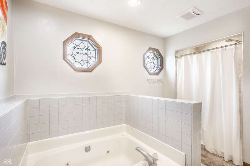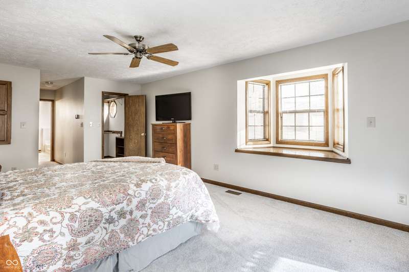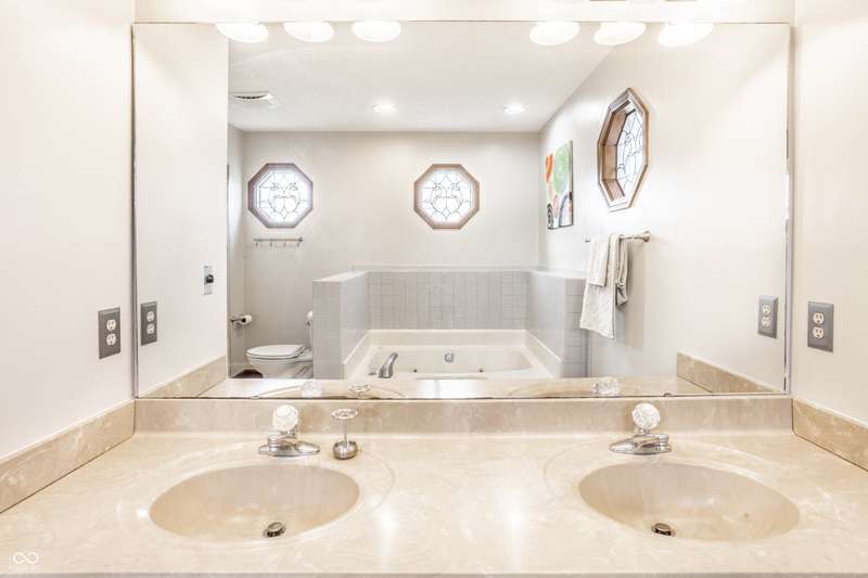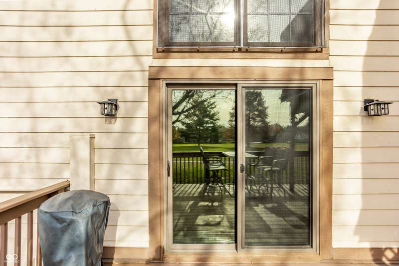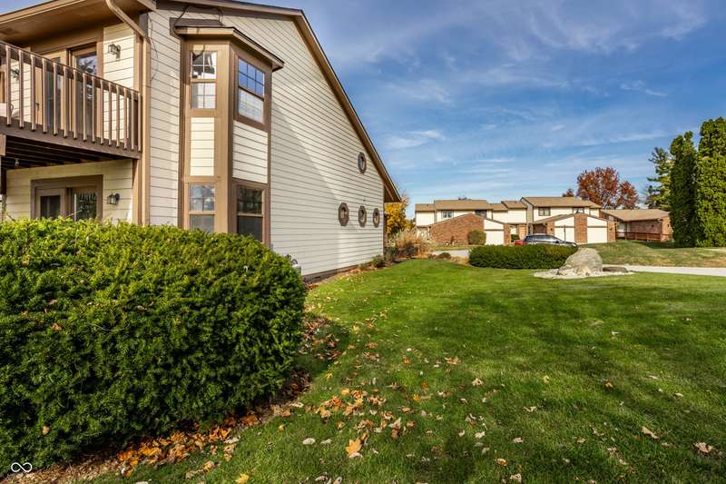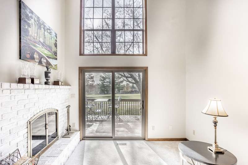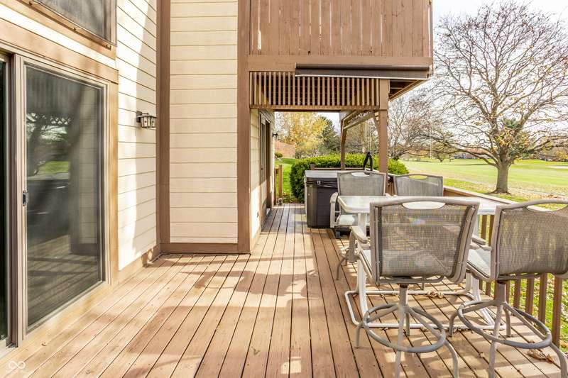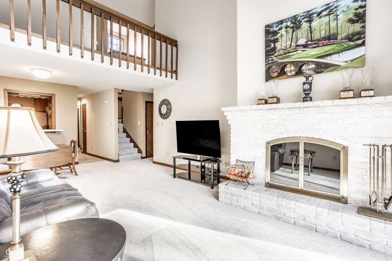 Welcome home to this exceptional end-unit condo with one of the community's largest floor plans. Perfectly situated with expansive of green space as your side yard and located along the 2nd hole of the golf course, this home offers serene surroundings and stunning sunset views. This spacious layout includes two primary bedroom suites, one on main floor and 2nd on the upper. Whether sipping on your morning coffee, having an evening beverage of choice, or grilling out, the huge main level deck with 2-year-old hot tub is a perfect oasis. Upper-level deck provides additional outdoor space with enhanced privacy. Inside be greeted with updated flooring including new commercial grade ceramic tile and new Luxor II carpet on main level & stairs. Kitchen has been updated with solid surface countertops, new dishwasher, new smart refrigerator, and new LG smart washer/dryer tower offering both style and convenience. Main level primary suite features atrium door to the patio and hot tub, walk in closet and spacious bath with updated ceramic tile shower with bench, jetted tub, and double sink vanity. Large family room/loft with built in bookshelves provides another living/work/flex space. Middle section of bookshelves is on hinges and swings open reveal the storage area behind. Fresh interior paint and brand-new water softener. Attached 2 car garage makes a perfect golf cart storage and charging spot. Garage has attic access and pull- down stair for added storage. Guest parking spaces located adjacent to the condo on the circle.