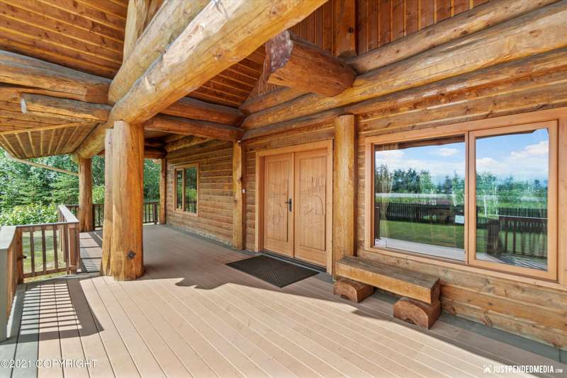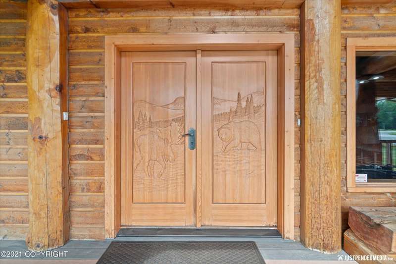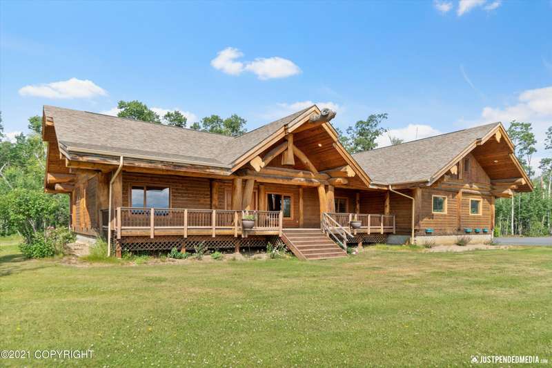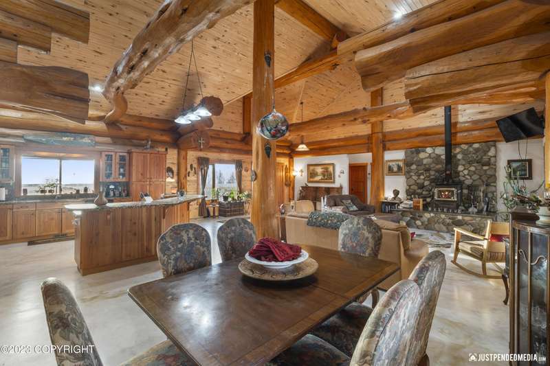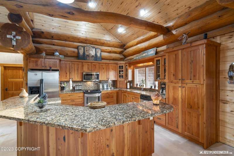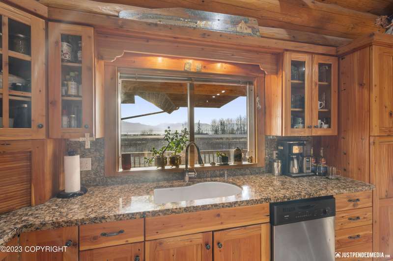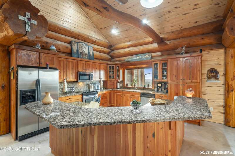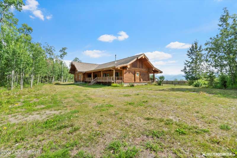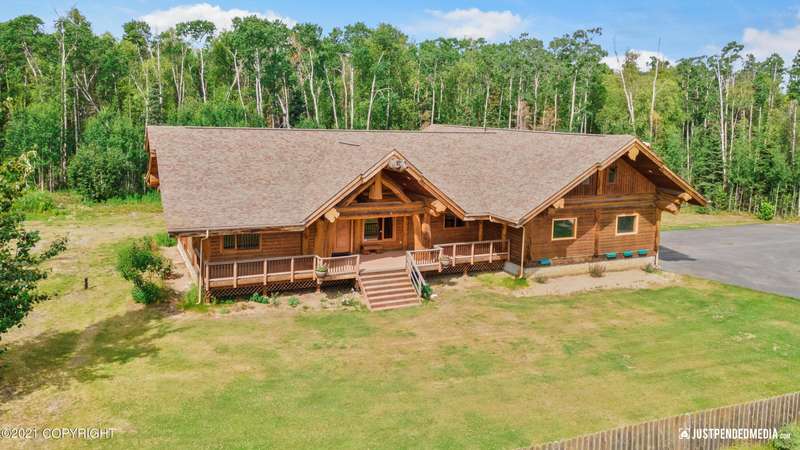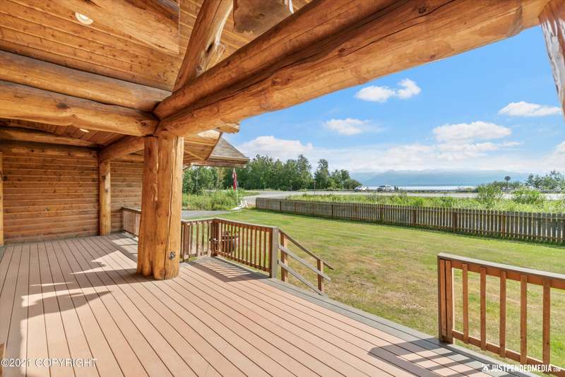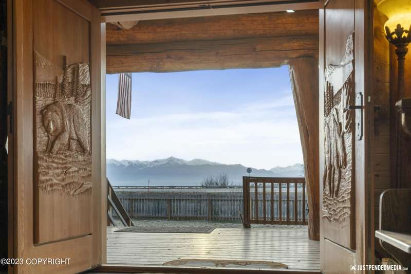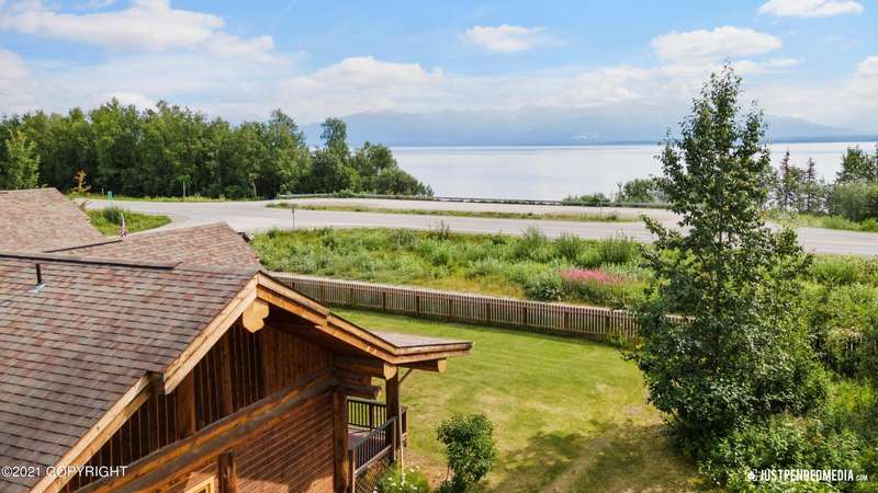 Alaskan dream Red Cedar Log ranch style home with a view to die for, modern amenities & craftsmanship. Unobstructed Mountains & inlet views, watch whales & otters in the inlet and fox, moose, eagles & more! Huge 600 yr old logs, with carvings throughout, River Rock Fireplace, Large front & back covered trex decking, Anaconda granite countertops, New marble epoxy floor, new fence.... and lined stainless steel drawers in kitchen and baths, huge walk in closets, large California closet with unique pull downs in Main Bedroom suite, Large detached shop, and so much more. Watch the dog teams run in the front pulling four wheelers getting ready for Iditarod and other races. A wonderful Alaskan Experience! This is the listing Licensees personal property.
