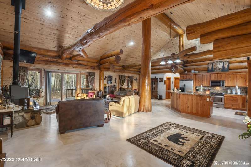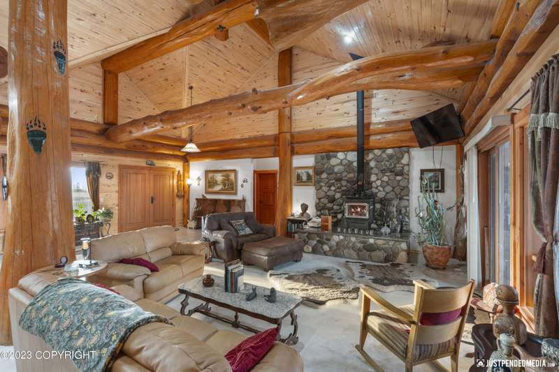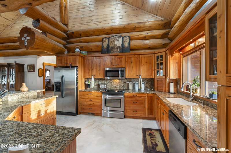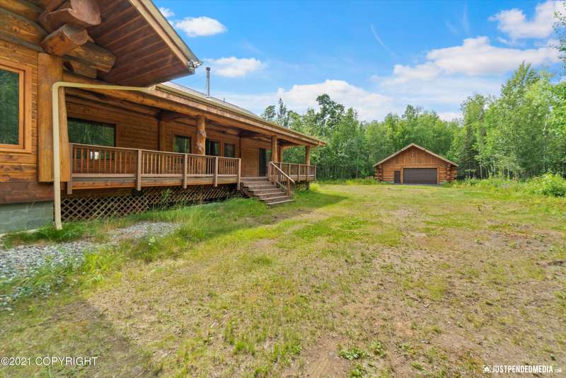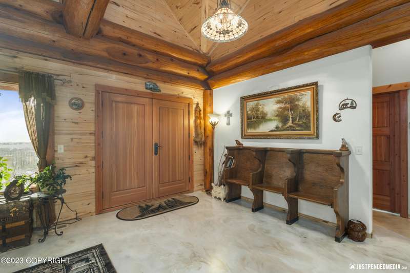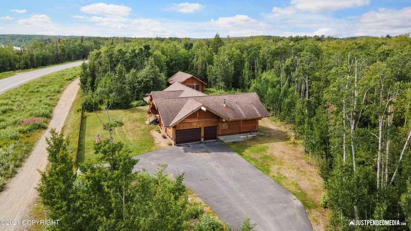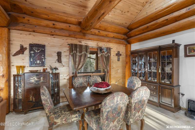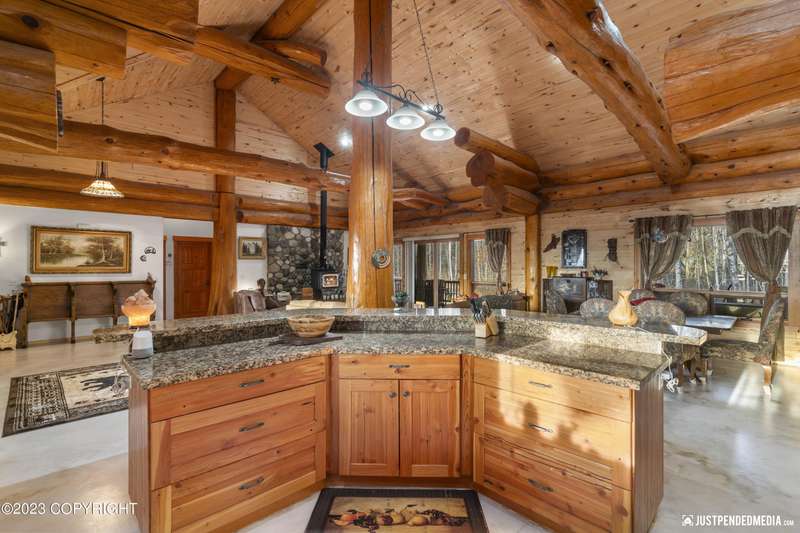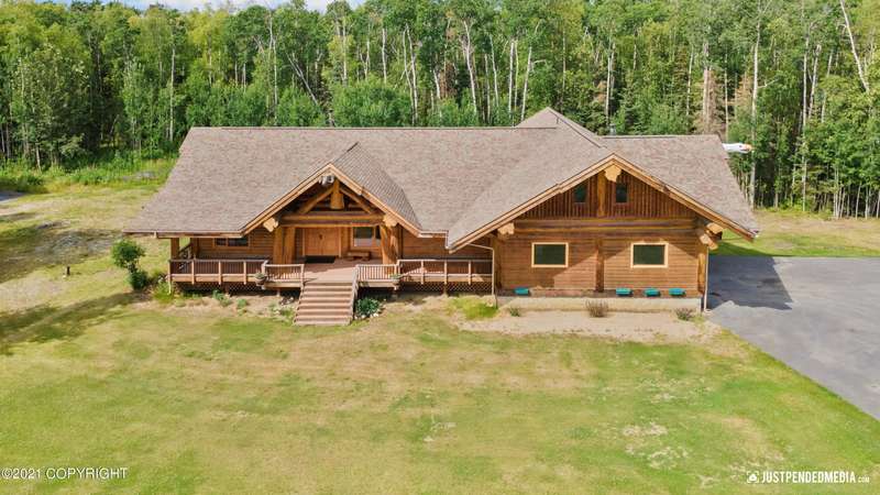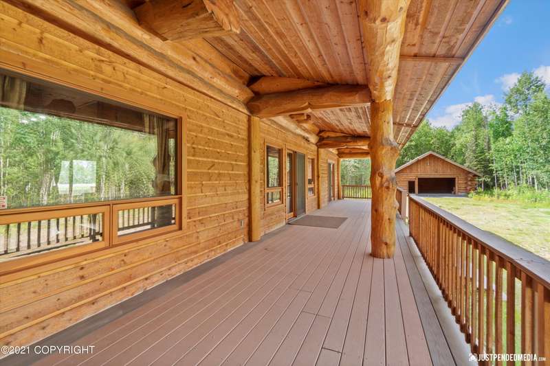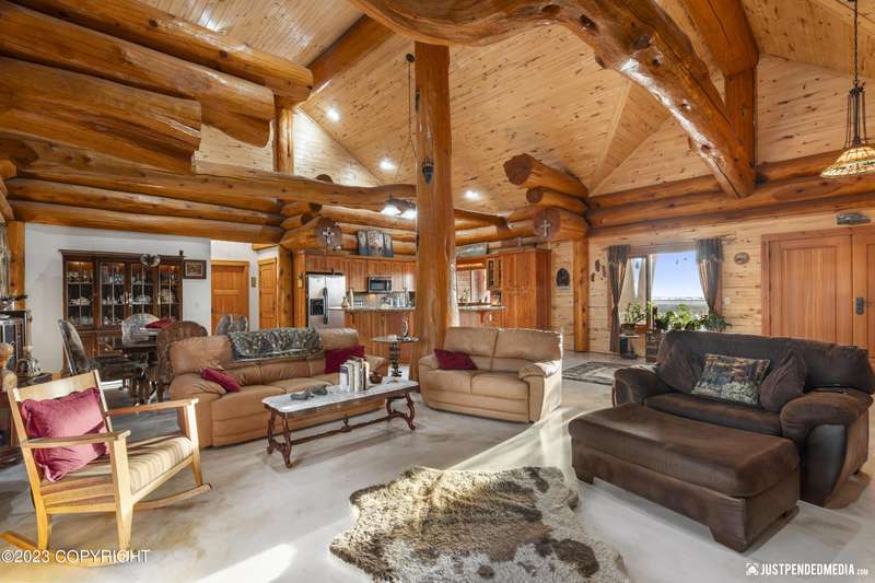 Alaskan dream Red Cedar Log ranch style home with a view to die for, modern amenities & craftsmanship. Unobstructed Mountains & inlet views, watch whales & otters in the inlet and fox, moose, eagles & more! Huge 600 yr old logs, with carvings throughout, River Rock Fireplace, Large front & back covered trex decking, Anaconda granite countertops, New marble epoxy floor, new fence.... and lined stainless steel drawers in kitchen and baths, huge walk in closets, large California closet with unique pull downs in Main Bedroom suite, Large detached shop, and so much more. Watch the dog teams run in the front pulling four wheelers getting ready for Iditarod and other races. A wonderful Alaskan Experience! This is the listing Licensees personal property.