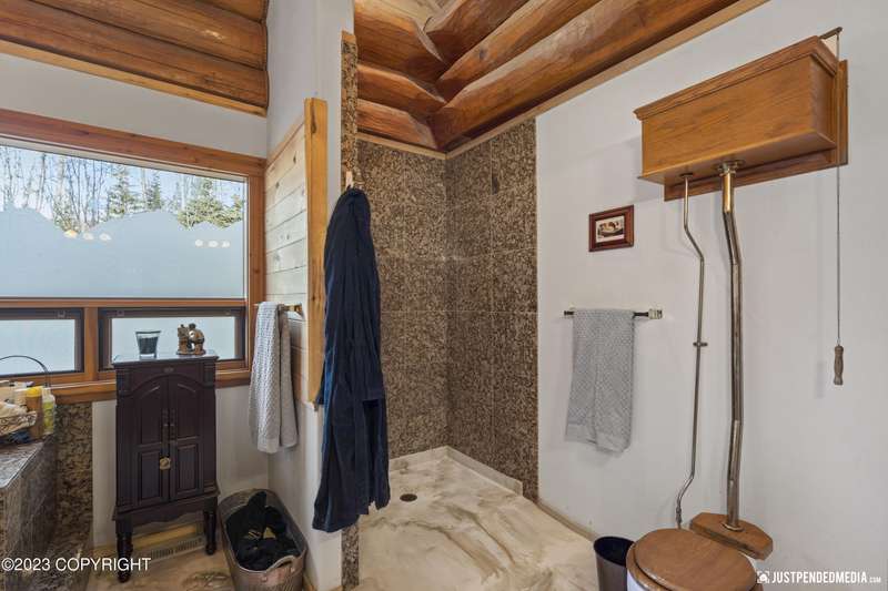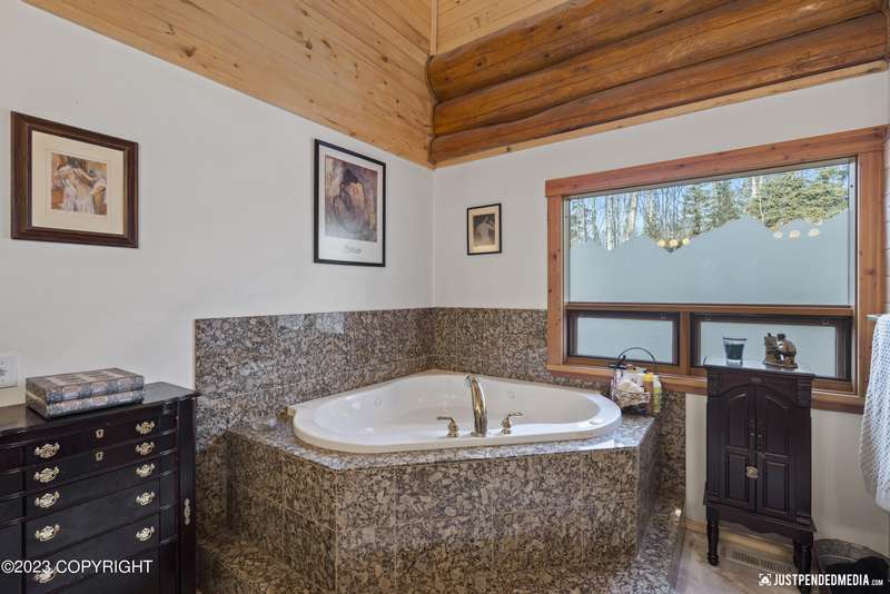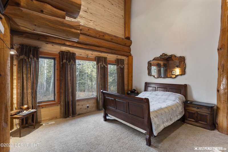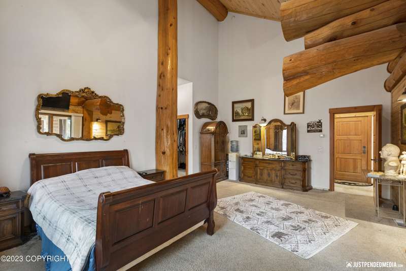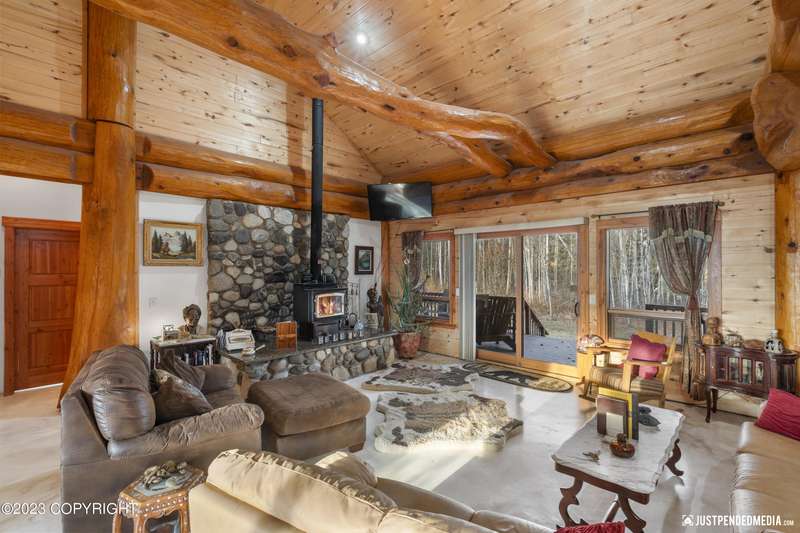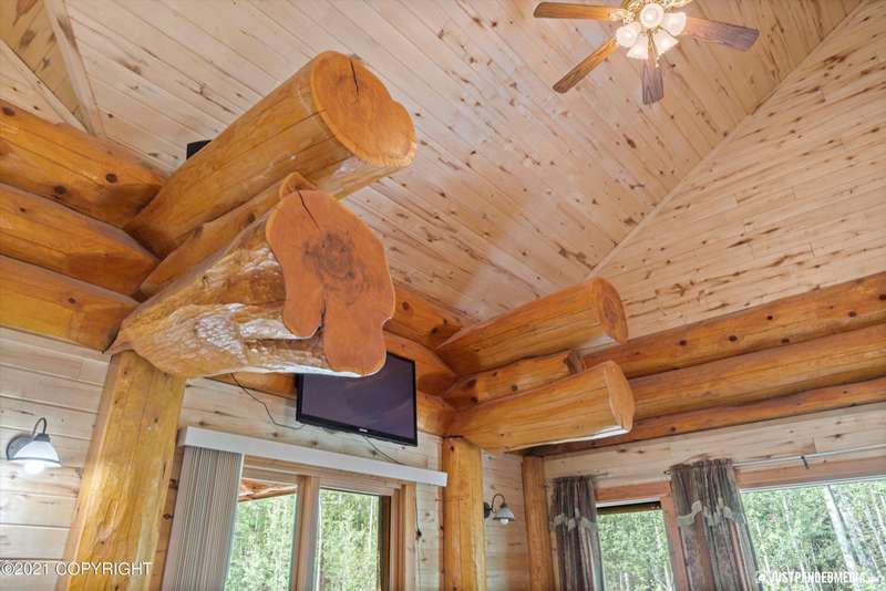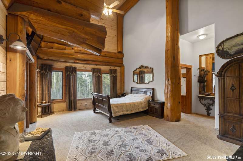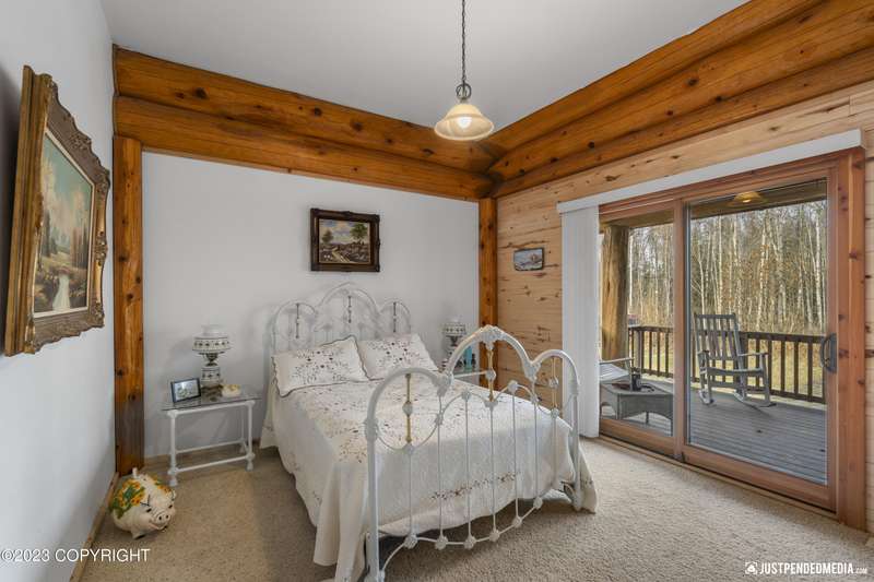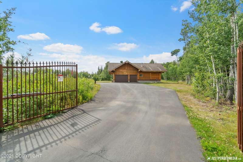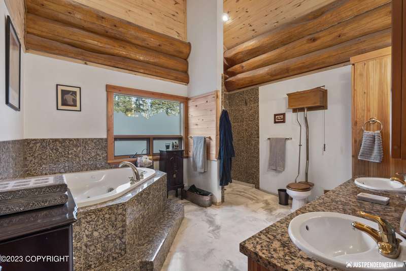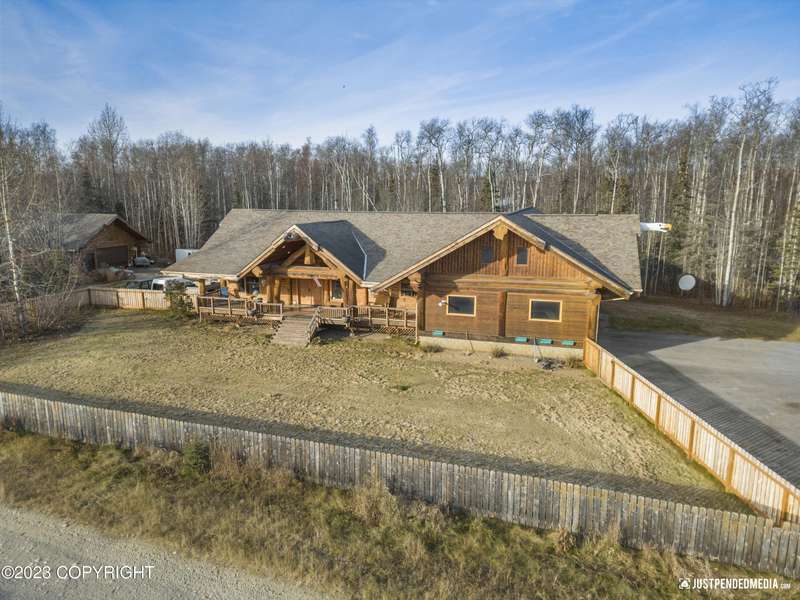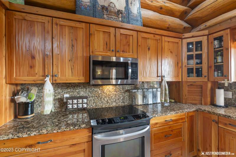 Alaskan dream Red Cedar Log ranch style home with a view to die for, modern amenities & craftsmanship. Unobstructed Mountains & inlet views, watch whales & otters in the inlet and fox, moose, eagles & more! Huge 600 yr old logs, with carvings throughout, River Rock Fireplace, Large front & back covered trex decking, Anaconda granite countertops, New marble epoxy floor, new fence.... and lined stainless steel drawers in kitchen and baths, huge walk in closets, large California closet with unique pull downs in Main Bedroom suite, Large detached shop, and so much more. Watch the dog teams run in the front pulling four wheelers getting ready for Iditarod and other races. A wonderful Alaskan Experience! This is the listing Licensees personal property.