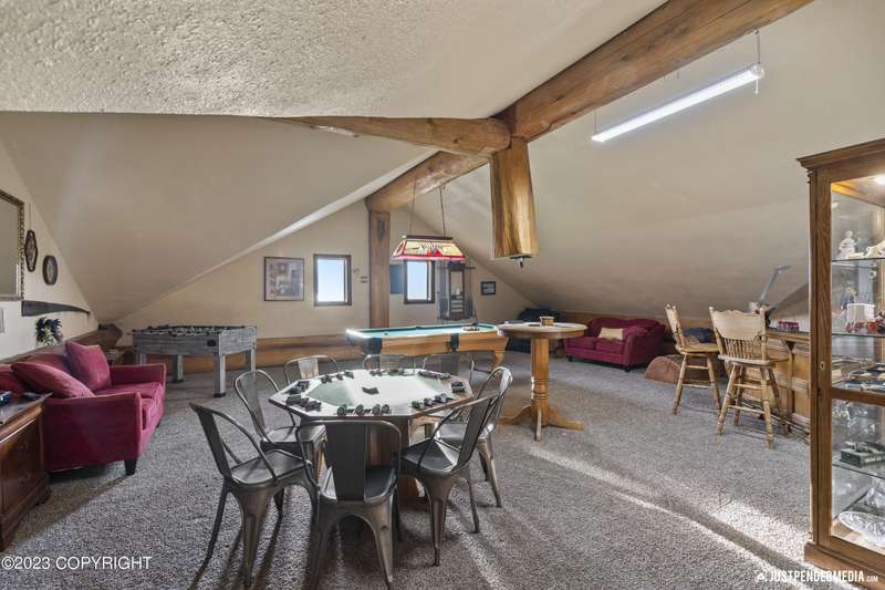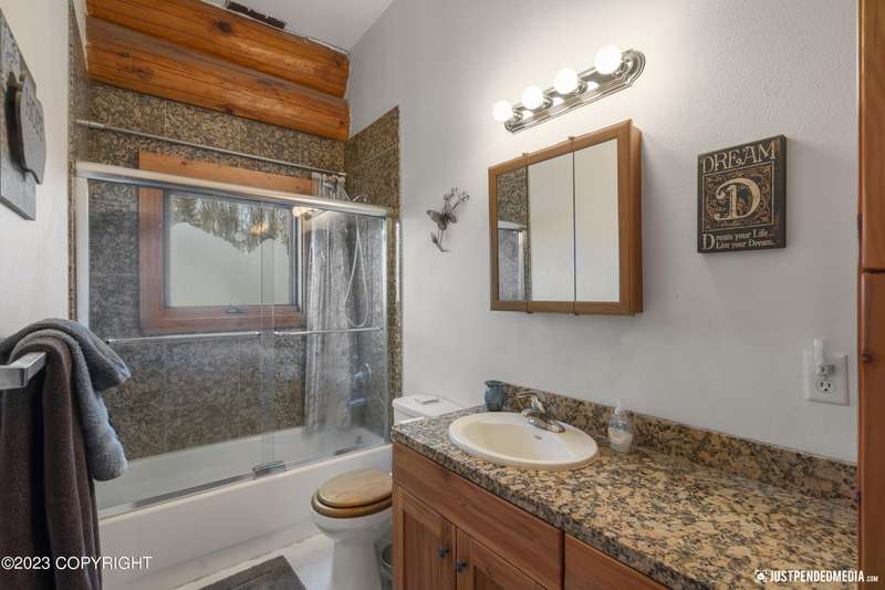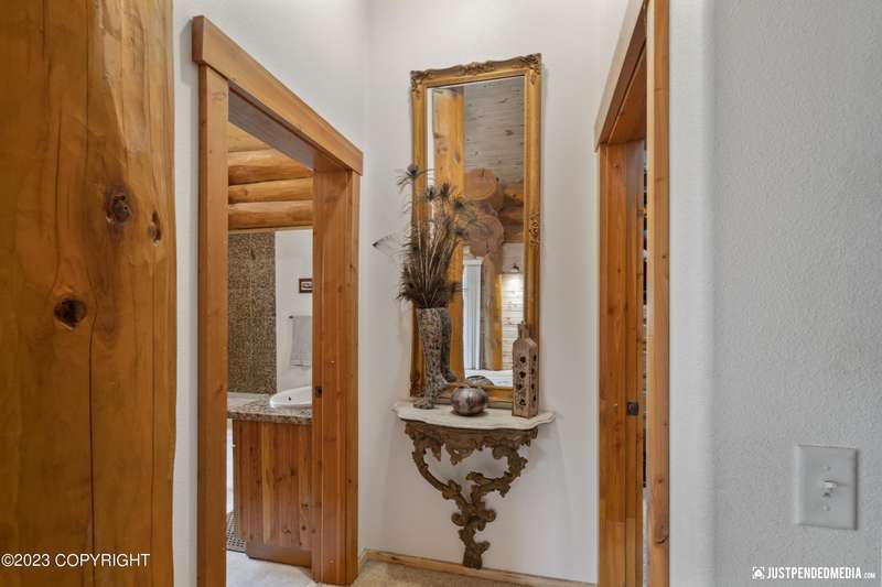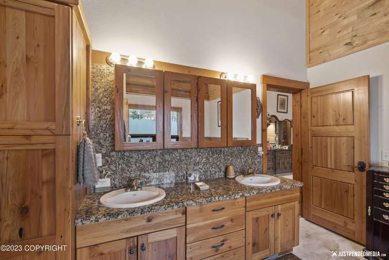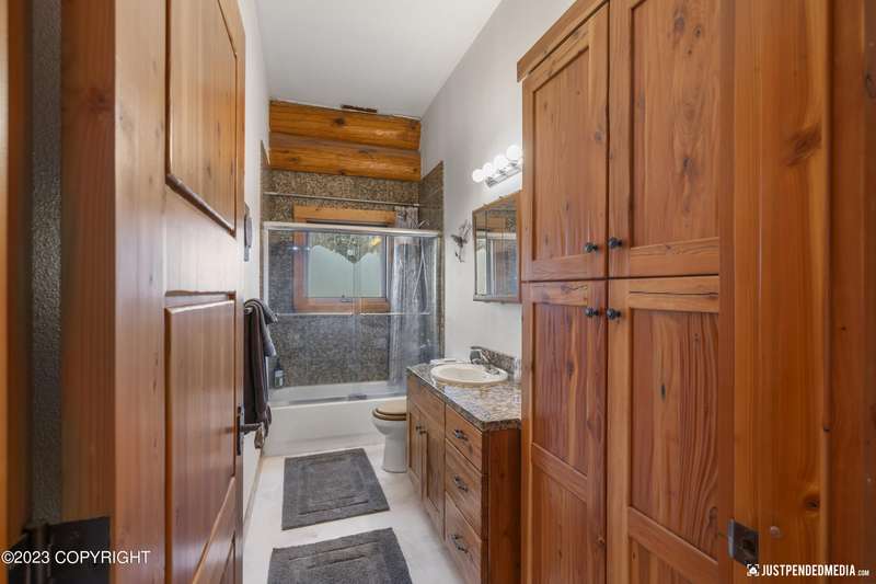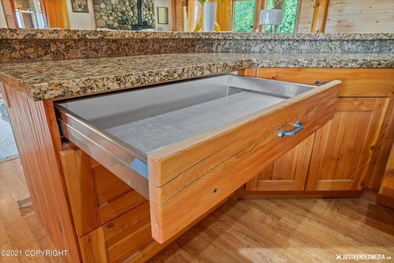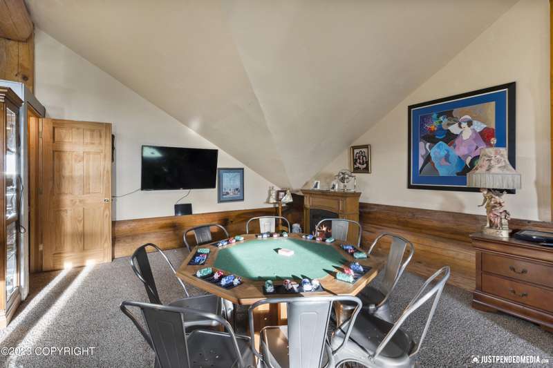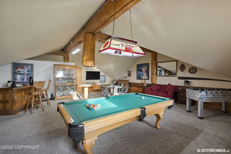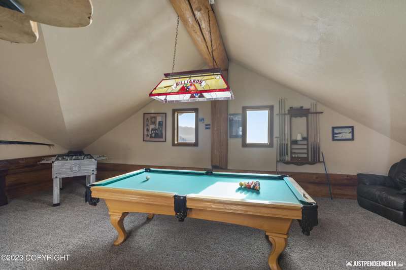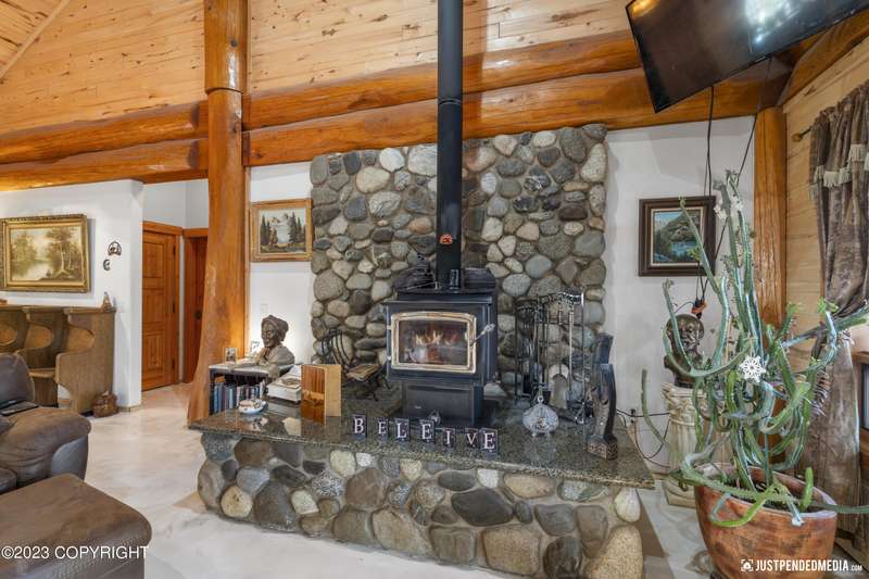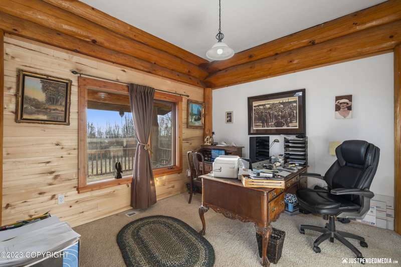 Alaskan dream Red Cedar Log ranch style home with a view to die for, modern amenities & craftsmanship. Unobstructed Mountains & inlet views, watch whales & otters in the inlet and fox, moose, eagles & more! Huge 600 yr old logs, with carvings throughout, River Rock Fireplace, Large front & back covered trex decking, Anaconda granite countertops, New marble epoxy floor, new fence.... and lined stainless steel drawers in kitchen and baths, huge walk in closets, large California closet with unique pull downs in Main Bedroom suite, Large detached shop, and so much more. Watch the dog teams run in the front pulling four wheelers getting ready for Iditarod and other races. A wonderful Alaskan Experience! This is the listing Licensees personal property.