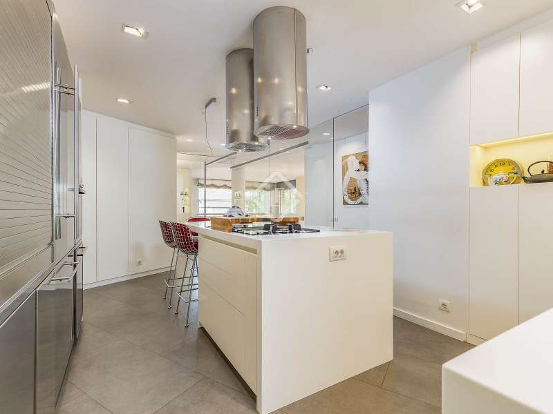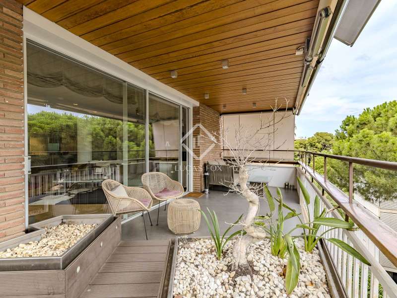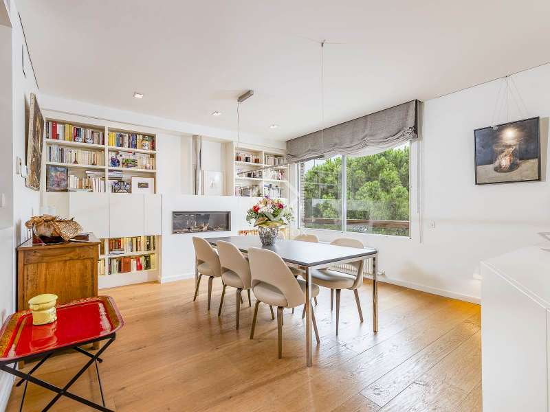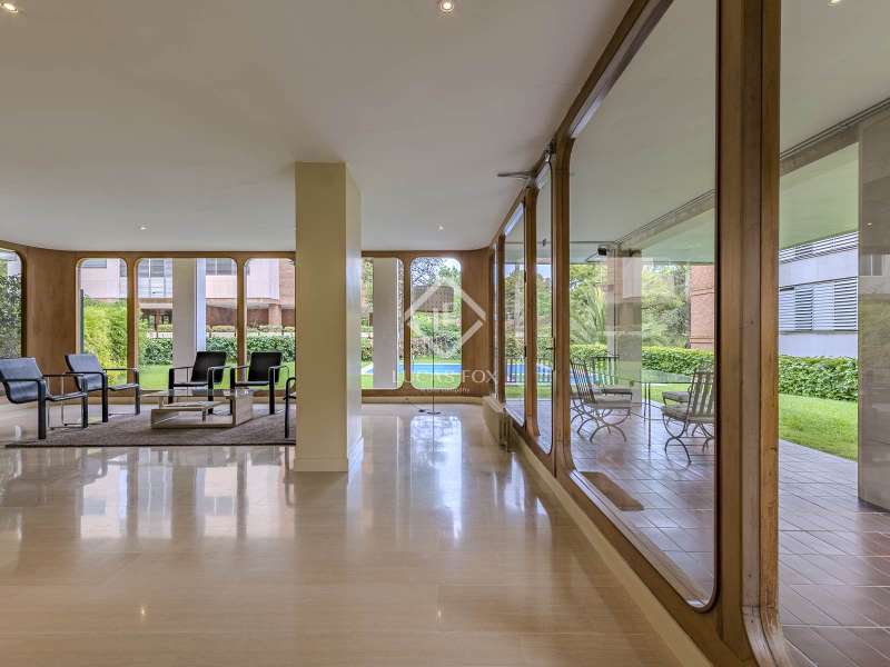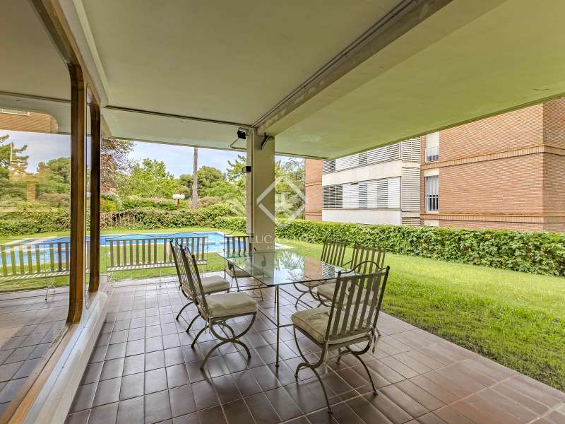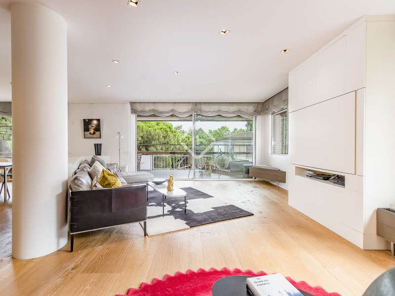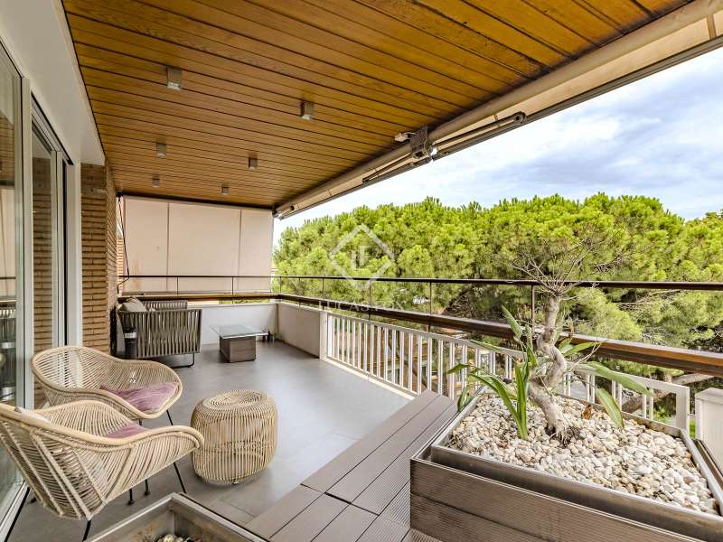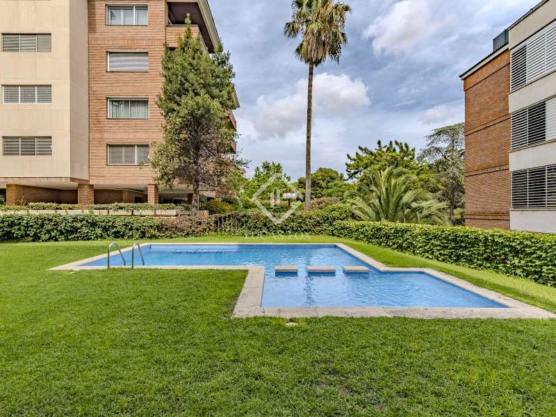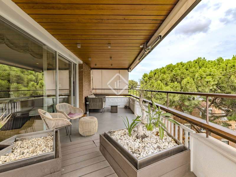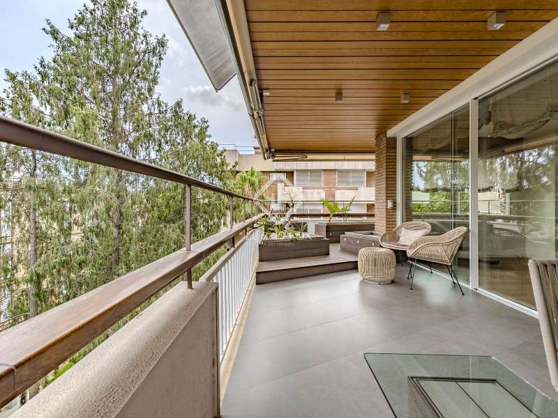 Lucas Fox exclusively presents this magnificent property located on the quiet Borrell i Soler Street, in a building with a concierge and only eight neighbors, guaranteeing privacy, tranquility, and security. This completely exterior apartment was renovated ten years ago with high-quality materials and finishes that have perfectly stood the test of time. Thanks to its modern design and excellent condition, the property feels as though it has been recently renovated . The property boasts a very practical and functional layout , ideal for families. The day area consists of a large dining room living room measuring almost 60 m² with direct access to a fantastic 25 m² south-facing balcony terrace, which provides spectacular light throughout the day. The kitchen, enclosed but visually connected to the living room by fixed glass panels, allows for separate spaces without sacrificing the feeling of spaciousness and light. From here, there is also access to a practical laundry area , ideal for storage and ironing. In the night area, we find a main bedroom suite with a full bathroom and dressing area, two additional double bedrooms, and a second full bathroom . The entire apartment features large windows that allow for natural light, unobstructed views, and an atmosphere of peace and serenity thanks to the height of the property and its distance from the neighboring properties. La Finca, built in 1975, is perfect condition and stands out for its authenticity combined with contemporary design touches. Its large windows allow you to enjoy views of the beautiful communal garden , a well-kept garden area with a pool that offers an oasis of calm in the heart of the city. The property includes two parking spaces on the building: one medium-small and one large double, equipped with an electric vehicle charger, as well as an 8.5 m² storage room located in the floor . This compact, well-designed, and light-filled apartment is ideal for those seeking quality of life, tranquility, and proximity to key amenities such as the French Lycée and the Royal Tennis Club of Barcelona. An exceptional property , ready to move into.