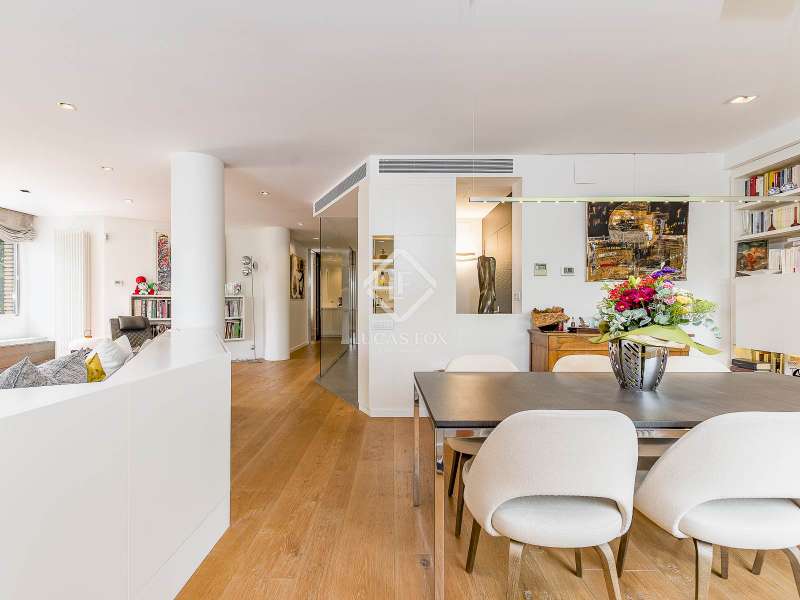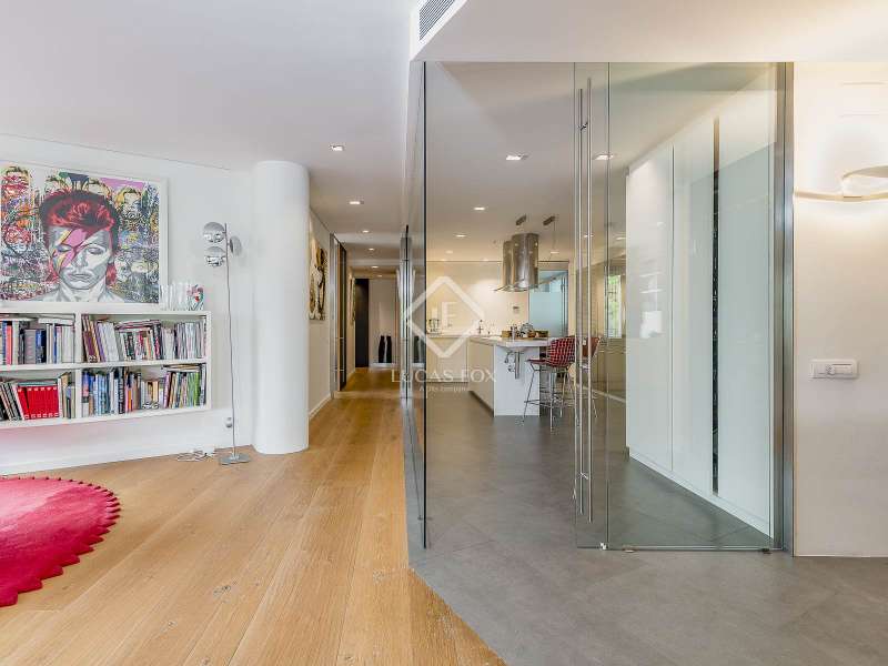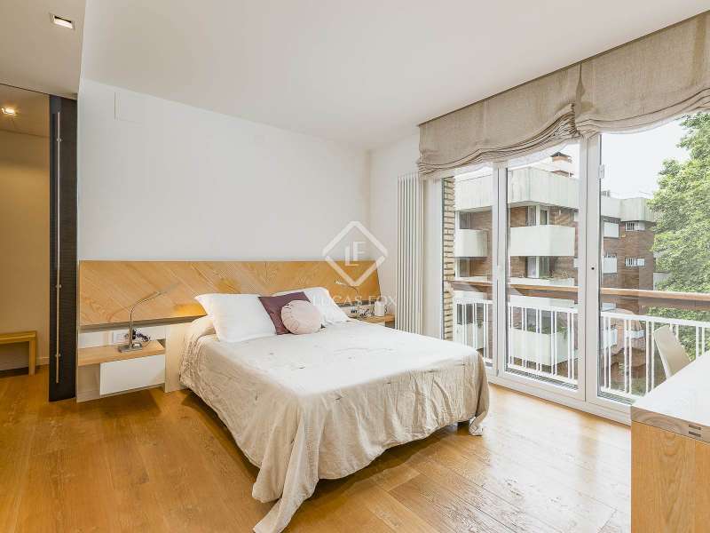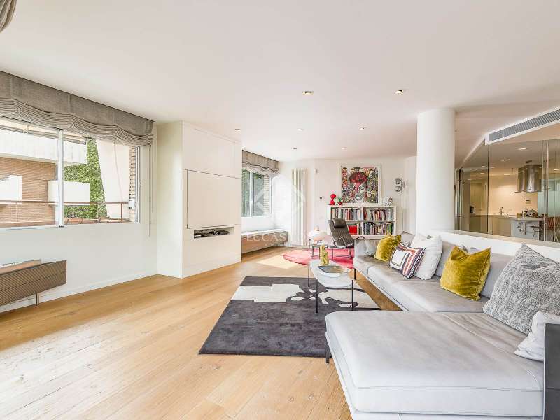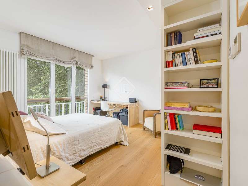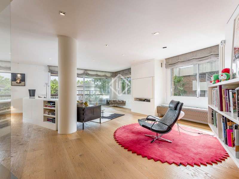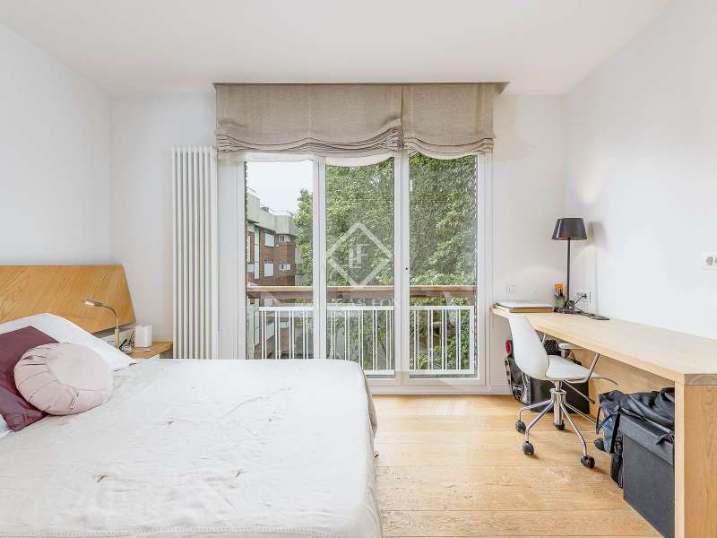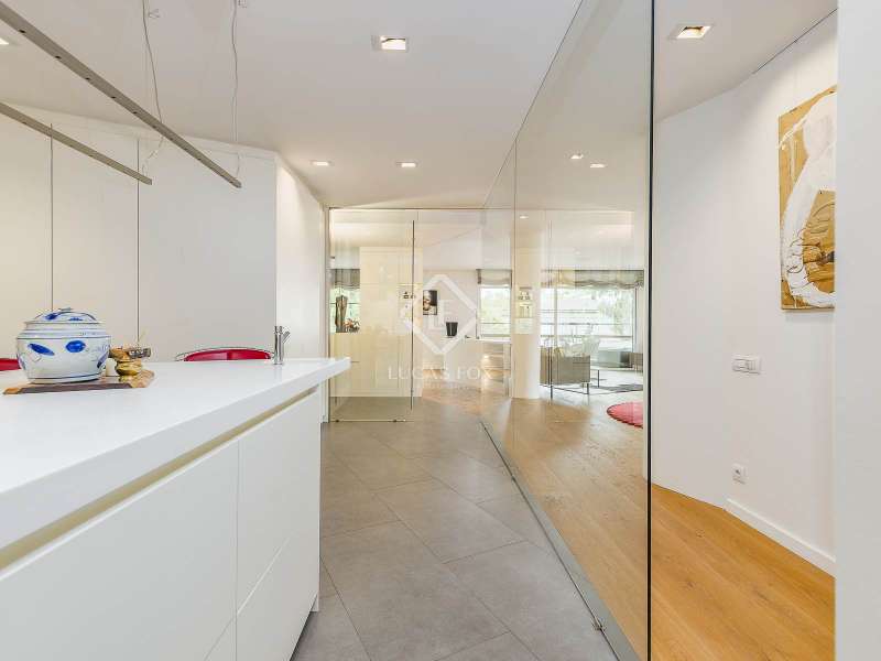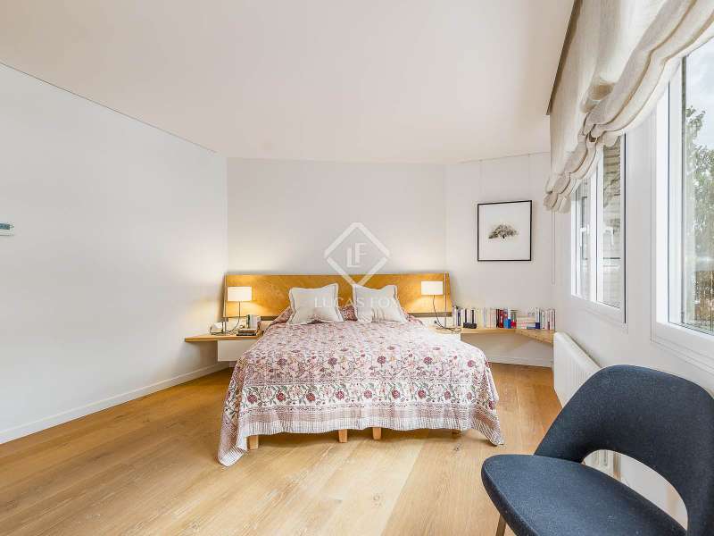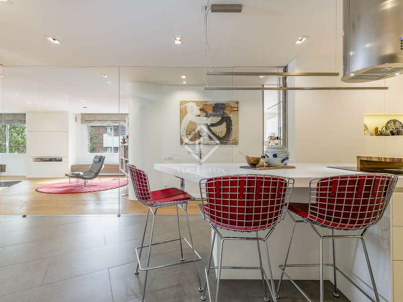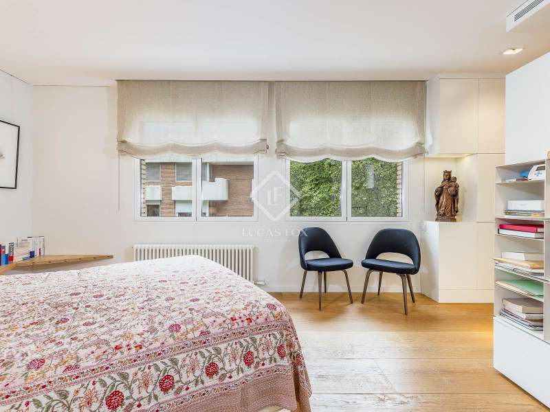 Lucas Fox exclusively presents this magnificent property located on the quiet Borrell i Soler Street, in a building with a concierge and only eight neighbors, guaranteeing privacy, tranquility, and security. This completely exterior apartment was renovated ten years ago with high-quality materials and finishes that have perfectly stood the test of time. Thanks to its modern design and excellent condition, the property feels as though it has been recently renovated . The property boasts a very practical and functional layout , ideal for families. The day area consists of a large dining room living room measuring almost 60 m² with direct access to a fantastic 25 m² south-facing balcony terrace, which provides spectacular light throughout the day. The kitchen, enclosed but visually connected to the living room by fixed glass panels, allows for separate spaces without sacrificing the feeling of spaciousness and light. From here, there is also access to a practical laundry area , ideal for storage and ironing. In the night area, we find a main bedroom suite with a full bathroom and dressing area, two additional double bedrooms, and a second full bathroom . The entire apartment features large windows that allow for natural light, unobstructed views, and an atmosphere of peace and serenity thanks to the height of the property and its distance from the neighboring properties. La Finca, built in 1975, is perfect condition and stands out for its authenticity combined with contemporary design touches. Its large windows allow you to enjoy views of the beautiful communal garden , a well-kept garden area with a pool that offers an oasis of calm in the heart of the city. The property includes two parking spaces on the building: one medium-small and one large double, equipped with an electric vehicle charger, as well as an 8.5 m² storage room located in the floor . This compact, well-designed, and light-filled apartment is ideal for those seeking quality of life, tranquility, and proximity to key amenities such as the French Lycée and the Royal Tennis Club of Barcelona. An exceptional property , ready to move into.