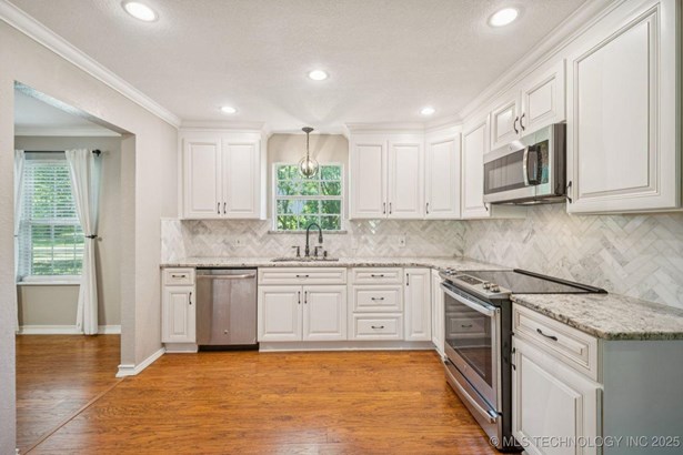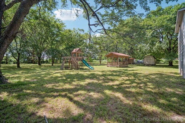 Beautifully updated 3 bed, 2.5 bath home on nearly 5 acres in River Valley Estates II - no HOA and plenty of room to roam! This ranch-style retreat offers vaulted ceilings, two spacious living areas, and an open floor plan perfect for entertaining. The kitchen shines with granite countertops, stainless steel appliances, and great flow. You'll love the oversized primary suite with a spa-like bath and walk-in closet. Bonus flex room makes a great home office, playroom, or workout space. Outside, enjoy the peace and privacy of mature trees plus a chicken coop, swingset, and storage building. Located in desirable Broken Arrow Schools - Spring Creek Elementary. Country living with city convenience - just minutes from town!