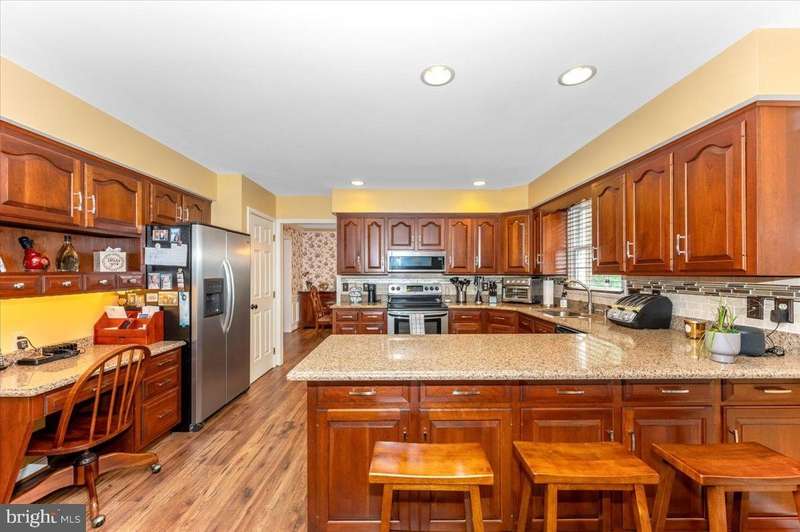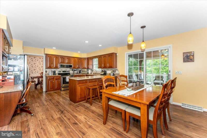 Welcome to your dream home in the highly sought-after Van Lear Community! This stunning all-brick Colonial sits on just over half an acre and offers the perfect blend of space, comfort, and timeless elegance. From the moment you step into the welcoming foyer, you'll feel at home. To your left, a formal living room flows seamlessly into a sophisticated dining room, complete with crown molding and chair rail detailing-ideal for hosting gatherings. The heart of the home is the chefs eat-in kitchen, featuring custom cherry cabinetry by ""Hess,""Â? gleaming granite countertops, stainless steel appliances, and an open layout leading into the sunlit family room with a cozy gas fireplace. Step outside onto the covered Trex deck-your outdoor living room-perfect for al fresco dining and relaxing. Upstairs, the luxurious primary suite offers a walk-in closet with built-in organizers and a spa-inspired en-suite bath with dual vanities and a spacious tiled walk-in shower. There are two additional generously sized bedrooms and a full bath with double sinks that complete the upper level. The finished lower level is equally impressive, providing flexible living space, ideal for guests or an in-law suite, featuring a bedroom with direct access to a second Trex deck and hot tub, a family room, kitchenette, powder room and laundry area. There is another room offering ample storage-including a dedicated workshop. Out back is your private oasis with a beautiful paver patio hardscape, gas fire pit, and two tranquil water features-all backing to serene woods for ultimate privacy. Perfect for entertaining. The oversized two-car garage with an epoxy floor, no detail has been missed. The roof and HVAC are just 2 years old. This home has been meticulously maintained, so you can move right in having peace of mind! Located just minutes from shopping, fine dining, and I-81, this home has it all. Don't miss your chance to own this exceptional property-schedule your private tour today!