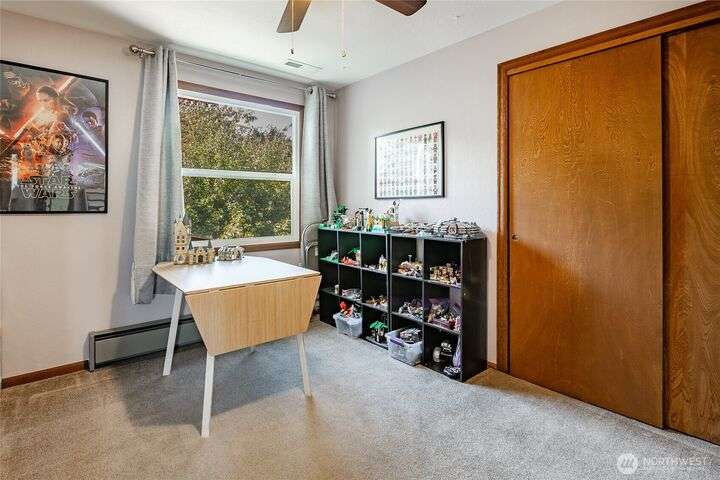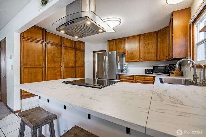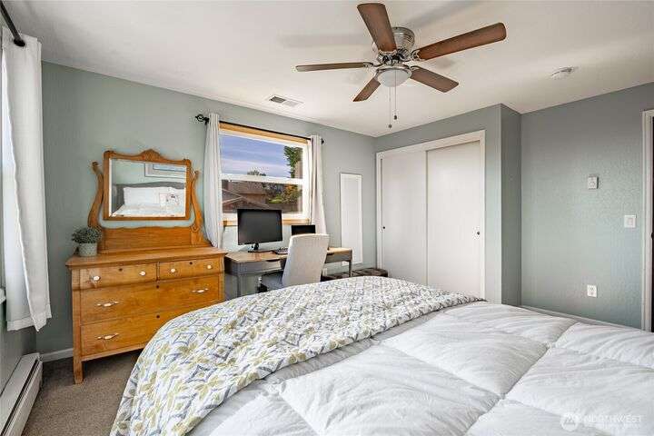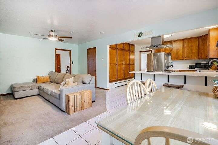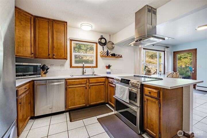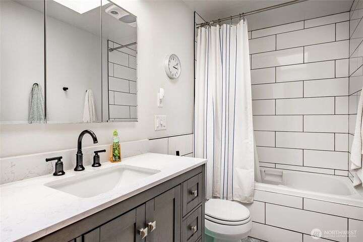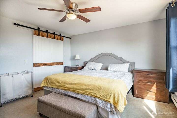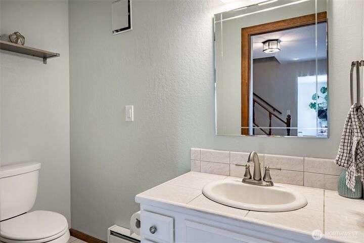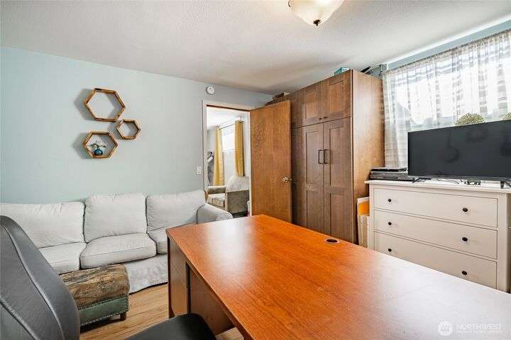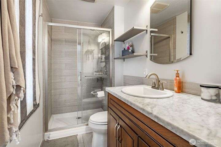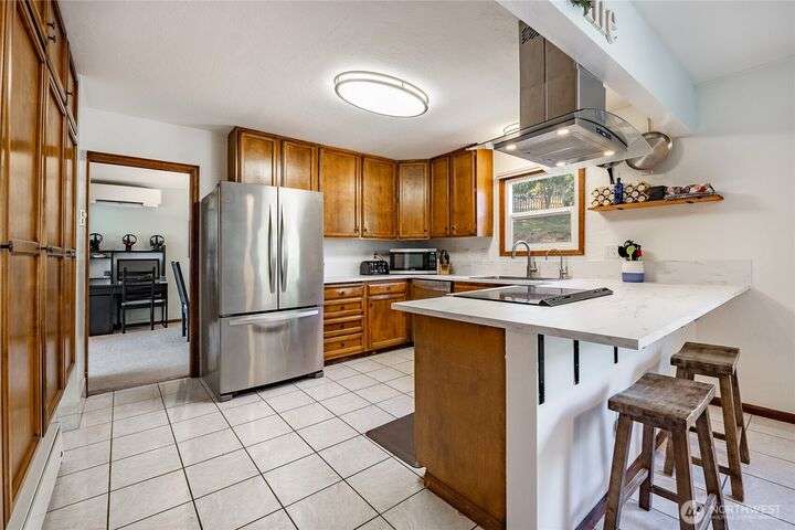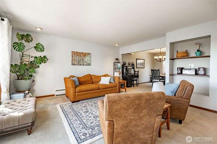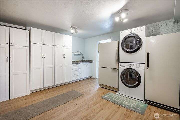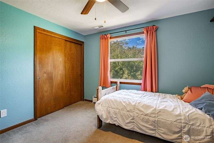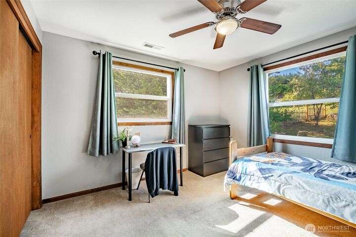 Wake up to breathtaking views of Galbraith Mt, Ferndale Valley, and the San Juan Islands from this spacious 5+ bedroom home! The main living room, rooftop deck, and primary suite all showcase stunning vistas. The finished 1,128 SF basement w/full bath and MIL plumbing offers flexible space for guests, office, or studio. Enjoy over a 1/4 acre w/ fruit trees, garden beds & room to entertain. The primary suite features an updated ensuite & walk-in closet. Updates include a partially remodeled kitchen w/ new range/oven, hood vent & countertops, ductless A/C & heat, efficient gas FP insert, new concrete driveway & stairs, engineered retaining walls, improved drainage, leveled yard & refreshed landscaping. Close to schools, shopping, parks & I-5.