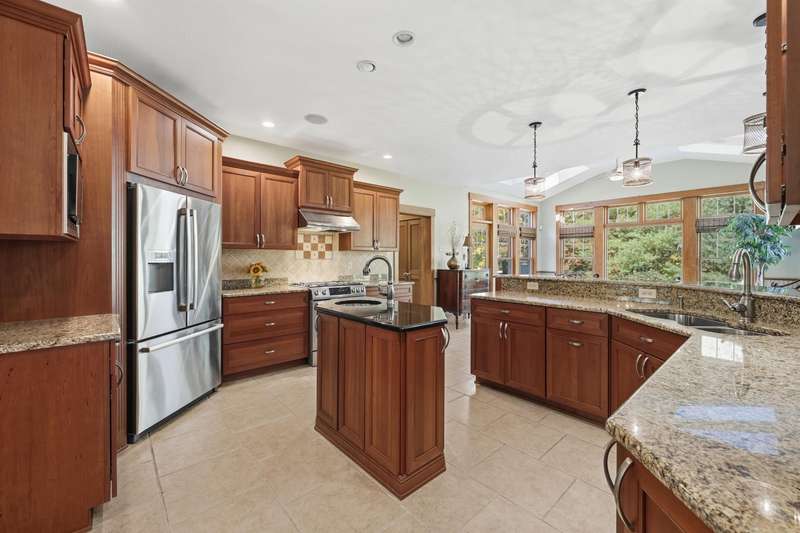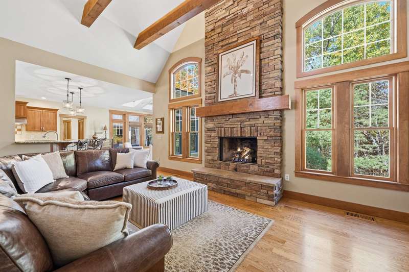 Welcome to 58 Tanglewood Drive, located in the desirable Tanglewood Estates in Nashua, NH! This exceptional 3-bedroom, 3.5-bath home offers style, space, and an unbeatable setting. The open-concept kitchen flows seamlessly into a stunning living room, where floor-to-ceiling windows frame the fireplace and exposed beams add warmth and character. Exit right from the kitchen onto your expansive back deck. It’s an entertainer’s dream featuring a custom-built pergola with a fireplace, TV center, and sunken hot tub, all overlooking serene conservation land. The first-floor primary suite provides a private retreat with double closets and a spa-inspired bath complete with a soaking tub. Upstairs, you’ll find two additional bedrooms, a full bath, and an unfinished bonus room currently used as a gym, offering potential for a future fourth bedroom. The fully finished lower level is the ultimate game-day getaway, featuring a built-in bar, full bath, office area, and walk-out access to the back patio. 58 Tanglewood Drive truly has it all! Thoughtful design, modern comfort, and a tranquil backdrop. Don’t miss the opportunity to make it yours.