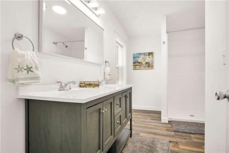 Beautifully renovated home in Chickahominy Haven a waterfront golf cart community that offers marina access, private beaches, a boat ramp and so much more! You will love the bright and open floor plan with new stylish laminate flooring throughout. This 3 bedroom, 2 bath home plus flex room offers a primary bedroom with new bath featuring a double vanity and an oversized shower. 2 additional bedrooms and the office /flex room are on the other side of home with another updated full bath. Family room opens to dining area and brand new kitchen with stainless appliances! Enjoy relaxing on your nice sized deck that overlooks a big back yard with shed. New heat pump with duct work, water heater and new roof in 2022. Whether you are looking for a full time residence or a peaceful weekend getaway, this is the place for you! Come take a look and fall in love with the lifestyle Chickahominy Haven has to offer!