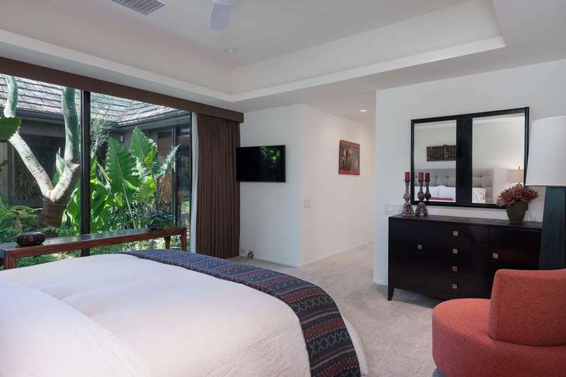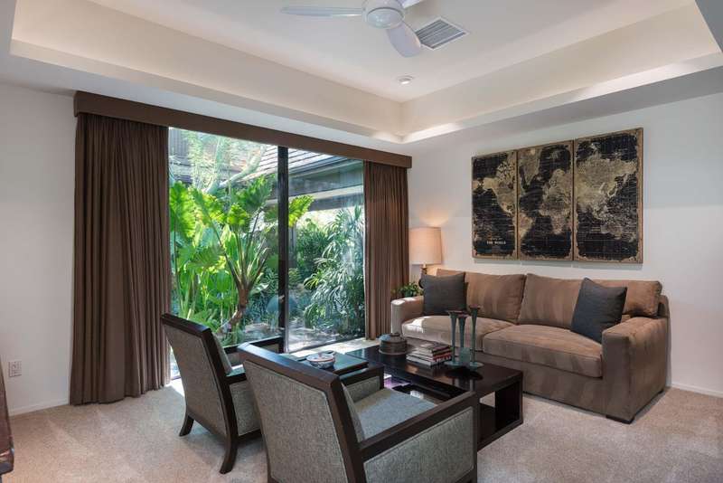 *LEASED OCT 2025 AND JAN-APR 2026* This completely remodeled 3 bedroom/3 bathroom home is a unique free-standing property is completely private and secure. The lush, semitropical landscape allows for a calming verdant environment. The west facing mountain views allow for glorious sunsets are nightly. A commercial grade, high pressure misting system surrounds the outdoor living area, ensuring comfort on hot days. The house also includes a state-of-the-art sound system throughout the indoor and outdoor entertainment areas. The house interior includes raised ceilings, distinctive large skylights and designer lighting throughout the interior and landscaped exterior. The dcor is distinguished with colorful accents, original artwork and unique antiques throughout the home. The home provides vast entertaining areas including an entry foyer, large living and dining rooms, a separate kitchen dining area, and family room, an open kitchen and a kitchen bar accommodating six persons. A additional full-service bar is located adjacent to the entertainment areas. There are two secluded principal bedrooms including walk-in closets, completely renovated bathrooms and in-room bar refrigerators. A third bedroom is multi-purposed as an office, or guest room. A state of-the art sound system provides for smart and seamless entertainment, indoor and outdoor. A two car plus golf cart garage provides for plenty of parking. Come enjoy the full amenities and security provided by The Springs CC.