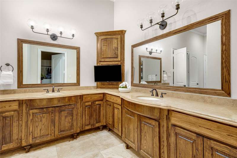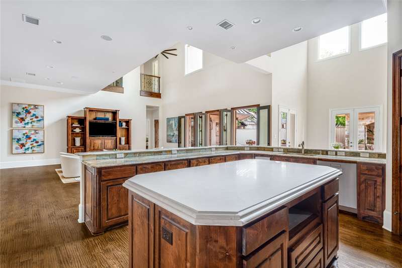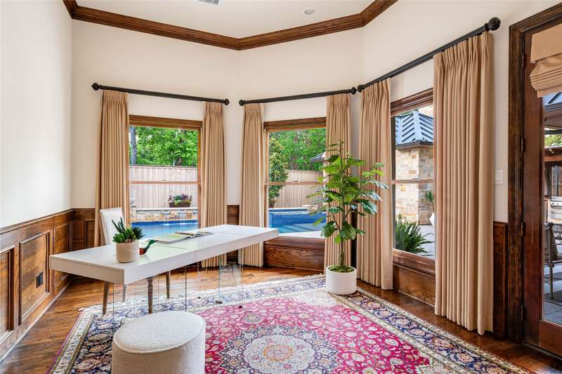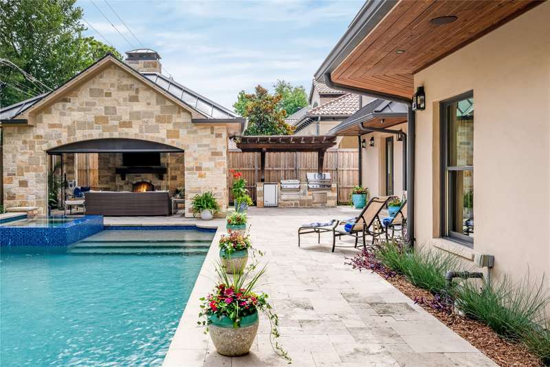 Modern luxury and beautifully updated, with timeless stone facade and move in ready, in one of the best blocks in Preston Hollow. With the front exterior that was completely transformed by Rosewood Homes in 2020, the front exterior radiates soft contemporary charm, setting the tone for the thoughtful improvements throughout. Inside, a spacious and light-filled foyer opens to an oversized formal dining room. The two story great room offers both privacy and openness, seamlessly connecting to a gourmet kitchen complete with breakfast area, a butlers pantry, and a large walk in pantry perfect for storing food, appliances, and cookware. Entertain effortlessly with triple French doors that lead to a true backyard oasis that was completed in 2017: an expansive patio, a 40 foot heated pool with tanning ledge, and a covered cabana featuring retractable screens, a wood burning fireplace, TV, and a stone outdoor kitchen with grill and warming drawer, breakfast station with side burners, refrigerator, and ample storage.The luxurious downstairs primary suite enjoys views of the backyard, a generous sitting area, and a spa-inspired bath featuring dual vanities, soaking tub, separate shower, and a large walk-in closet. Also on the main floor are 2 dedicated offices, one with storage or safe room under the stairs. Upstairs, youll find four bedrooms, 3.5 baths, a media-game room, and an open game area with a balcony overlooking the great room. Every inch of this home reflects meticulous updates and care, including two recently replaced HVAC systems, 2018 roof replacement, new and refinished hardwood flooring throughout the main level, professional landscaping with drainage and irrigation systems, replaced tankless hot water heaters, upgraded LED lighting and designer chandeliers, interior and exterior security systems and whole house sound system. The 3-car tandem garage features epoxy flooring and LED lighting, with room for a lift! An excellent value in this desirable location.