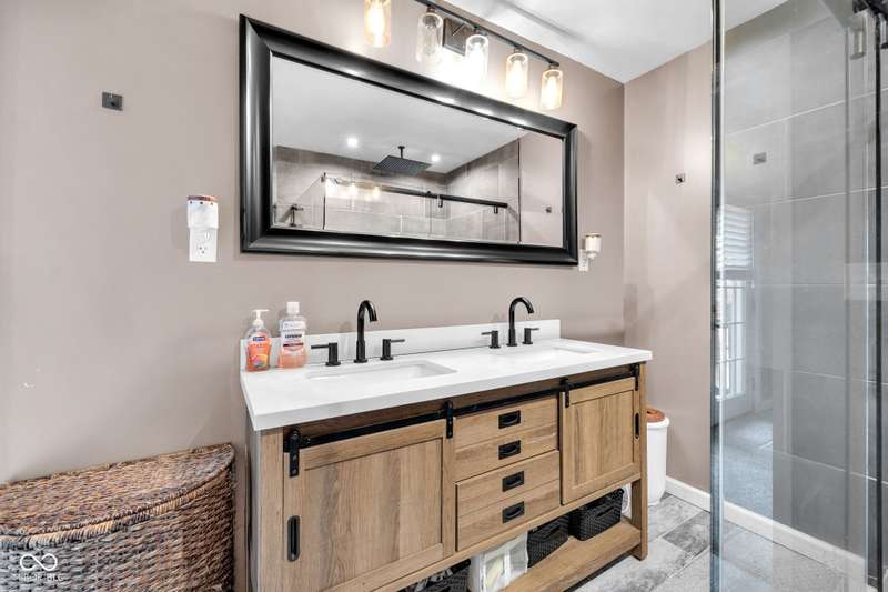 Welcome to this fully renovated showstopper, perfectly situated in the sought-after Washington Township. From top to bottom, this home has been thoughtfully transformed with high-end finishes and modern upgrades. Step inside to find brand new flooring, windows, doors, premium lighting, and fresh paint throughout. The kitchen is a chef's dream featuring sleek quartz countertops, new stainless steel appliances, pull-out cabinet drawers, built-in trash bins, and updated plumbing and hardware. The main level offers spacious living and dining areas, while the fully finished basement adds valuable living space with stylish molding trim and updated stair access to the kitchen and living room. The luxurious primary suite includes direct access to a private deck overlooking the expansive backyard-ideal for quiet mornings or evening entertaining. The completely rebuilt primary shower showcases new tile, shower pan, and fixtures. Additional updates include a newer roof, new furnace, new A/C unit, all-new electrical, premium water softener, and upgraded fridge. The garage features added storage and a custom workstation. The updated laundry room comes equipped with a washer and dryer, folding tabletop, and refreshed cabinetry. Enjoy the massive lot with a spacious roundabout driveway-perfect for entertaining with no parking worries. Premium blinds on the windows add comfort and privacy to this exceptional home. This is a rare opportunity to own a move-in ready home with every detail meticulously updated. Don't miss your chance to make it yours!