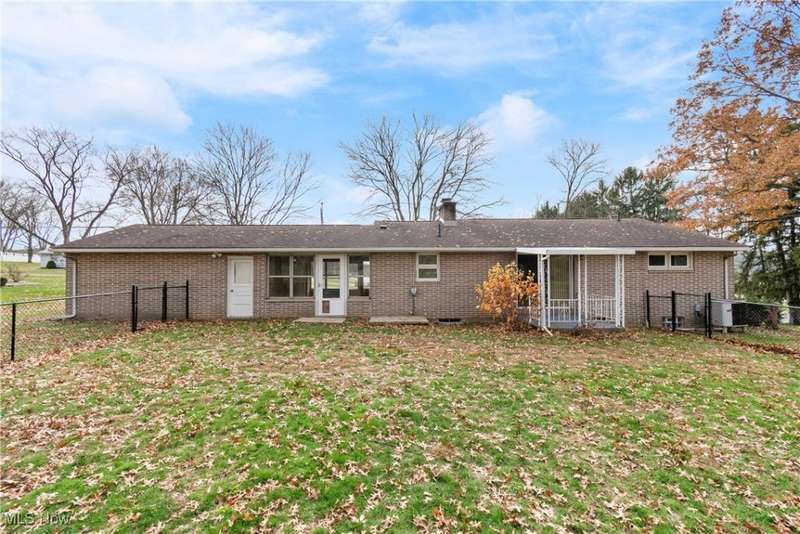 One floor living can be yours in this well-maintained brick home on a 1+ acre double, level lot! The spacious kitchen offers plenty of space that the the chef of the home will appreciate. Other features include large living room w/fireplace, hardwood floors under bedroom carpeting, dinette area, first floor laundry w/half bath, breezeway, partially finished basement w/fireplace, step-in shower in the basement, loads of storage in basement, radiant heat in each room plus a whole-house heat pump, and much more. Updates include roof '16, basement waterproofing w/transferrable warranty '24, refrigerator '25, fenced yard '24. Convenient location near Vet, Physician's Office, Bank, Pharmacy, Stores, and School Campus. Only 15 minutes to Canton, Dover/New Philadelphia, and 6 miles to I77 South in Bolivar or 9 miles to I77 North in Canton.