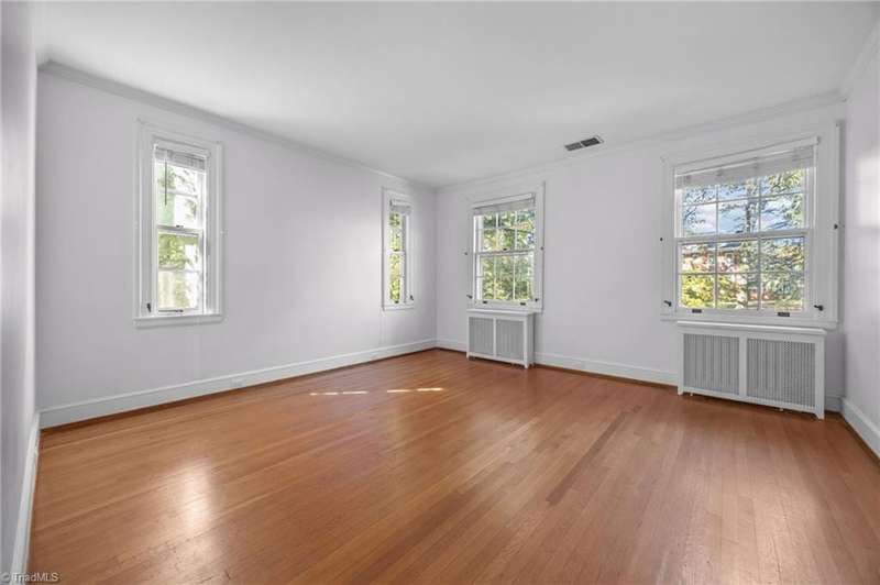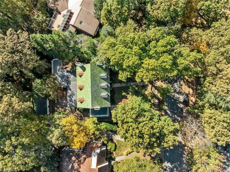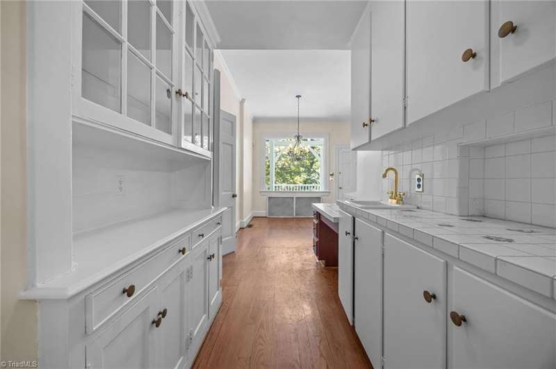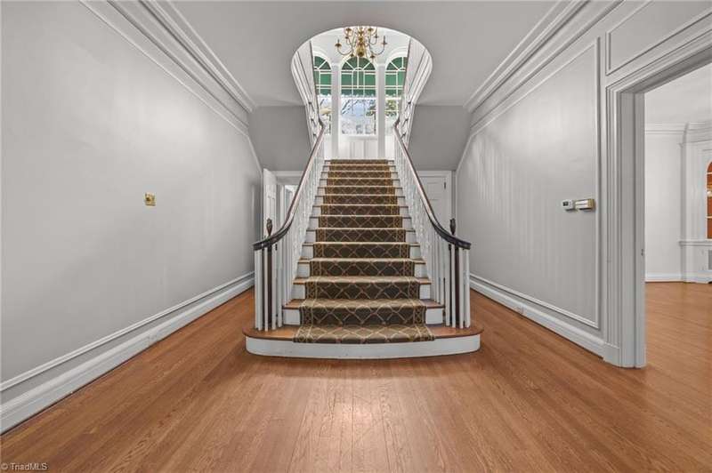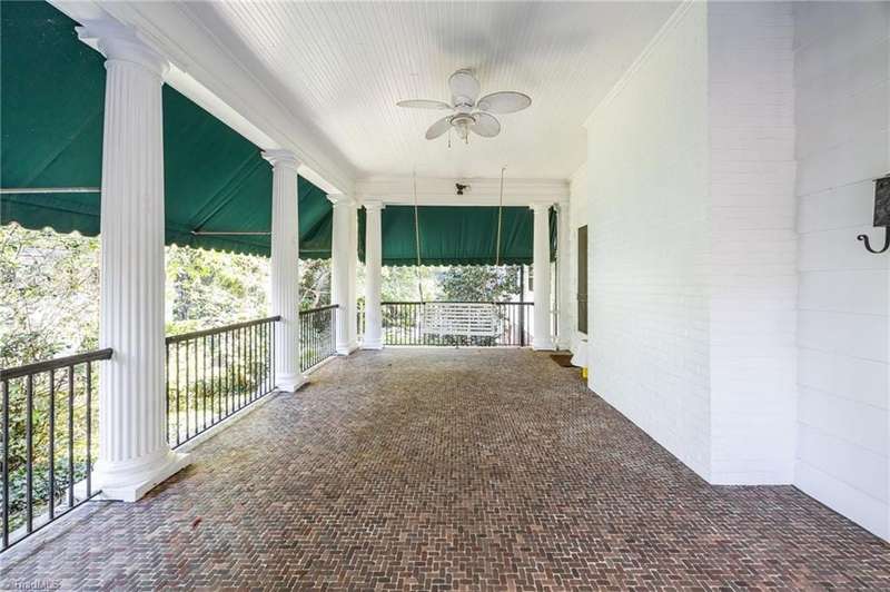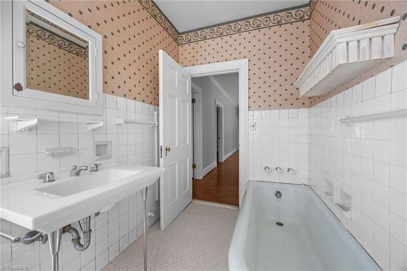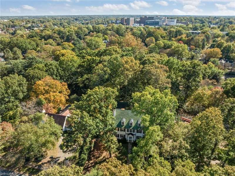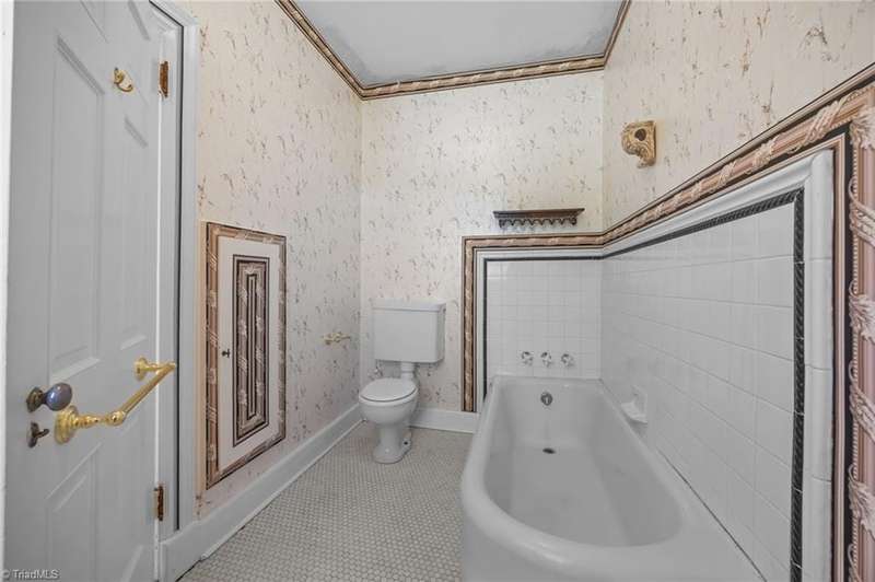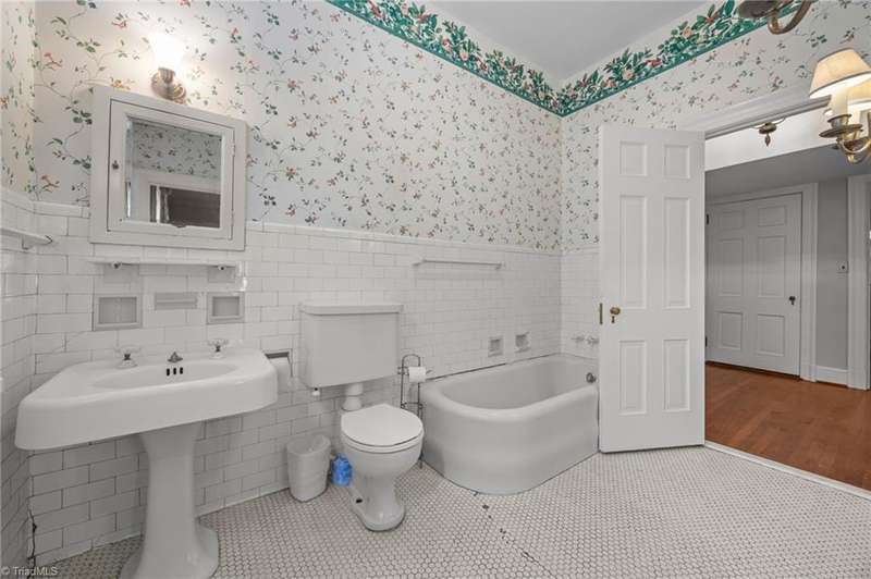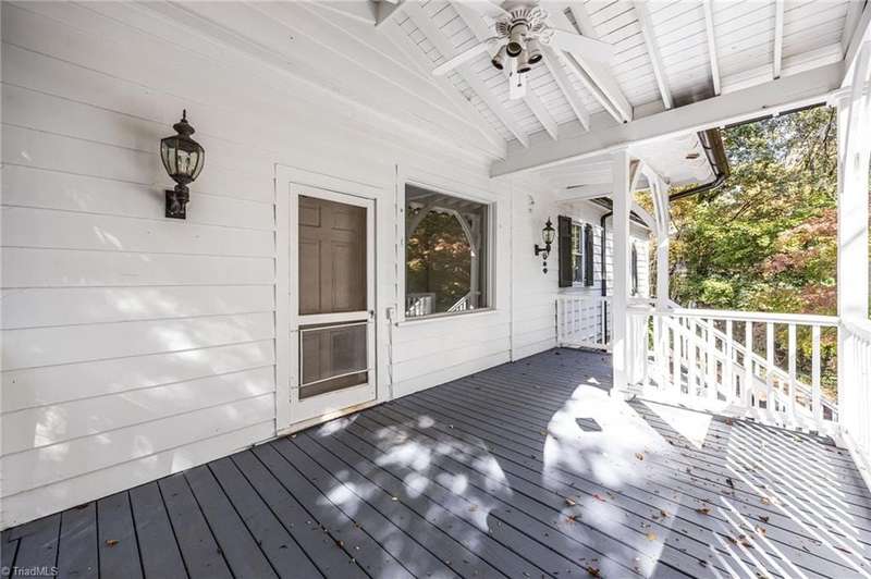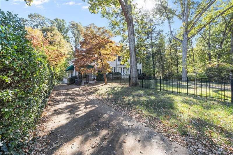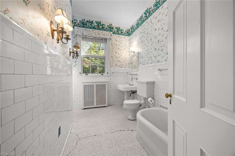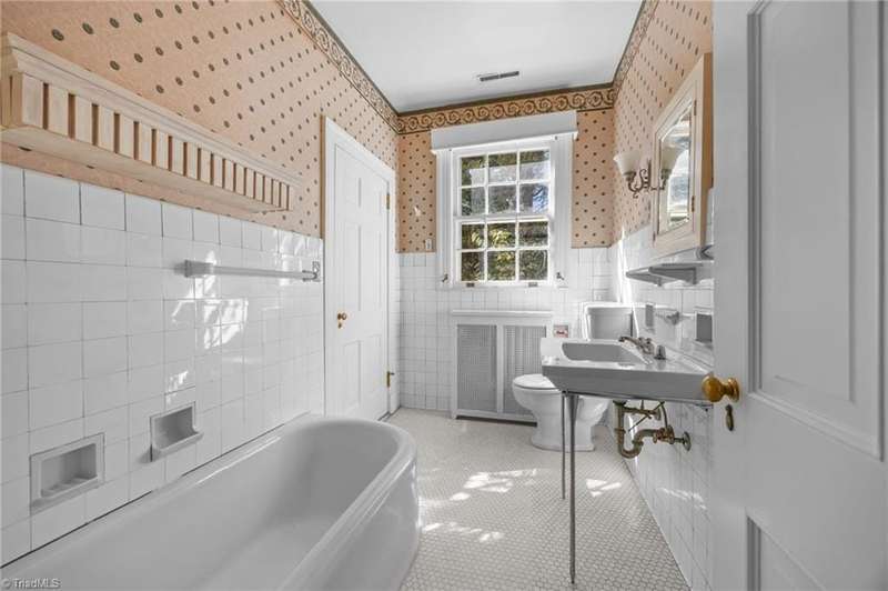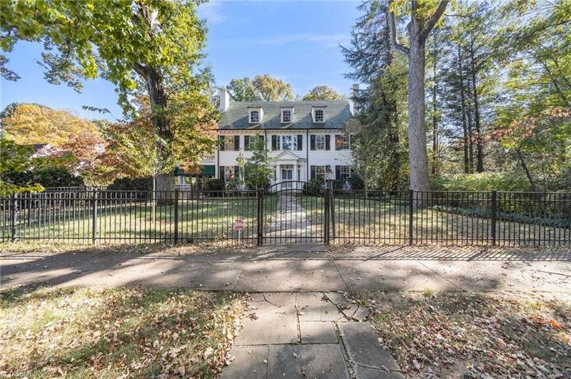 A true Winston-Salem architectural treasure. Endless charm inside and out with its classic white frame exterior, iconic green tile roof and stunning interior features like the grand entrance hall with its fabulous staircase, a gracious living room with elegant fireplace that opens to an inviting tiled porch. A paneled study with bookcases features a limestone fireplace. The formal dining room has handsome corner cupboards and opens to the butler's pantry and large kitchen. There is a main level bedroom with en-suite bath and four+ bedrooms upstairs plus a floored, walk-up attic with expansion opportunity and a full basement with even more possibilities. Another rarity is the detached three bay garage. First time available in almost 50 years!
