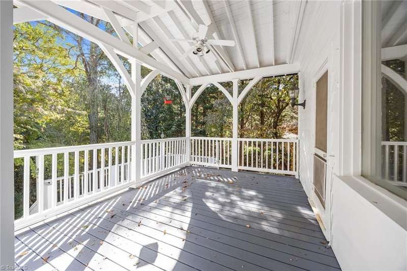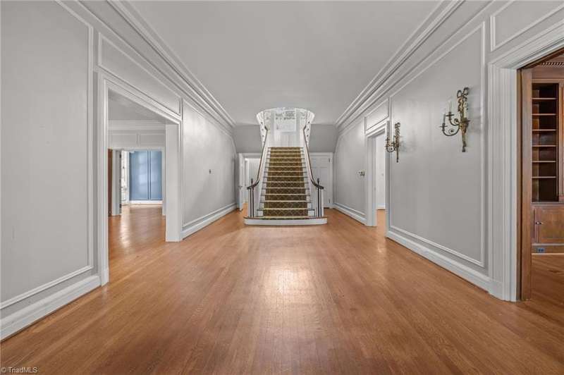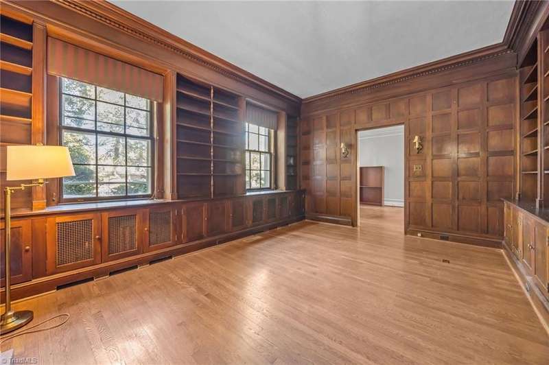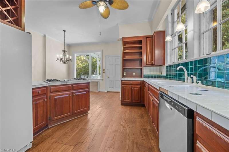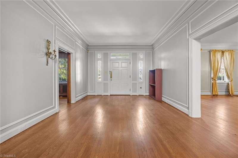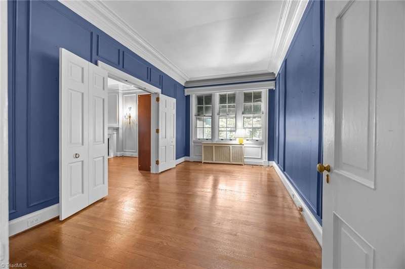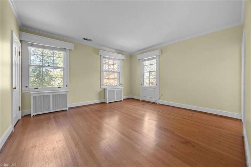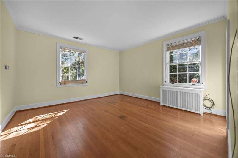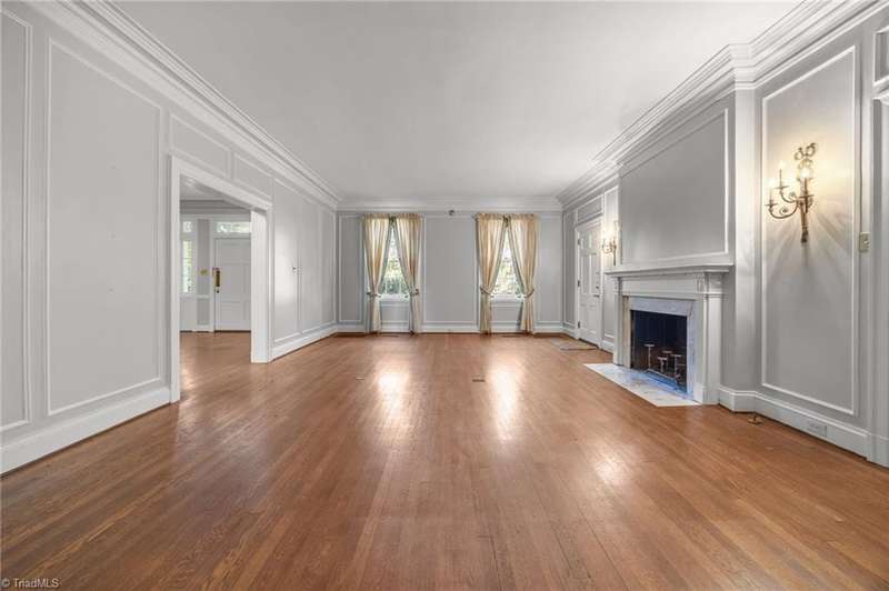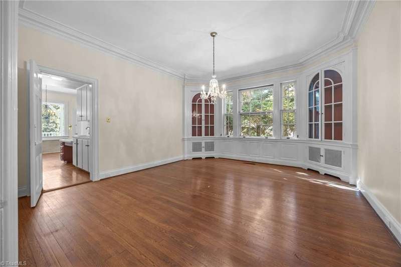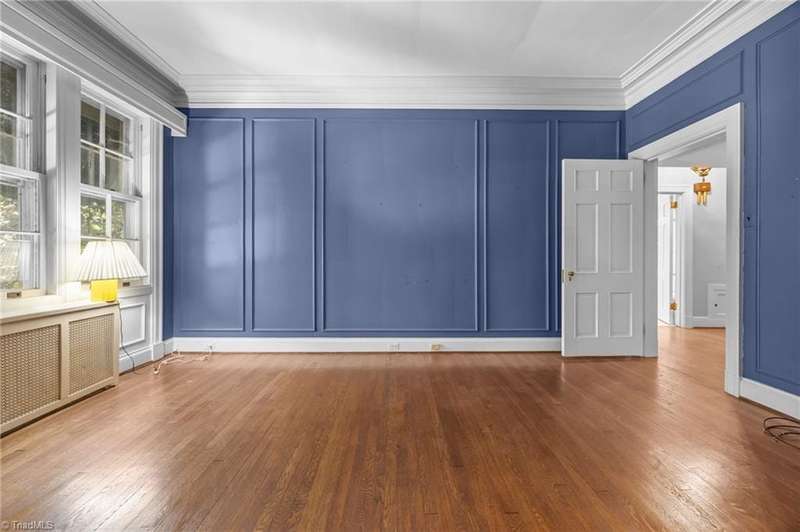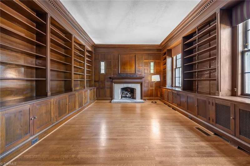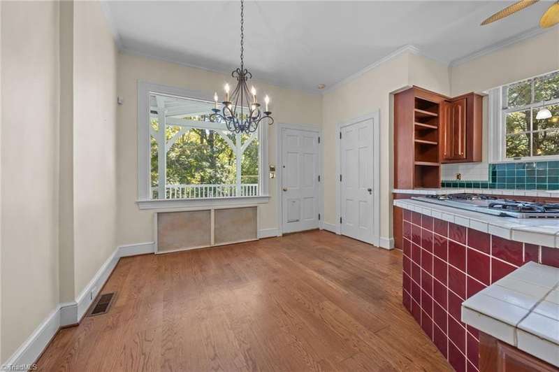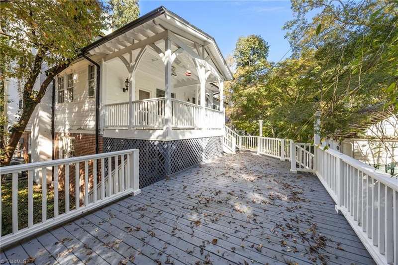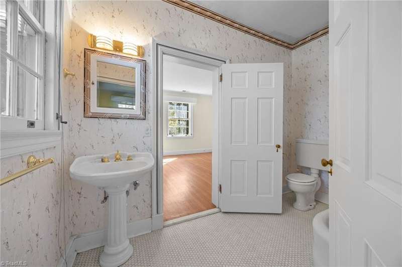 A true Winston-Salem architectural treasure. Endless charm inside and out with its classic white frame exterior, iconic green tile roof and stunning interior features like the grand entrance hall with its fabulous staircase, a gracious living room with elegant fireplace that opens to an inviting tiled porch. A paneled study with bookcases features a limestone fireplace. The formal dining room has handsome corner cupboards and opens to the butler's pantry and large kitchen. There is a main level bedroom with en-suite bath and four+ bedrooms upstairs plus a floored, walk-up attic with expansion opportunity and a full basement with even more possibilities. Another rarity is the detached three bay garage. First time available in almost 50 years!