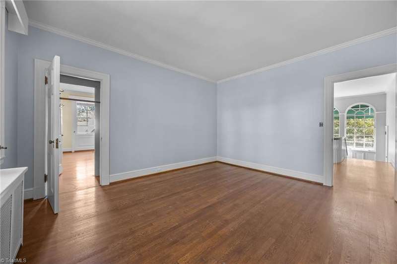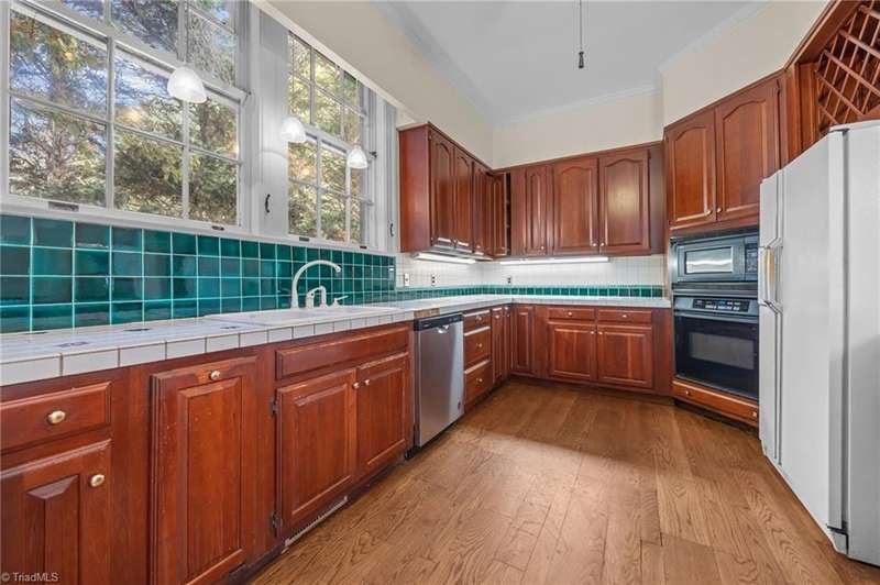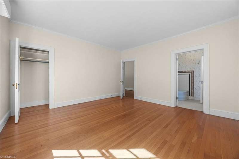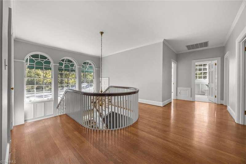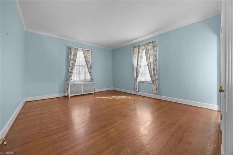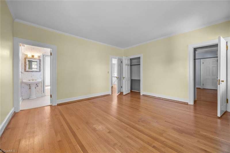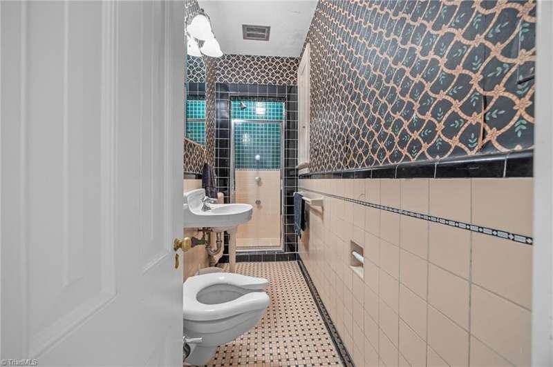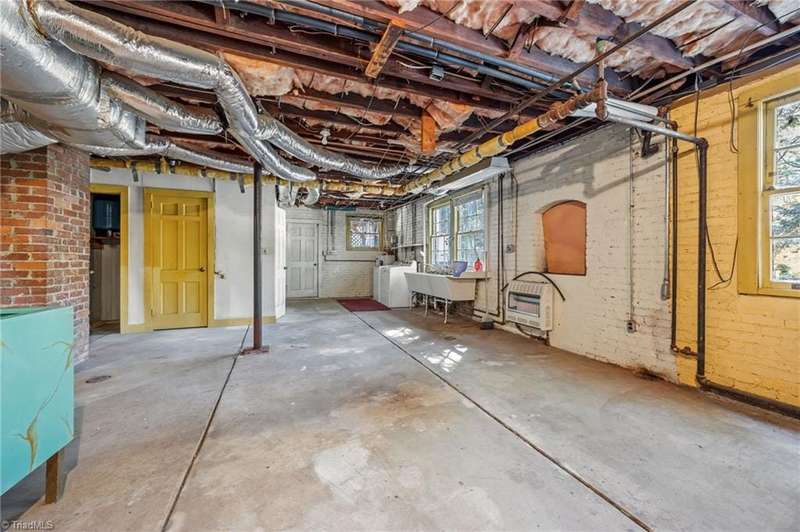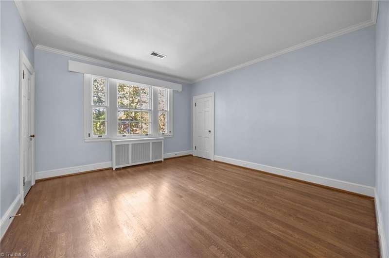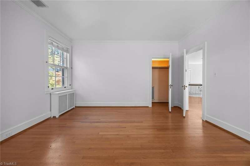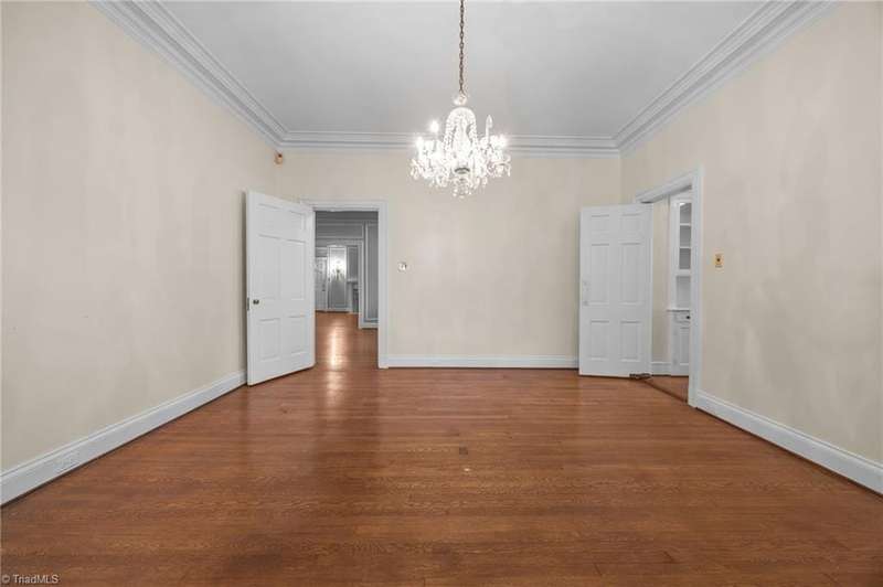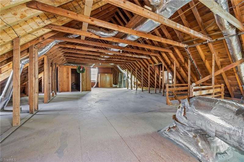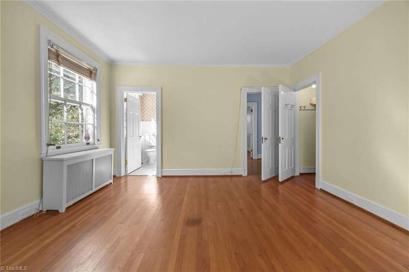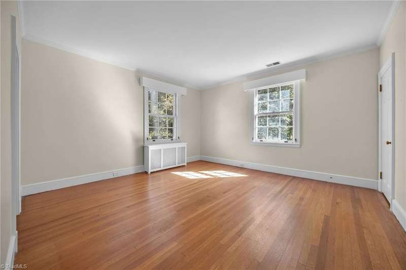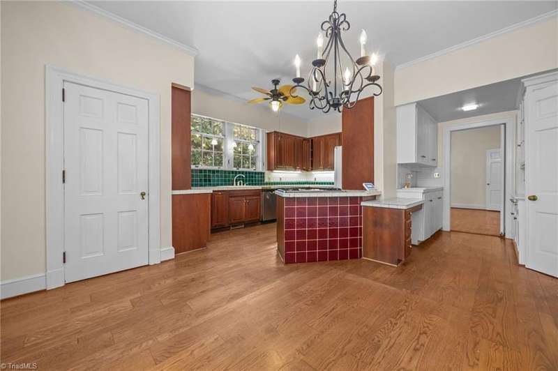 A true Winston-Salem architectural treasure. Endless charm inside and out with its classic white frame exterior, iconic green tile roof and stunning interior features like the grand entrance hall with its fabulous staircase, a gracious living room with elegant fireplace that opens to an inviting tiled porch. A paneled study with bookcases features a limestone fireplace. The formal dining room has handsome corner cupboards and opens to the butler's pantry and large kitchen. There is a main level bedroom with en-suite bath and four+ bedrooms upstairs plus a floored, walk-up attic with expansion opportunity and a full basement with even more possibilities. Another rarity is the detached three bay garage. First time available in almost 50 years!