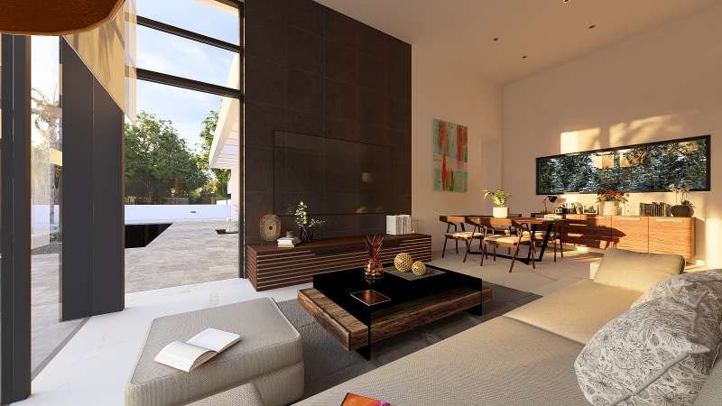 Inside, the villas feature bright, open-plan layouts with modern design and high-quality finishes. Interiors include porcelain flooring, fully fitted kitchens with compact countertops, stylish bathrooms with suspended toilets and monobloc taps, central air conditioning, underfloor heating in bathrooms, and built-in wardrobes. Large windows and terraces extend the living area outdoors, creating a bright, elegant, and comfortable home.