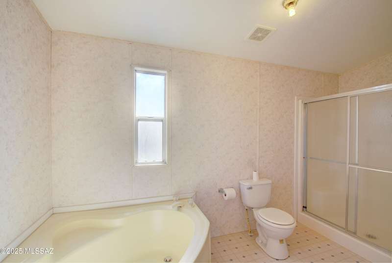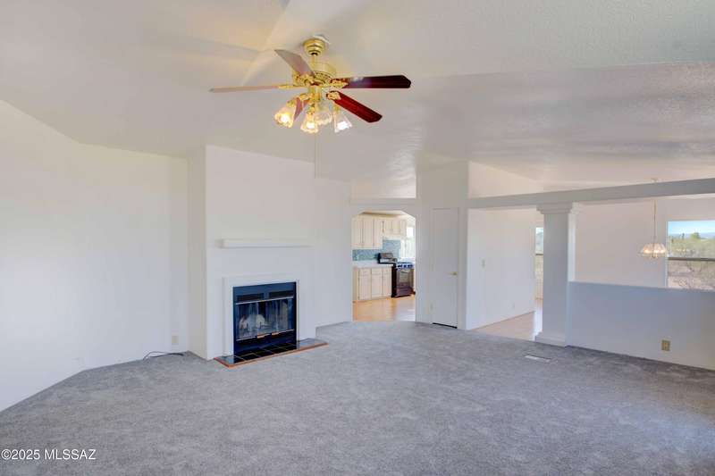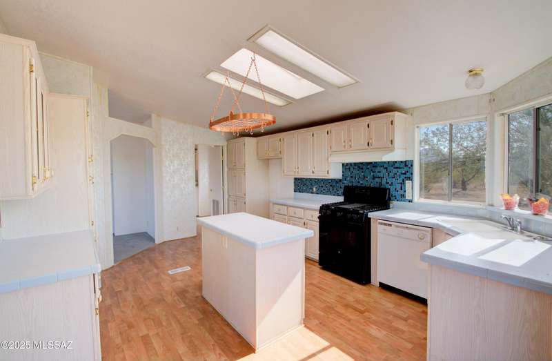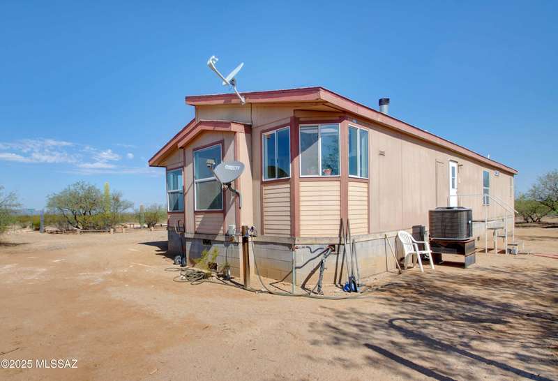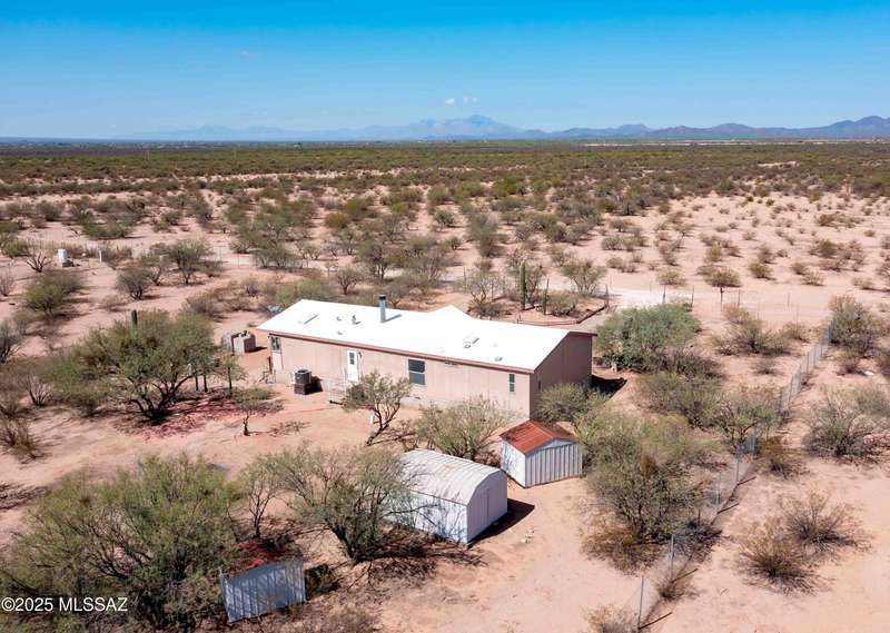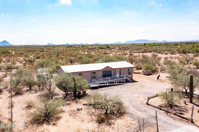 Experience the beauty, space, and serenity of off-the-grid, desert living with this updated 3-bedroom, 2-bath, 1,820 sq ft manufactured home, situated on 4.19 fully fenced acres. Affixed home has a ramp for easy entry. Recent updates include new HVAC, water heater, and roof coating, plus brand new carpet and interior paint. This home is truly move-in ready! Inside, you'll find a spacious living room anchored by a wood-burning fireplace, large dining room & spacious kitchen. Step outside to enjoy stunning mountain views, sunsets, and a the night sky filled with stars. The fully fenced 4+ acreage offers the freedom to create your ideal lifestyle. Whether you're seeking a peaceful retreat, space to spread out, or a home that's been well cared for & updated, this home offers it all!