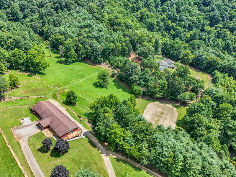 Flood Zone X (Minimal Flood Risk). Incredible 240 acre farm in Buncombe County with breathtaking mountain views for miles, including Mt. Pisgah! This meticulously maintained property has approximately 1.5 miles of paved driveways, 6+ miles of maintained trails for hiking/horseback riding/ATV use, a 17-stall barn with tack room, a 3-BR barn apartment, hay storage, a pond, a pole barn, a 3562 square foot main house, and a mix of cleared pastures and woods. The main house has an elevator, 2 fireplaces, large bedrooms, and some of the best views in Western North Carolina from the covered porch and main level rooms. The barn apartment has a 2-car garage, 1856 square feet of recently renovated living space, and amazing views from the deck. There are multiple building sites that will also have spectacular views. A rare offering for such a large tract so close to Asheville, this private estate is ideal for equestrian use, events, hunting, and more. Gated road for complete privacy and security.