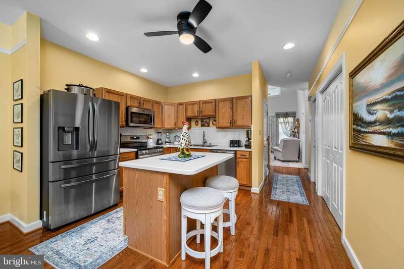 Little Falls Village is a desirable 55+ neighborhood that is conveniently located in Wilmington with easy access to Wegman's, popular shops, restaurants and services in Hockessin, Pike Creek or Greenville. Located on Niagara Falls Drive, towards the end of the cluster, near the mailboxes and guest parking, this townhome backs to the woods which offers a peaceful and quiet backyard. With thoughtful and stylish updates in recent years, this is truly move-in-ready! From the charming front porch, enter the front door where you are welcomed into a bright, spacious great room with cathedral ceilings and large windows. The flow from here is easy, one-floor living; the entrance from the garage, a powder room, laundry, eat-in kitchen, primary bedroom and primary bath are all on this level. The kitchen has hardwood floors, oak cabinets, a bead board backsplash, an island with seating, solid surface countertops and brand new stainless steel appliances. The kitchen is open to the dining area which can be set up in a variety of configurations - if you want a large table with lots of seating or a small table and a sitting area, this room offers versatility to do whatever you want, plus has a corner gas fireplace for ambiance and warmth. A large deck allows you to take in the fresh air and wooded views. The primary bedroom suite has a high tray ceiling, a cozy window seat, two closets, and a large renovated bathroom. The bathroom features a double vanity with marble countertops and a new marble-tiled curbless shower. The basement has been partially finished providing additional finished living space, while also maintaining plenty of room for mechanicals and storage. From this level, you can step out onto the lower level patio that has views of the woods. On the second floor, there is an open loft space which can be used however you'd like - as an office, a den, a craft room, etc. The second bedroom is large, with a huge walk-in closet, and en-suite bathroom. Beautiful new light fixtures have been added throughout, with all rooms painted in 2024. In 2023, the prior owner replaced several windows and the slider to the patio. In 2021, they installed a new composite deck and retractable deck awning. In 2016, the HVAC was updated and the hot water heater was replaced. If you've been looking for a beautiful home in Little Falls Village, this is a fantastic option that won't last long!