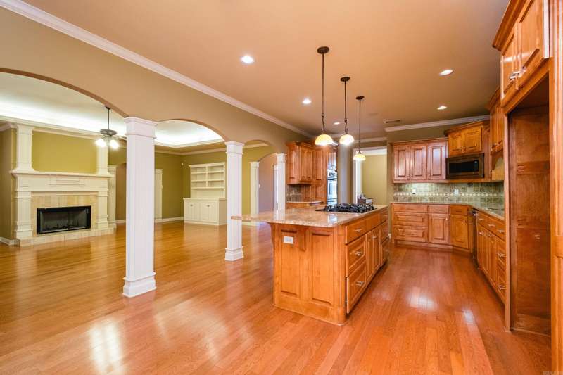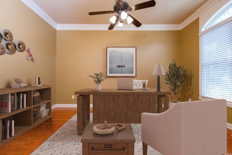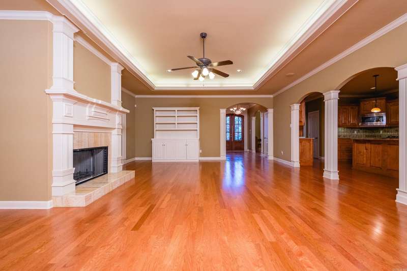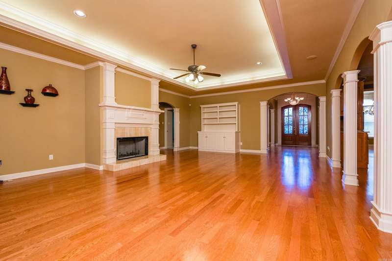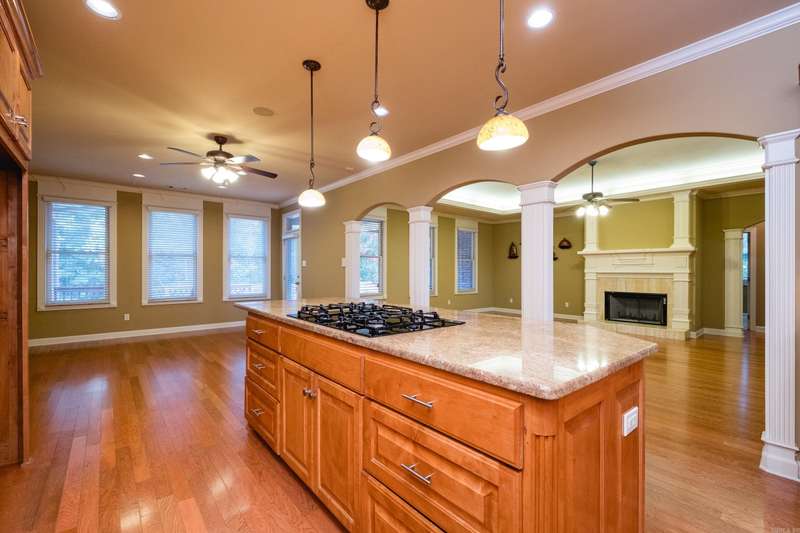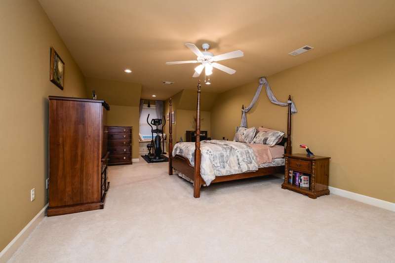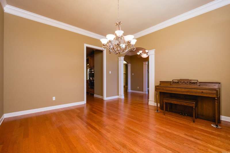 Marvelous traditional home offering a spacious and functional layout perfect for everyday living and entertaining. A large foyer opens to a formal dining room and a flexible space that can serve as a formal living room or home office. Fantastic kitchen featuring custom wood cabinetry, double ovens, a gas cooktop, ample counter space, a large center island with breakfast bar, and an informal dining area that opens to the family room with a gas log fireplace and tray ceiling with indirect lighting. The split floor plan includes a private primary suite with a spacious spa like bath, plus a separate guest bedroom and full bath as well as laundry. Two additional bedrooms share a third full bath, all on the main level. Upstairs includes a large bonus/game/media room, a fifth bedroom with full bath, ideal for guests or additional living space. Enjoy the outdoors from the deck with retractable awning overlooking the landscaped backyard, mature trees and green space. Extra storage can be found in the unfinished basement, walk-in attic, and generous closets throughout. Come see!