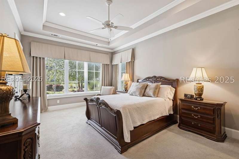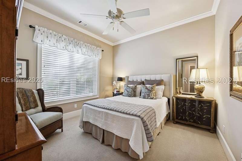 Built in 2015, this 2,800 sq ft home features 3 bedrooms, 2.5 bathrooms, and sits on a large homesite with plenty of room for a private pool. Enjoy beautiful golf-to-lagoon views from your backyard on the 2nd hole of Belfair's West Course. Inside, the open concept floor plan includes spacious living and dining areas filled with natural light. A screened porch with a wide pocket door slider extends your living space outdoors - perfect for entertaining or relaxing year-round. The home also features a multizone HVAC system, providing efficient climate control and comfort throughout. The unfinished bonus room over the 2.5 car garage offers excellent walk-in storage and can easily be finished for nearly 390 sq ft of additional heated living space. This property is ideal for buyers seeking a newer home in Belfair with golf course views, room to expand, and a private setting. Community amenities include two Tom Fazio championship courses, fitness center, tennis, pickleball, resort-style pools, walking trails, a great location within Bluffton and minutes to Hilton Head Island.