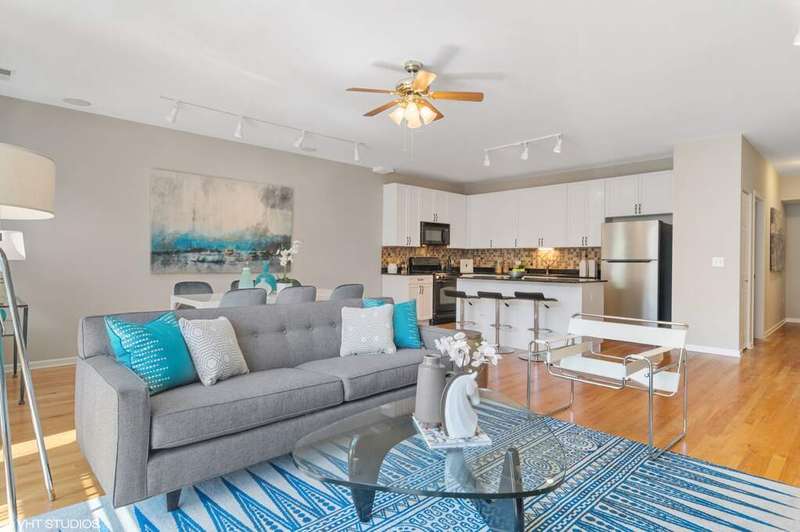 ONE OF THE WIDEST FLOORPLANS IN ALL OF UNIVERSITY VILLAGE! Beautiful and rarely available unit offering an expansive open-concept living, dining, and kitchen layout-ideal for entertaining. Features include HARDWOOD FLOORS THROUGHOUT, LARGE WINDOWS, WALK-IN LAUNDRY ROOM, and SUNNY TREE-LINED VIEWS that bring in great natural light. Secure building with CONTROLLED FRONT ENTRY. Prime location just minutes from UIC, the LOOP, PUBLIC TRANSIT, EXPRESSWAYS, and all the shopping, dining, and grocery options University Village has to offer.