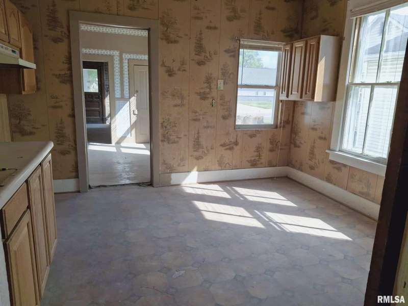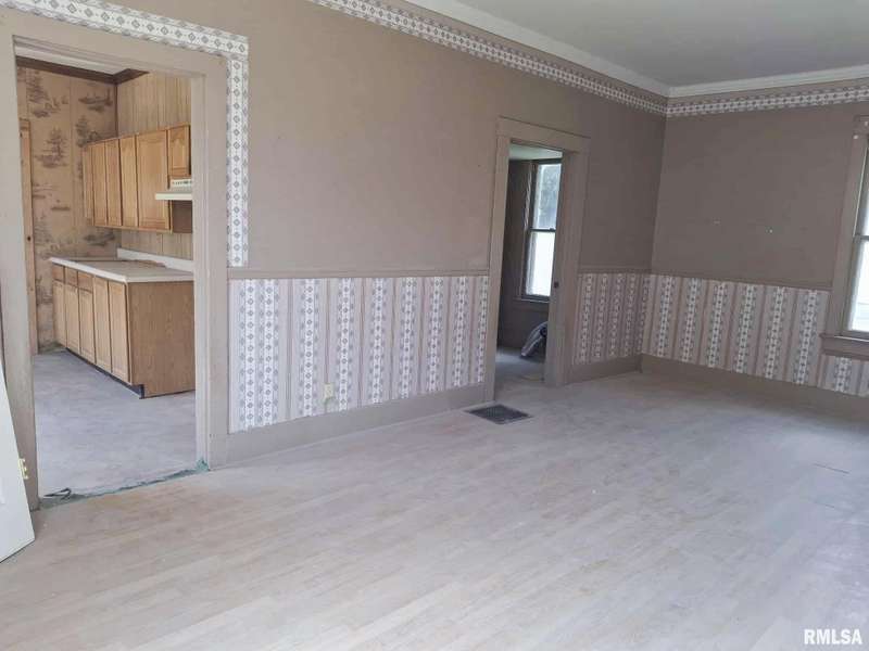 This 3 bedroom 2-story home has lots of room for you to make it to fit your needs. Main floor has laundry, 2 baths, formal dining room, kitchen, living room and dining room. Three bedrooms upstairs. Seller opened up two rooms to make one large bedroom. Previously was a bath upstairs that could be replaced. Laundry on main floor in 2 places. Outside service entrances are live but no wiring hooked up inside. Plumbing not connected. Seller has done much of the removal of the old walls and fixtures (ready for you to finish as you like). Upstairs windows are newer. Floor plan on main and upper can be re-arranged to fit your needs as you finish remodeling. Seller had planned to use radiant heat upstairs and GFA downstairs. Listing "Sold As Is" with no warranties,