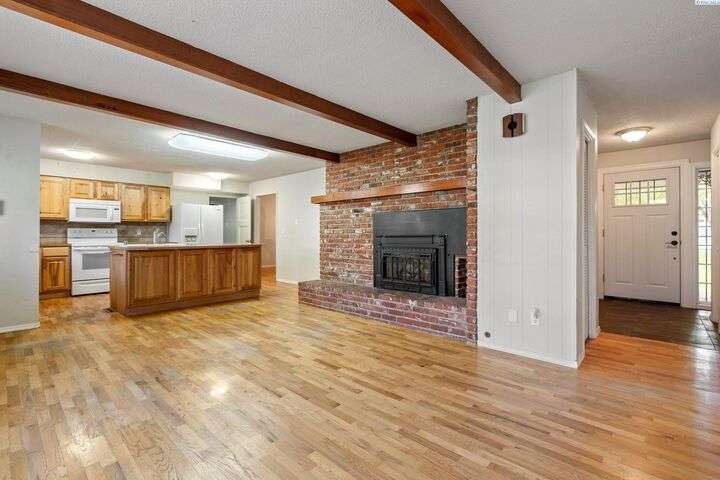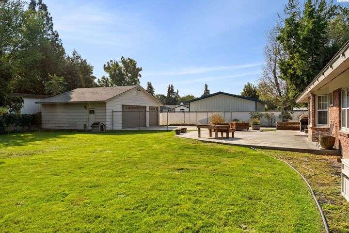 MLS# 288225 North Richland Living – Charm, Comfort & Convenience! Discover this lovely home perfectly situated near the Columbia River and Hanford High. This home offers both comfort and functionality. Key Features this home has to offer: Three Car Garage/shop with workspace – ideal for projects or extra storage, New Roofs (1 year old) on both the home and shop for peace of mind, 2-Year-Old HVAC System for year-round comfort. There are original Hardwood Floors throughout the home. You will also find a spacious Utility/Laundry Room, abundant storage, propane fireplace with owned exterior tank and closets with Automatic Lighting for added convenience. Step outside to a large fenced backyard with a generous patio—perfect for BBQs, gatherings, or simply relaxing. Out front, the mature trees and large yard add natural beauty and lovely curb appeal. This North Richland gem blends classic charm with modern updates—making it a wonderful place to call home!