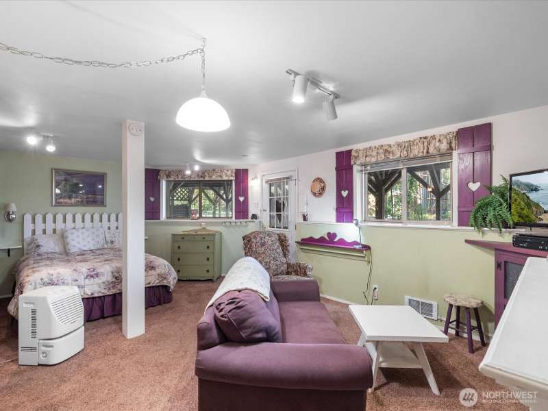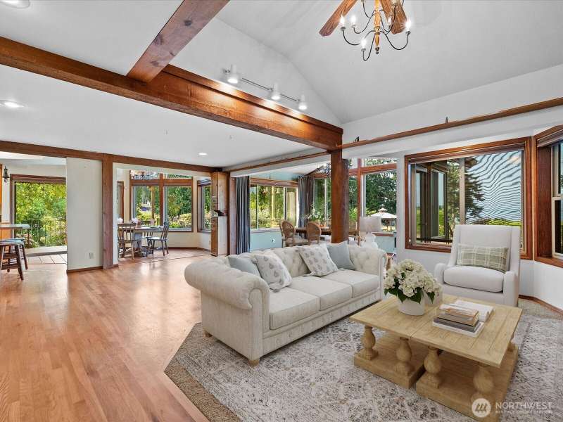 Own a piece of Whidbey Island history with, "The Farmhouse". Established in 1987, it still holds its charm and status to this day. With a spacious floor plan, unique open beam ceilings, and custom B&B spaces, you can live quietly and peacefully on this 2.5 acres and take advantage of the cottage suites. The lower level is equipped with back access to the units for security and privacy. The oversized shop with high ceilings is perfect for all your projects, toys, or indoor party hosting. Beautiful landscaping and pastures provide opportunities for venue space, private enjoyment, or the addition of animals. Relaxing is easy with mountain and ocean views overlooking Sunlight Beach. The freshly paved road guides you home!