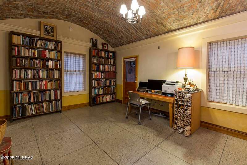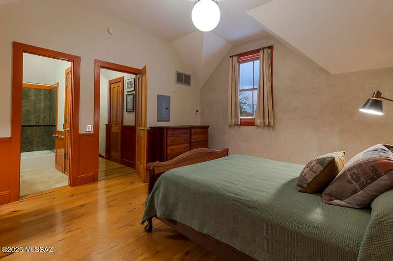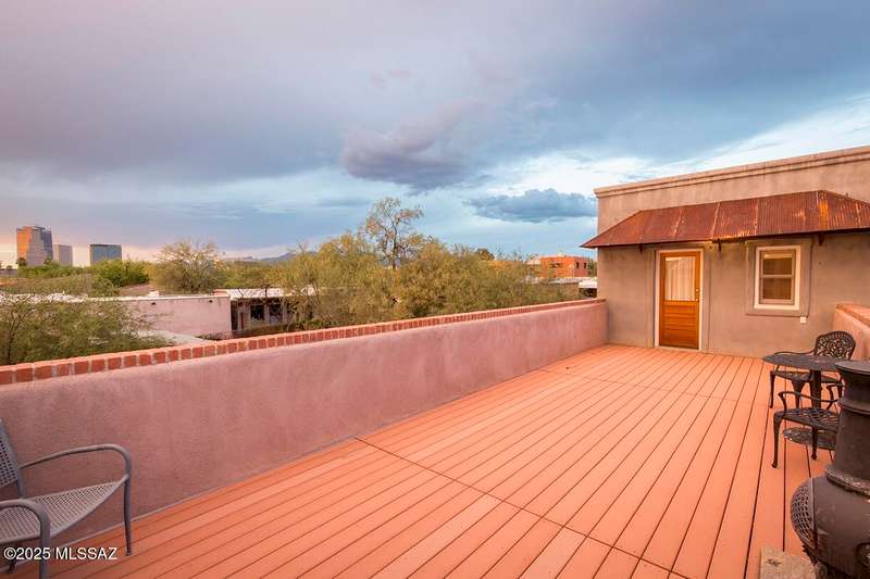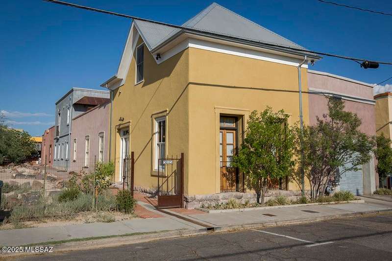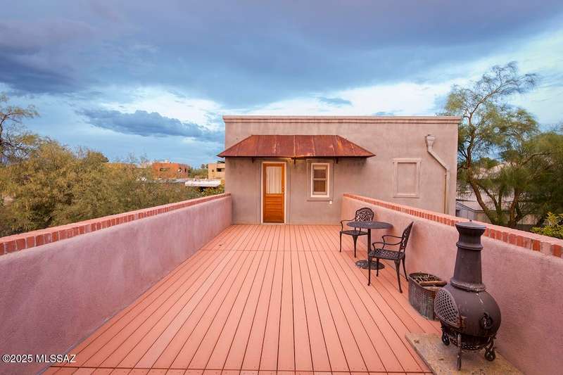 Stunning luxury living in Tucson's oldest barrio! Gorgeous spacious Barrio Libre home by the barrio's master builder, David Carter, for their own personal residence. Mikey block construction, looks and feels like adobe, even better insulating qualities. Finished with many historic materials (from local churches, Mt Lemmon trees harvested after the fire, saguaro ribs from our desert). Two stories and three bedrooms with full baths, each en suite. Downstairs primary suite features hand-laid brick domed ceiling. Lush, ultra-private courtyards with fruit trees, a rooftop deck connecting upper bedrooms. A rare treasure property feels 125 years old, yet has none of the restoration concerns of most Barrio Viejo homes. David Carter pays ultimate homage to the history of his neighborhood.