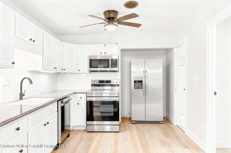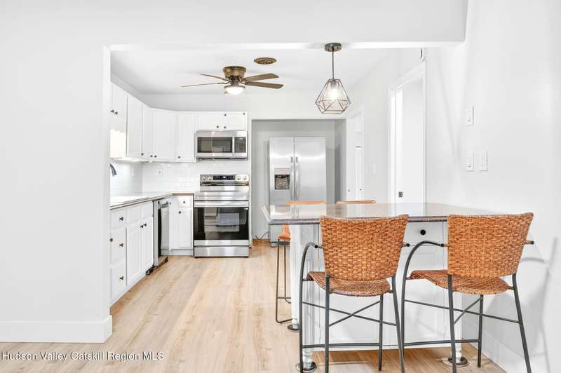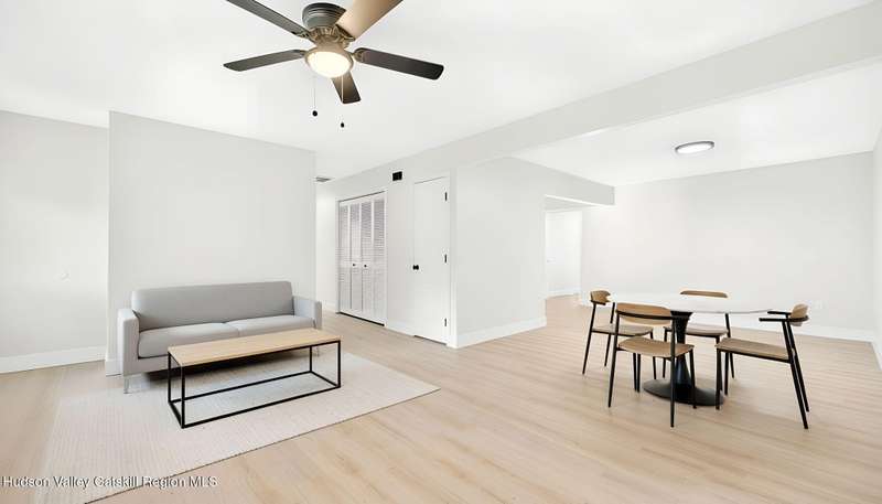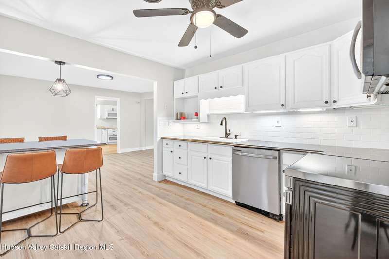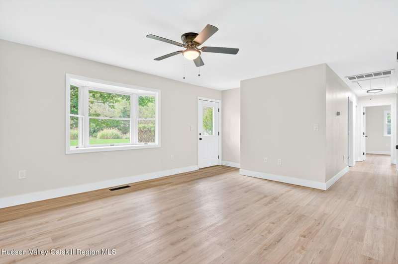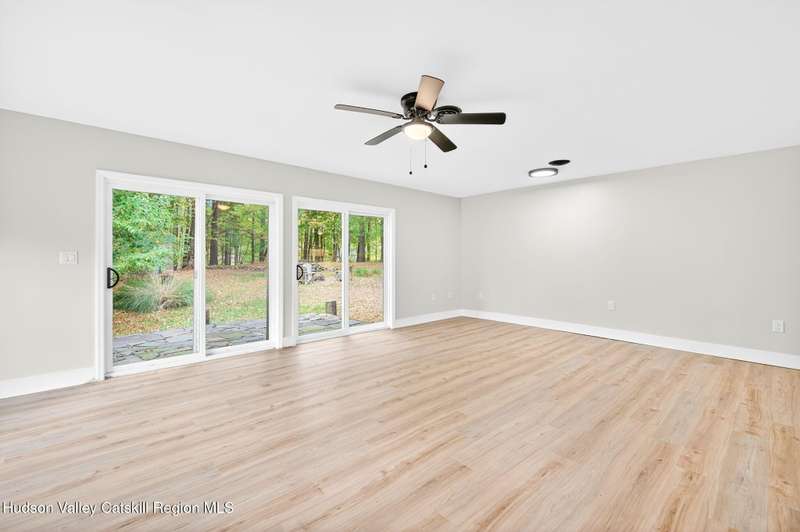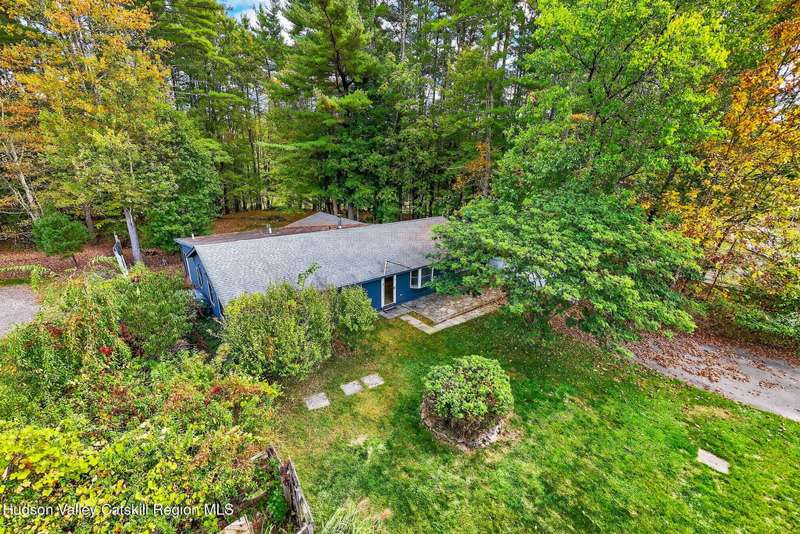 Ideal Woodstock living! This lovely 4 bedroom 3 bath private ranch is set back from the road on a quiet cul-de-sac just 3 minutes outside of the village of Woodstock. You enter and the first living space is on your right with space for a charming seating area. To your left are two bedrooms, a hall bath and a primary en suite. Through a door in the living room, you pass into a space ideal for an office, a Mother/Daughter suite or multi-generational living with a large seating area, bath one formal bedroom and a second room which can be additional sleeping space for guests or a studio. This area of the home has two private entrances. Off of the main living room is a large dining area leading into the spacious kitchen with all new appliances and more storage than anyone could fill! Beyond the kitchen is an enormous entertaining room with 3 sets of sliding doors that lead to the beautiful and private back yard and patio. Enjoy cool evenings around the fire pit! This home is close to all that Woodstock has to offer, including the Ashokan Reservoir and Rail Trail with its magnificent views! You are also a short drive to all the major roadways, shopping, galleries, hiking, and entertainment. This home is a must see!