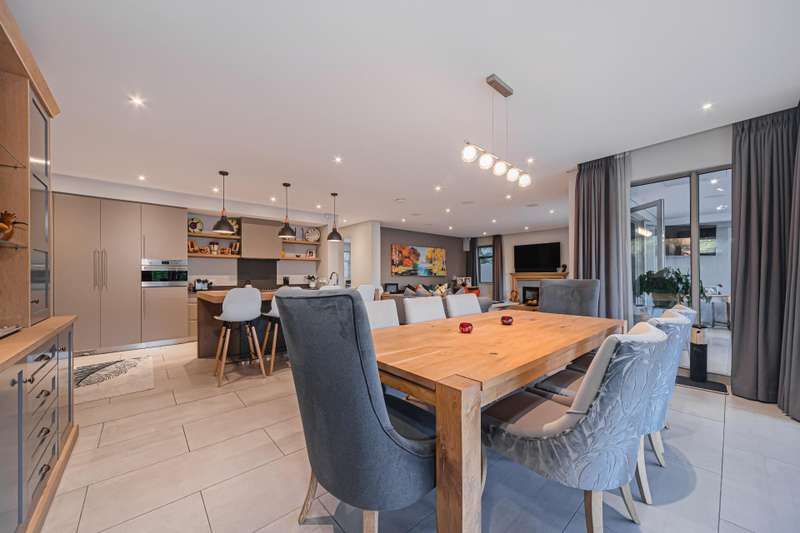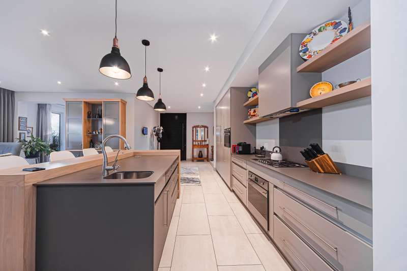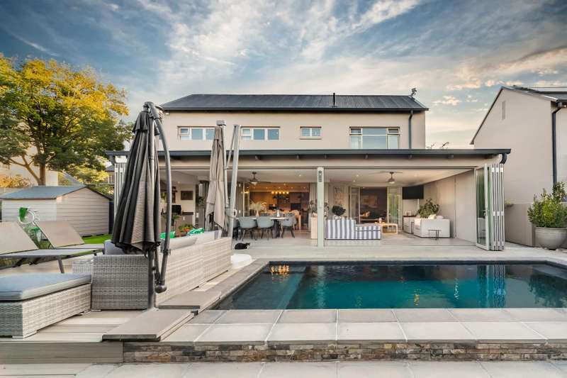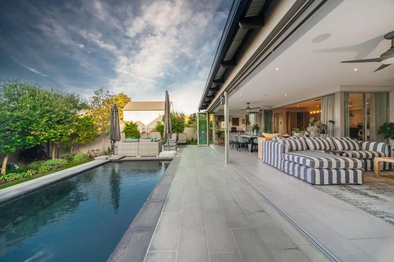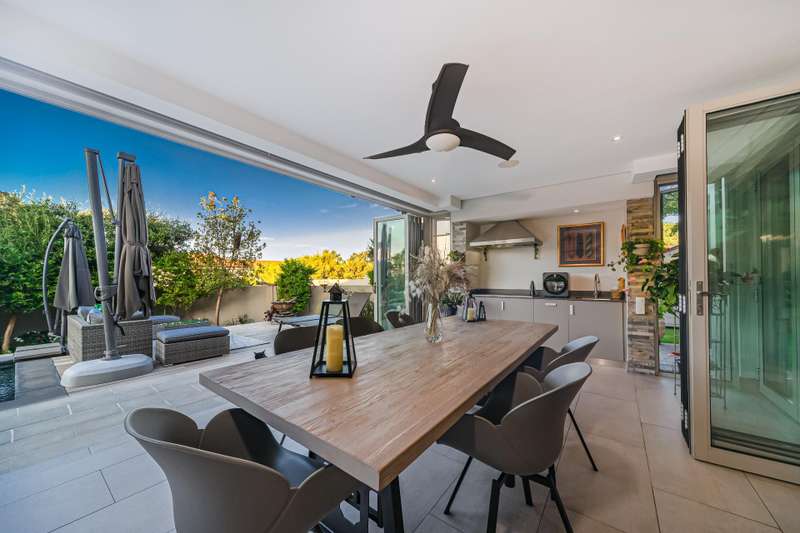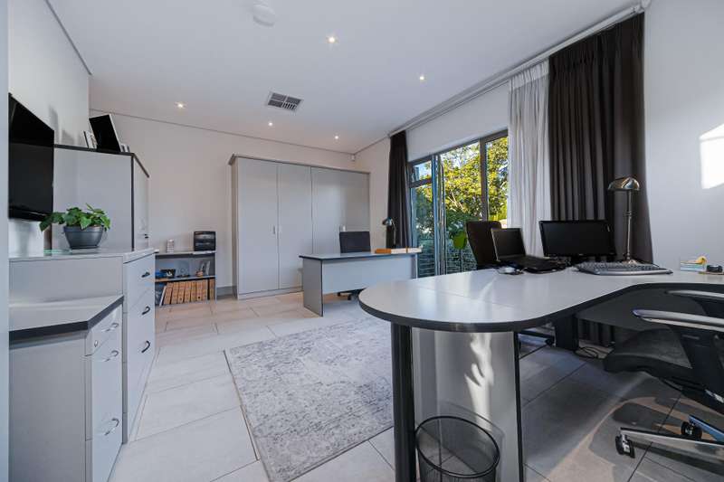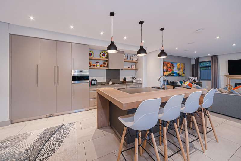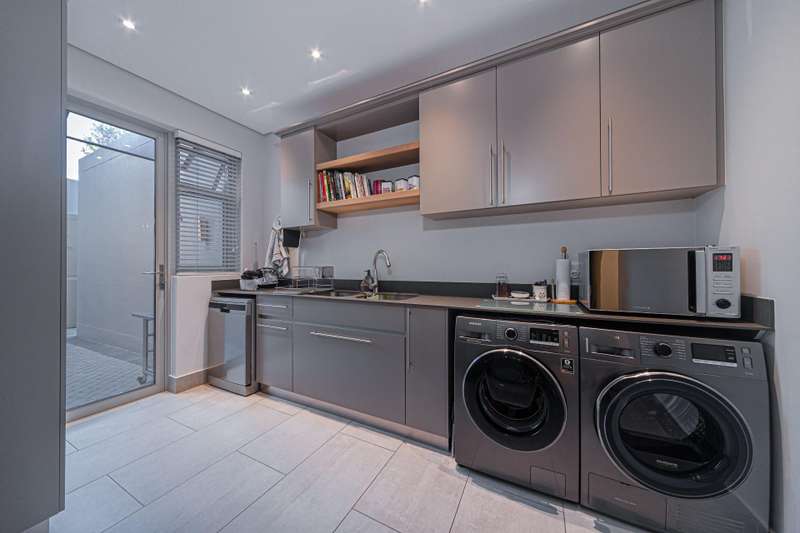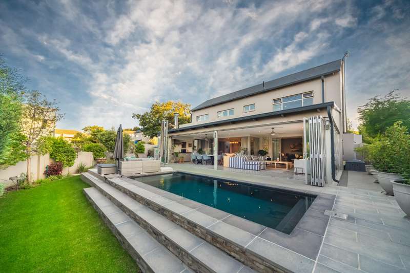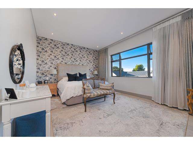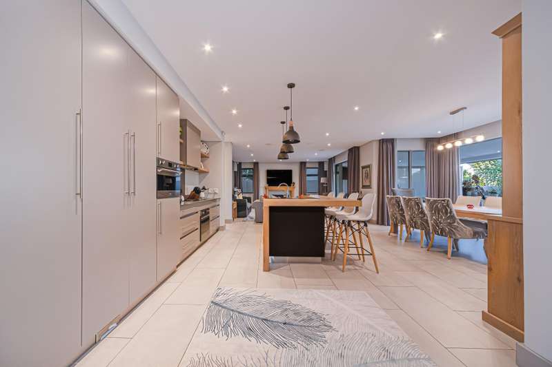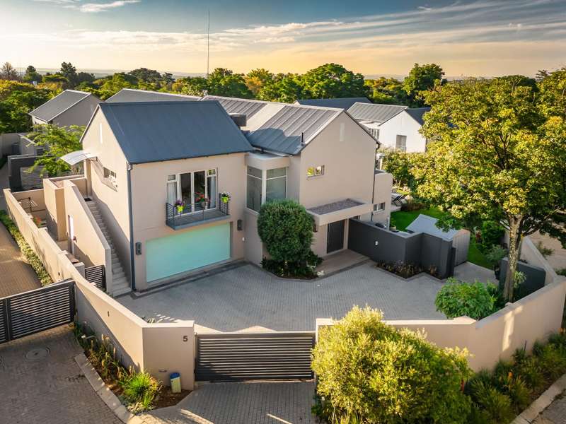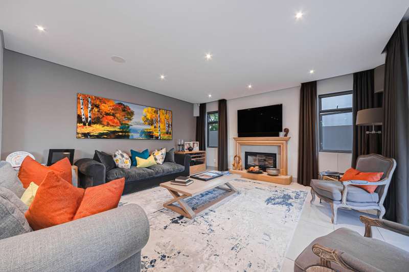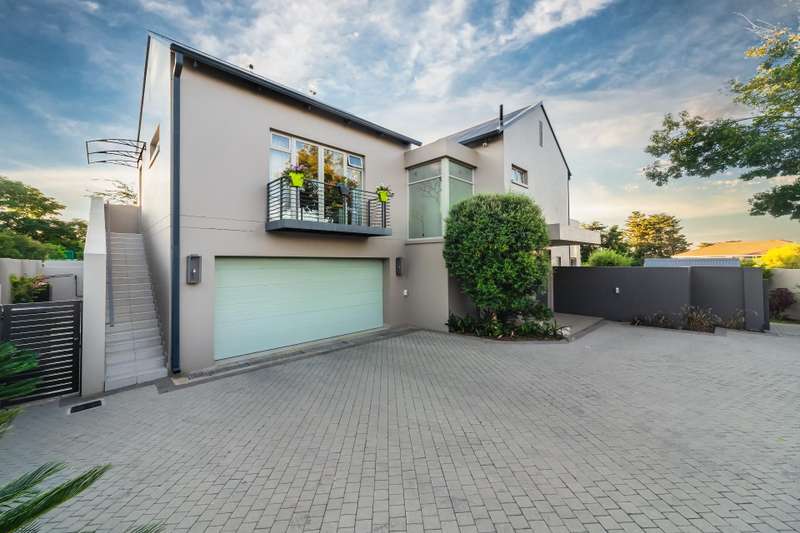 Welcome to an exceptional living experience in the heart of Bryanston! We present an exclusive opportunity to own one of only ten luxurious homes located within a secure estate. Step into a world of refined elegance and exclusivity, with impeccable attention to detail that has been meticulously crafted to offer the finest in luxury living. Boasting a contemporary farmhouse style, this magnificent home features 4 bedrooms, all with en-suite bathrooms, and showcases only the best finishes throughout. A full walk-through dressing area and luxury en-suite bathroom makes the master suite a true retreat. The fourth bedroom offers an exclusive haven, complete with a private entrance and a sleek kitchenette. This versatile space is perfect for hosting guests or as a work-from-home office. The gourmet kitchen is a masterpiece that will delight even the most discerning home cook and professional chef. Featuring Silestone counter tops, a breakfast bar, SMEG appliances, and full scullery, this kitchen is a perfect blend of style and functionality. Experience a unified living space, connecting the inside with the outside, facilitated by aluminium stacker doors and automatic blinds, where the spacious living areas flawlessly merge into a generously sized enclosed patio. The open plan design creates an unobstructed flow of natural light and access to the beautifully landscaped garden and heated salt-chlorinated pool. This epitomises the ultimate indoor-outdoor living experience, Indulge in every modern convenience, from the central vacuum system to BreezeAir evaporative air conditioning, and double-glazed windows, adorned with elegantly fitted blinds and curtains, providing a seamless living experience of utmost convenience and comfort. The 12 Solar Panels, 8 KW inverter, two 7.2 KW battery back-up, and 5000 litre municipal water tanks ensure uninterrupted access. This home ticks all the boxes, including staff accommodation, an automated double garage, HDMI cabling throughout, ceiling-fitted speakers in living areas, and a state-of-the-art CCTV system for added peace of mind.
